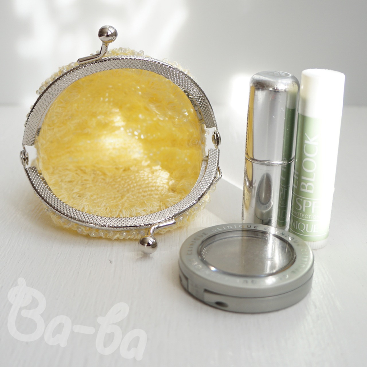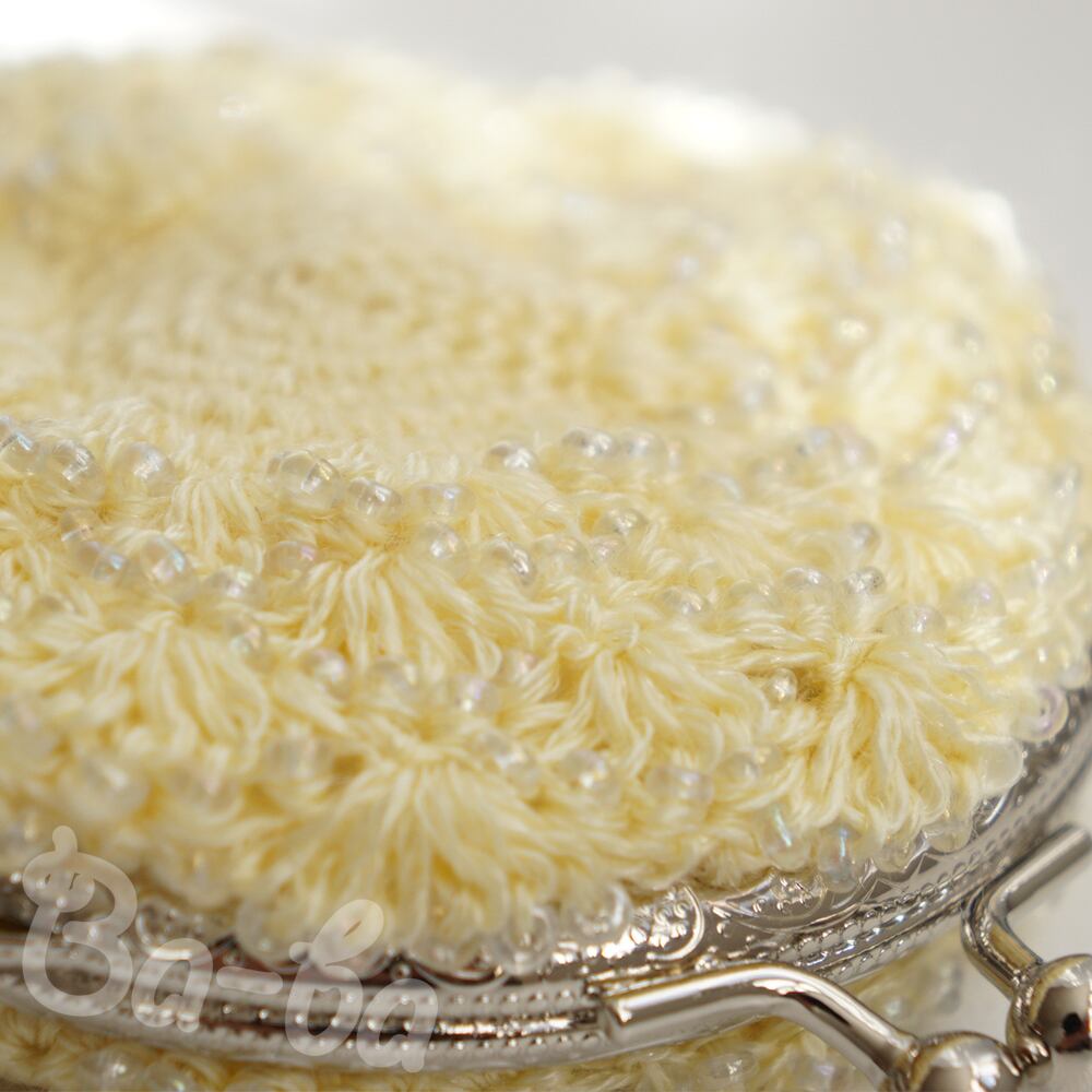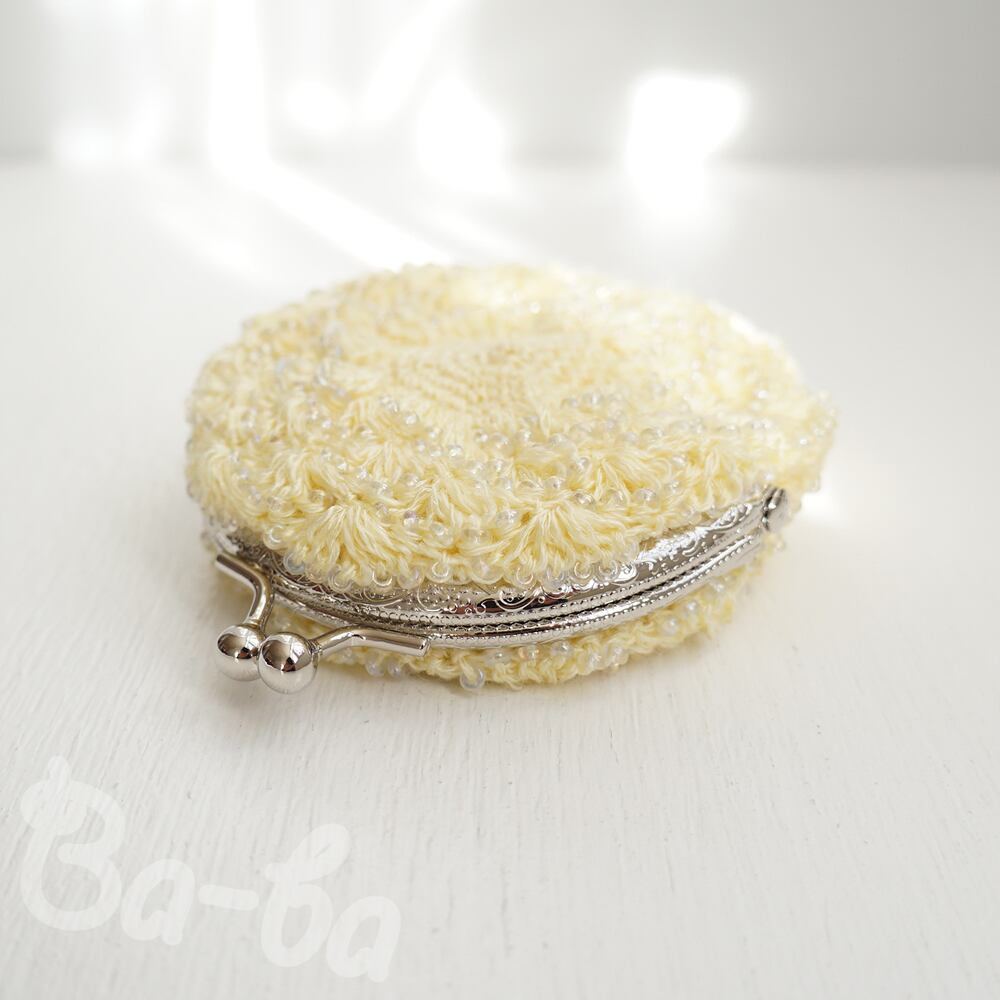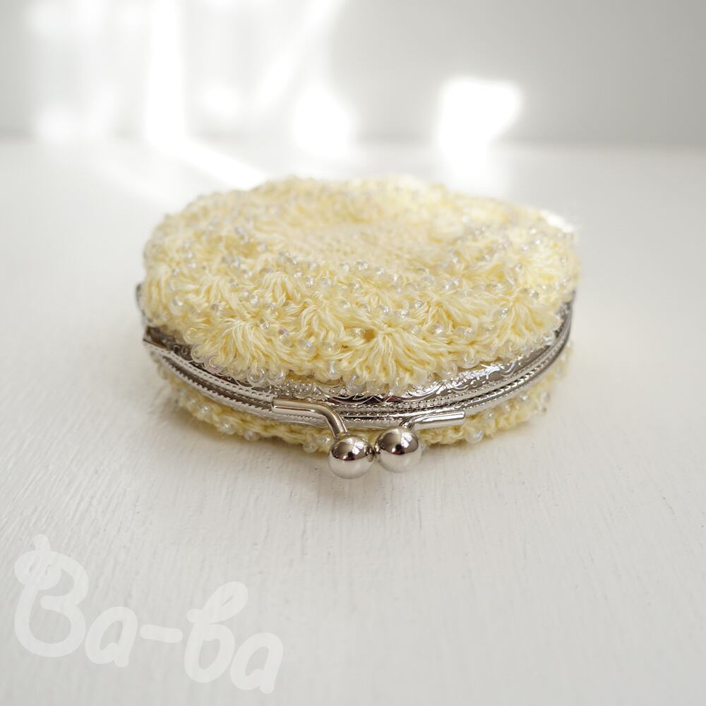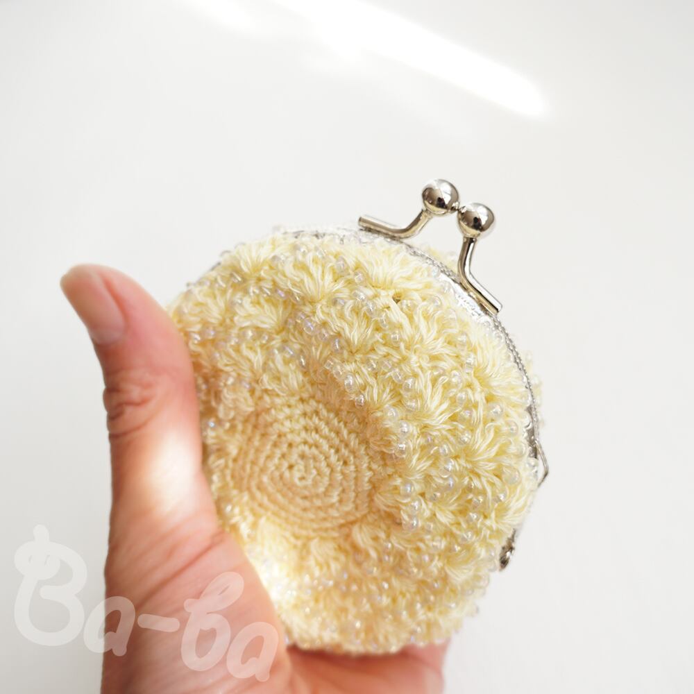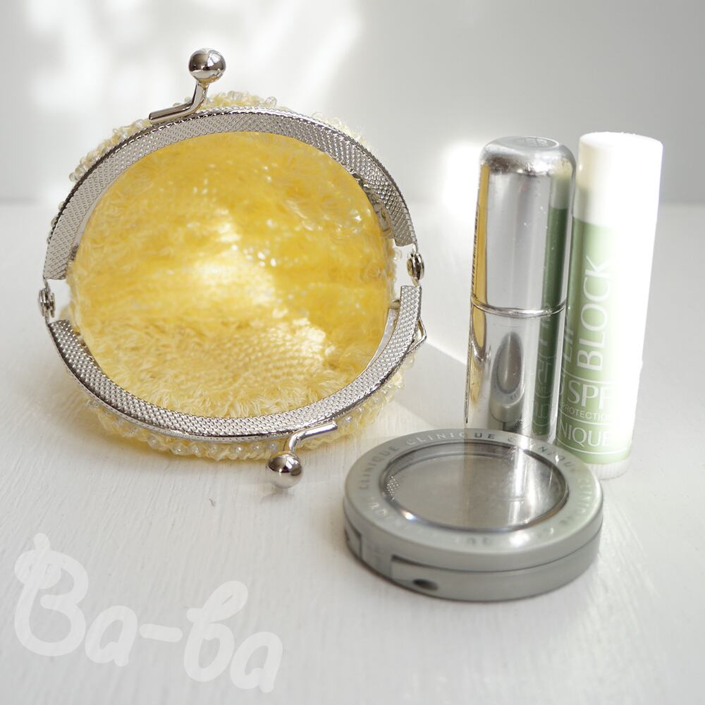 ばあば作、ビーズ入り松編み・まるまるがま口(amarillo・C1514)