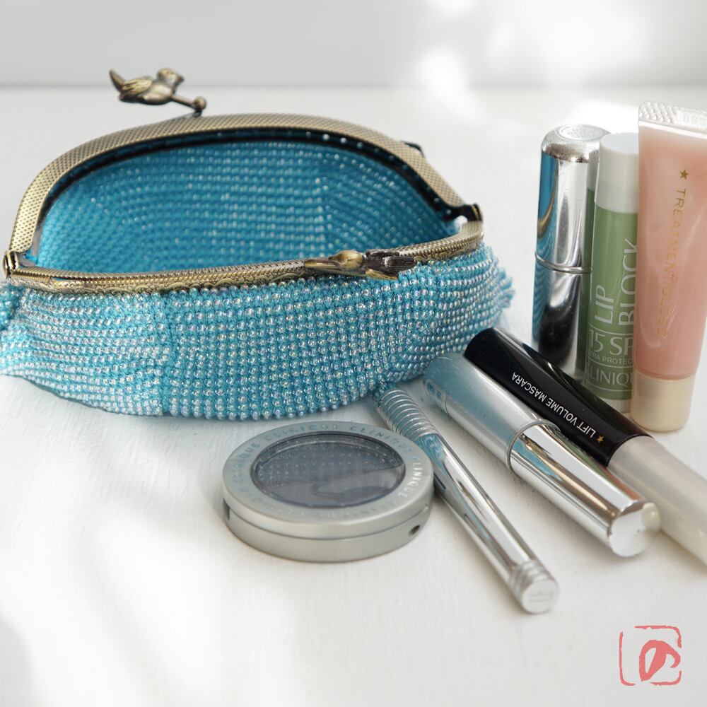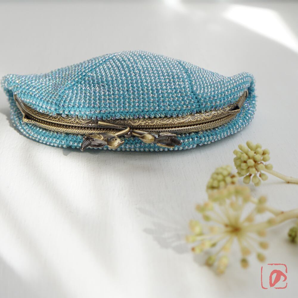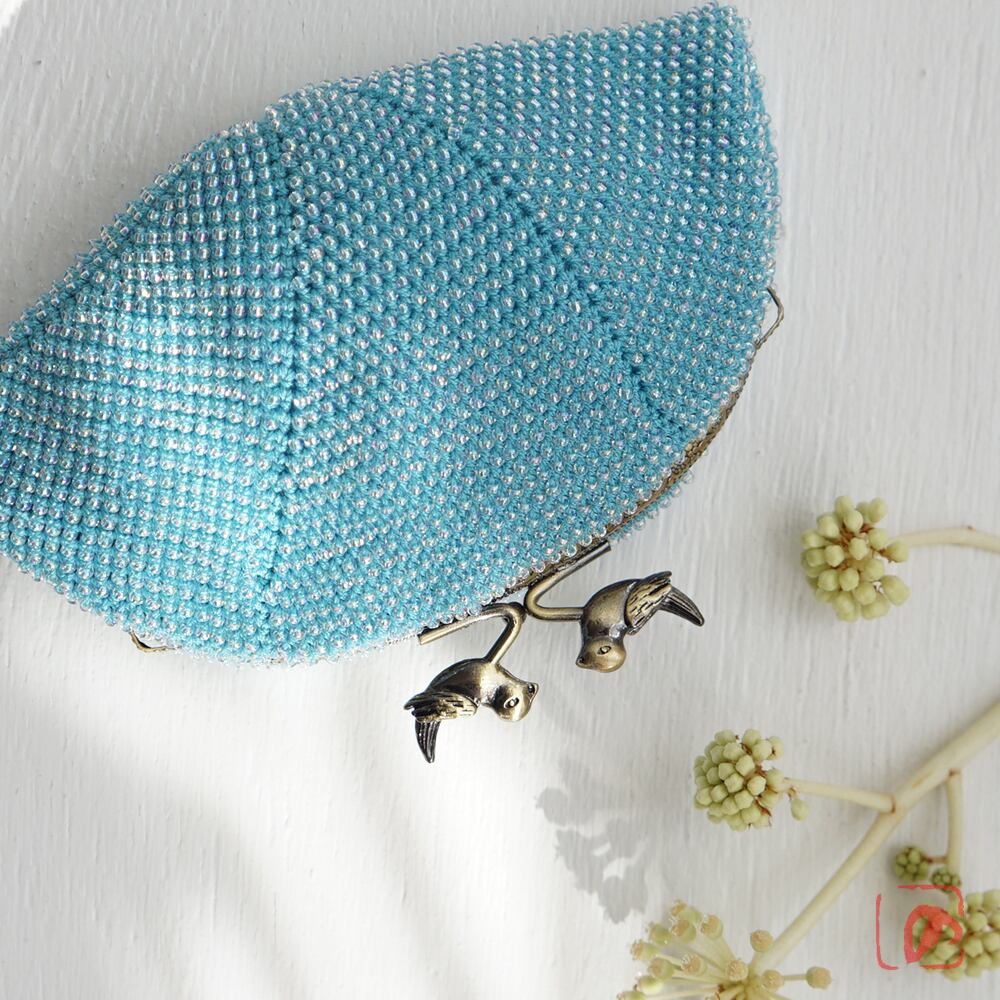 ばあば作☆シードビーズのさらに大きめがま口(cielo blue・1589)