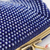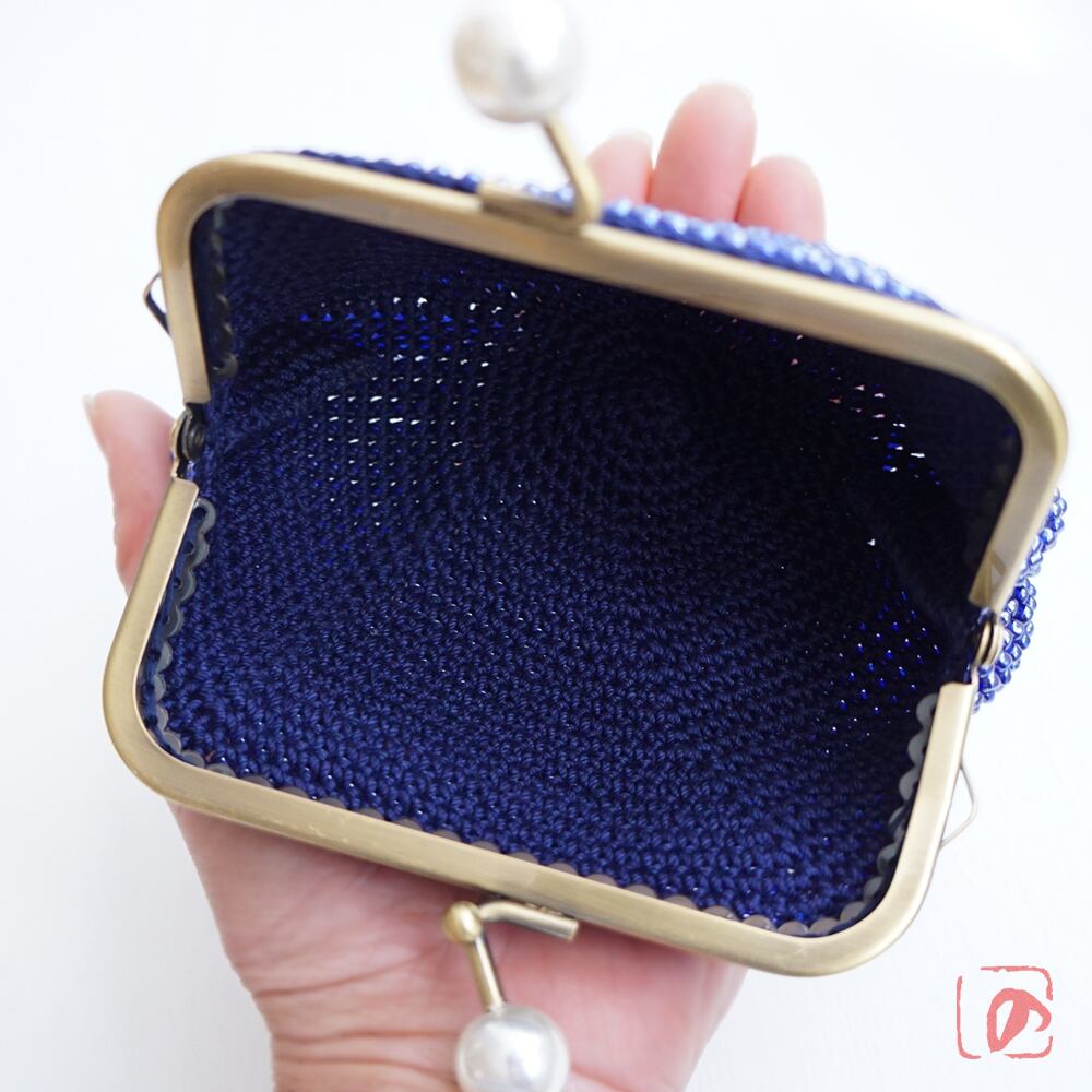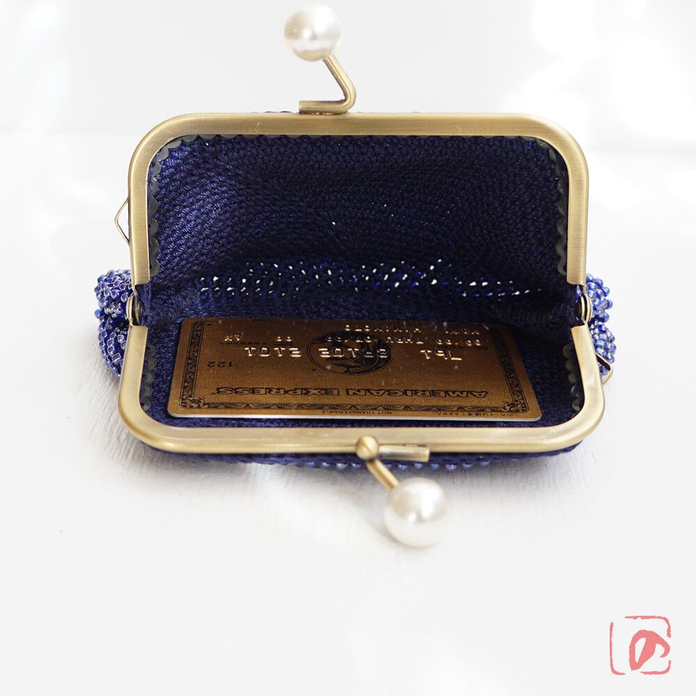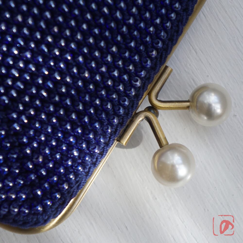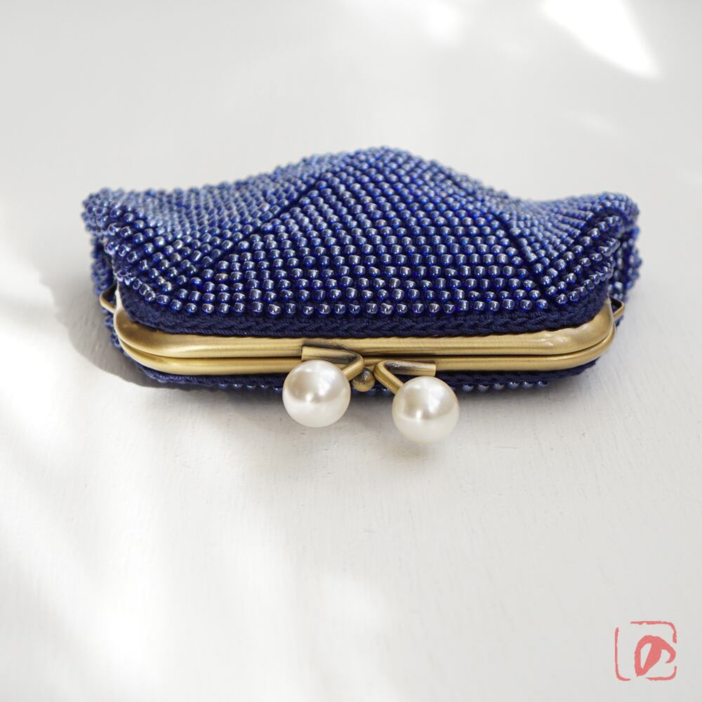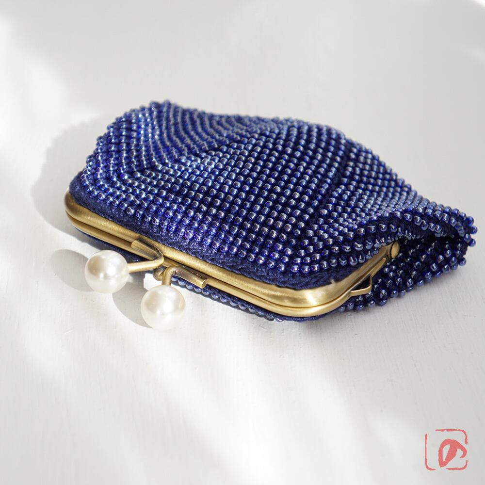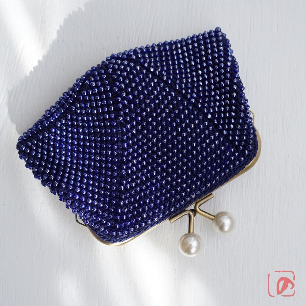 ばあば作☆大きめ・総ガラスビーズのスクエアがま口(blu scuro・1598)