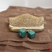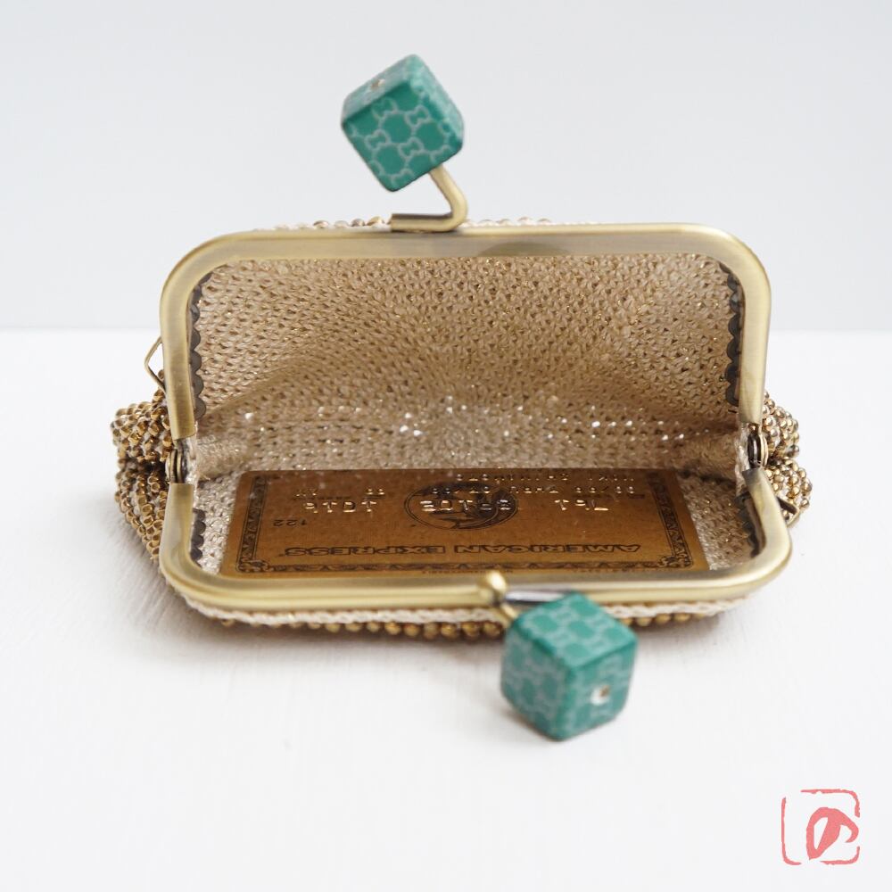 ばあば作、大きめ・総ガラスビーズのスクエアがま口(monogramm・1611)