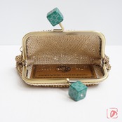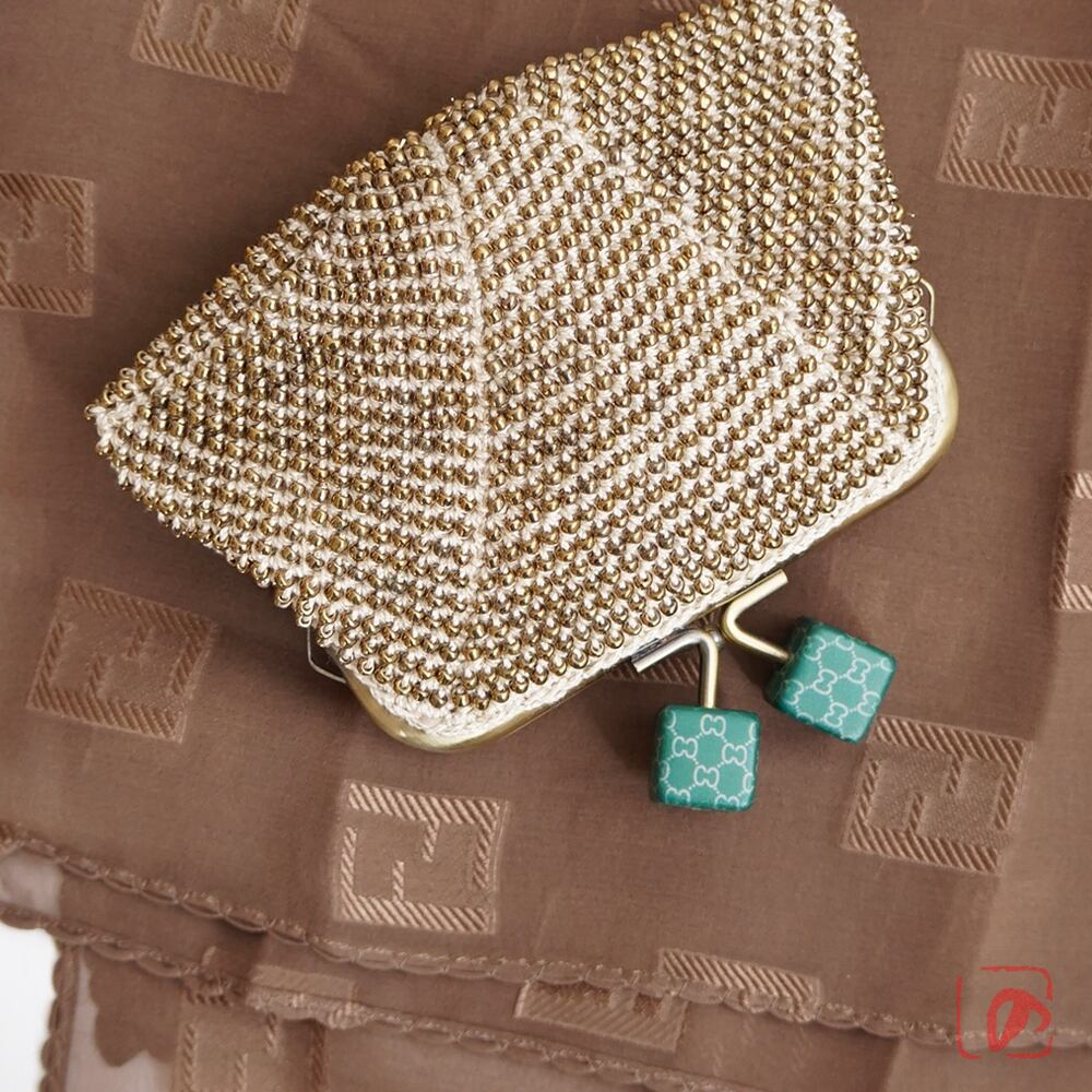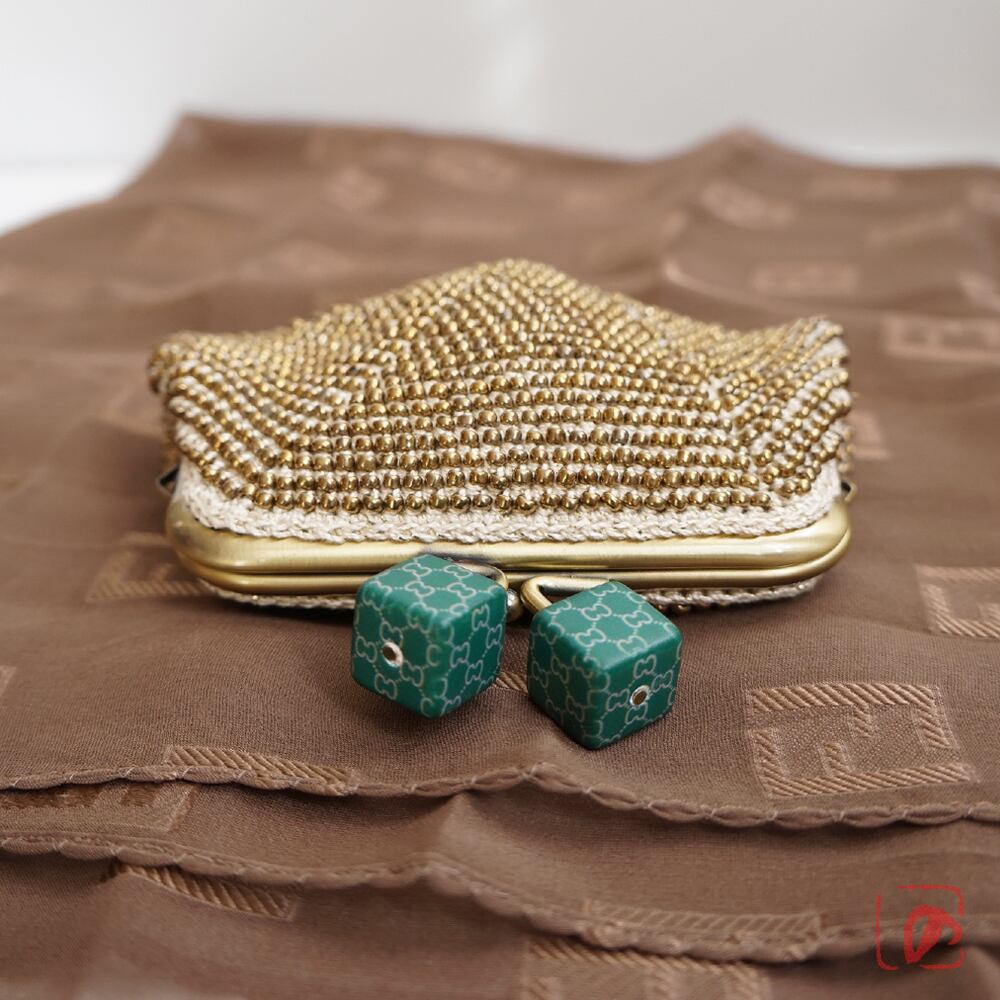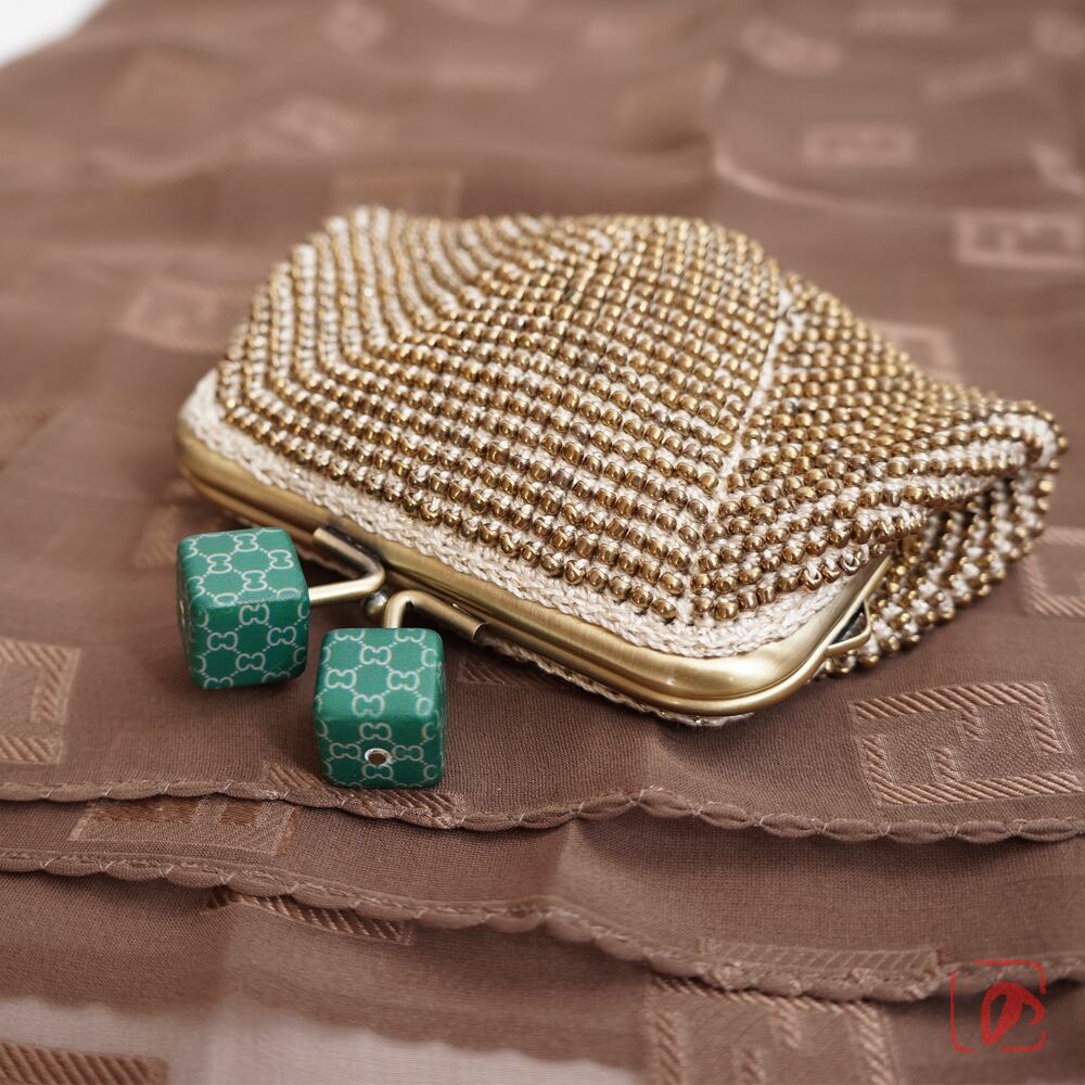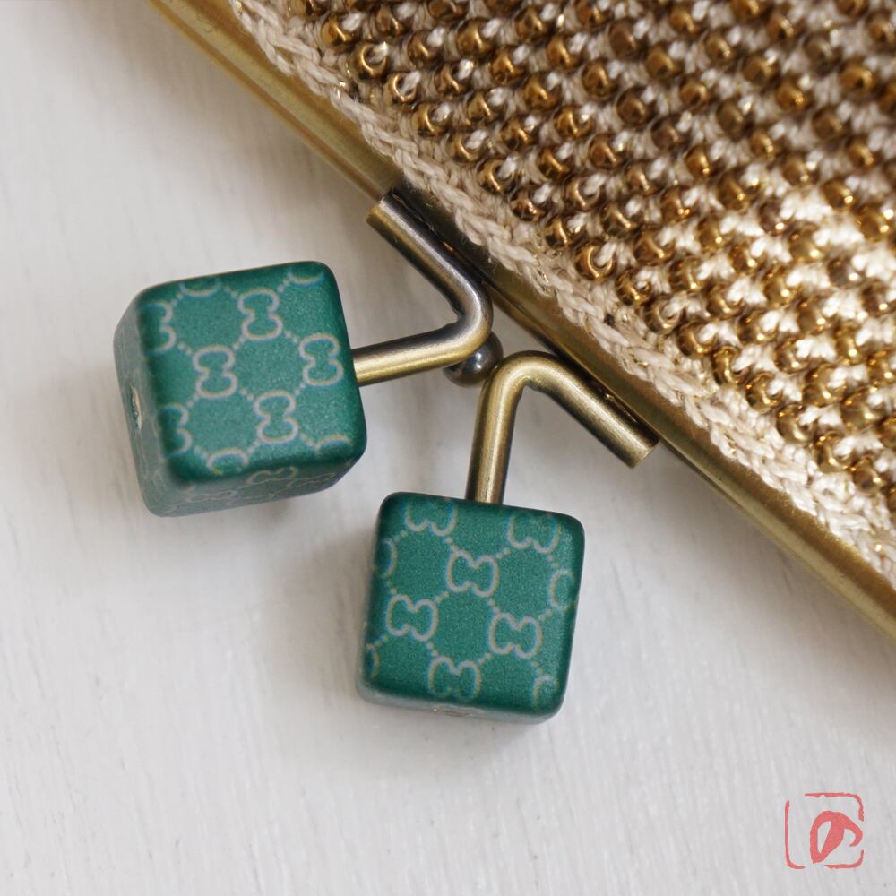 グリーンのレトロモノグラム柄のキューブビーズをつまみに使用しました。