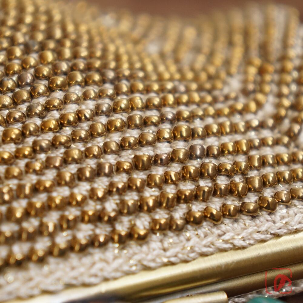 3mmのガラスビーズをひとつぶづつ、全面に編み込みました。