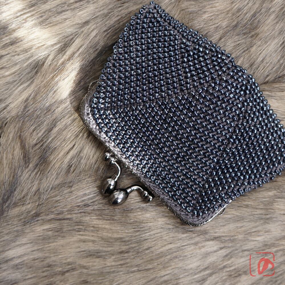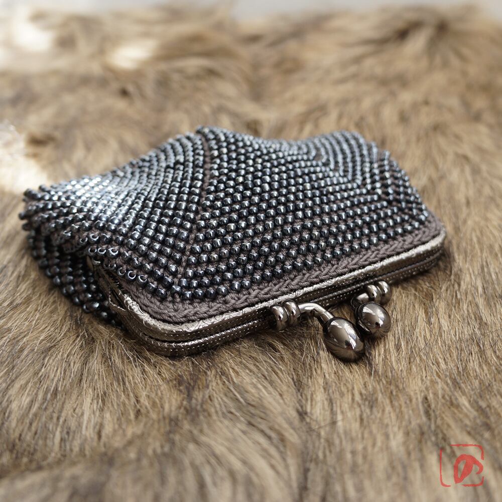 ばあば作☆大きめ・総ガラスビーズのスクエアがま口(metallo・1613)
