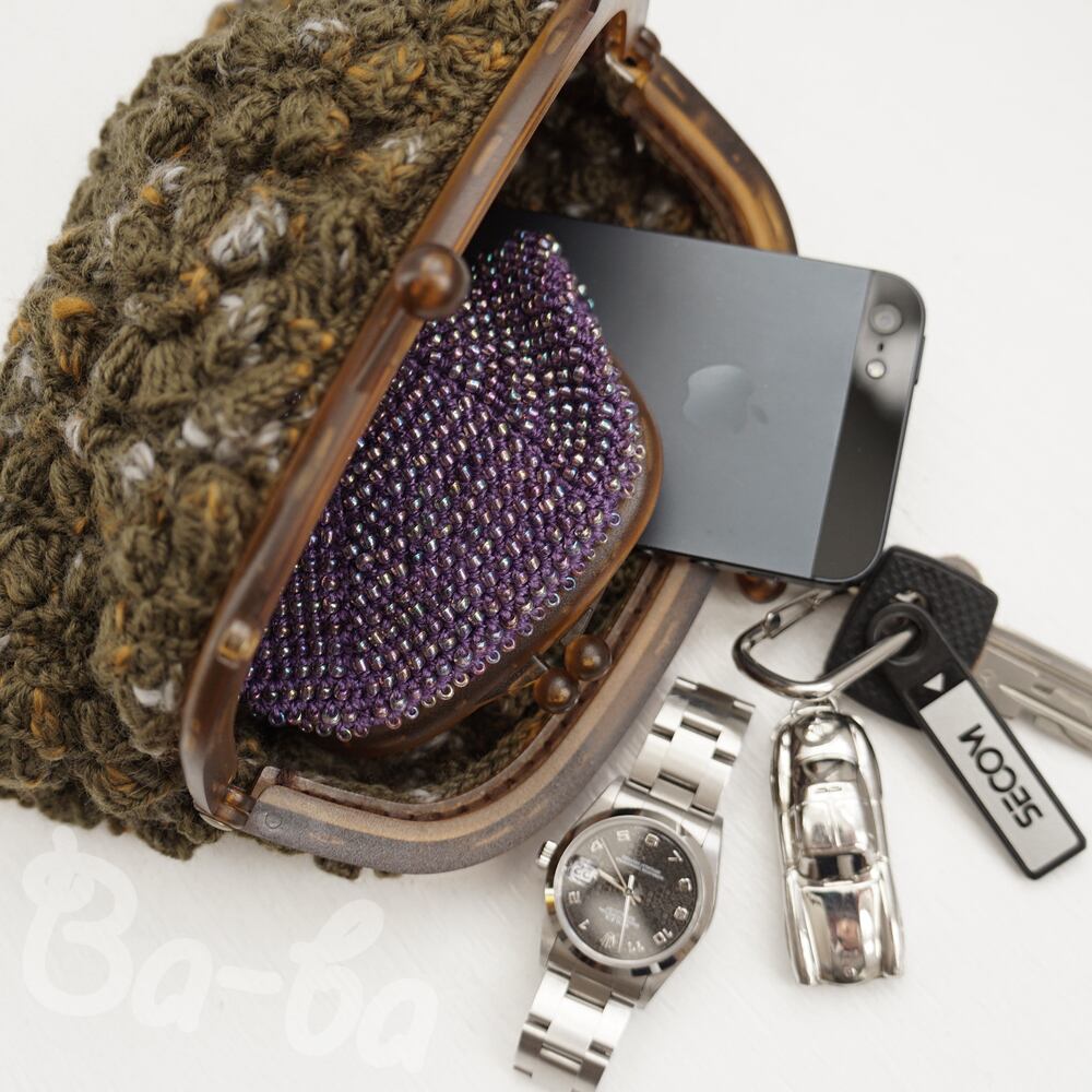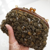 糸とプラ口金をブラウンで統一、落ち着いた雰囲気のチバッグに仕上げました。