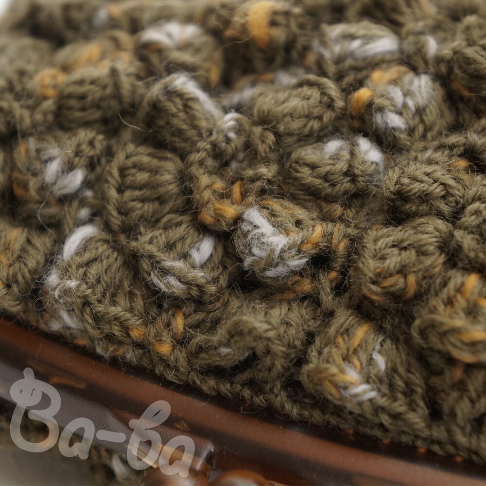 ポピーの花がぎっしり集まったような編み地は、ふんわりとした手触りです。
