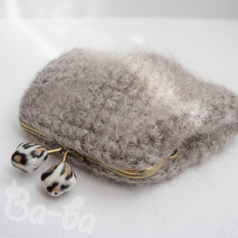 ばあば作♪さらに大きめ・ふわっとスクエアがま口(mohair gray・C1533)