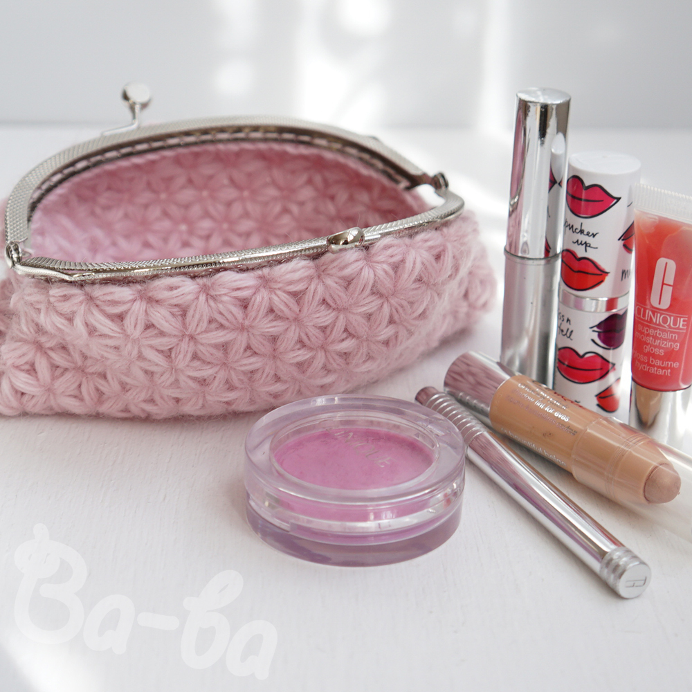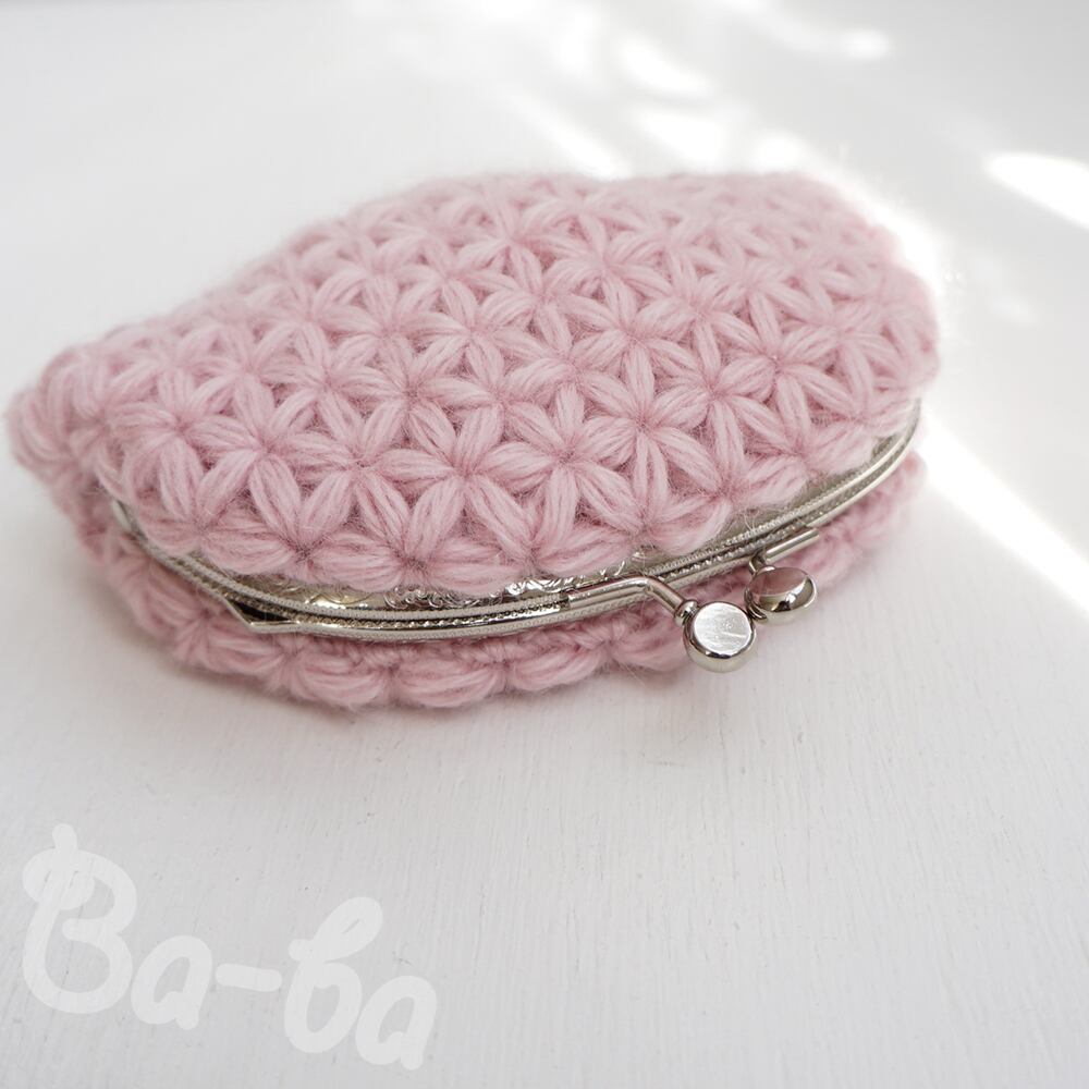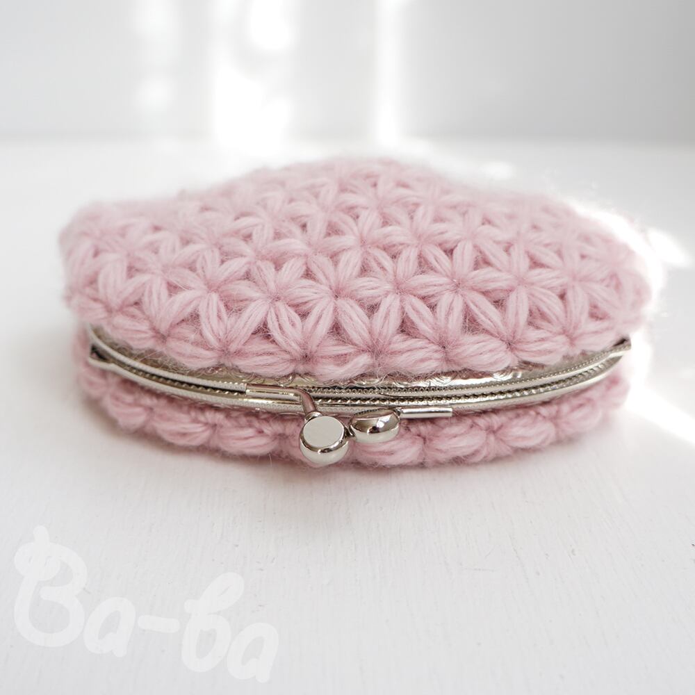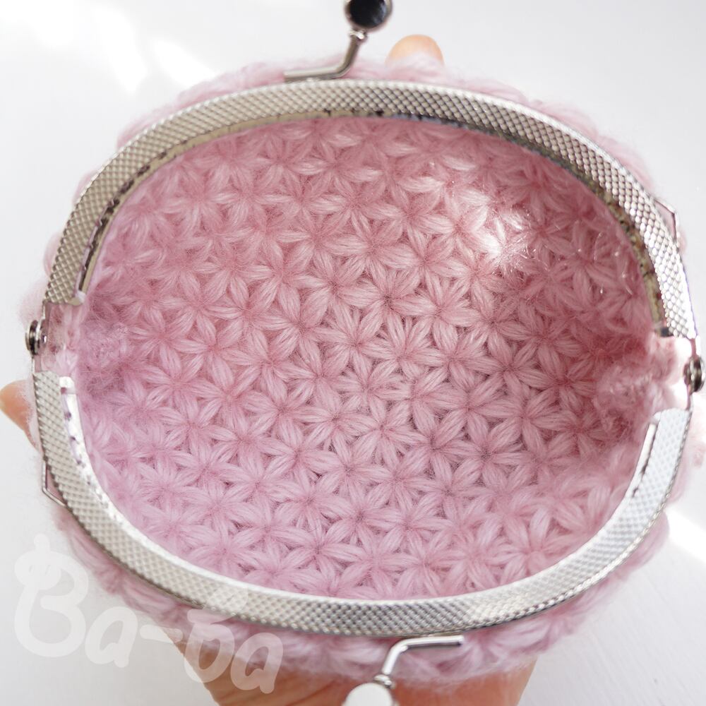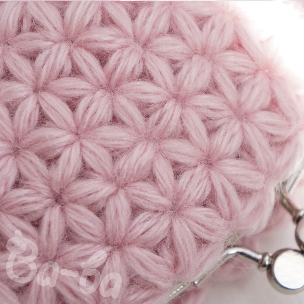 ばあば作・リフ編みのがま口ポーチ(sakura・C1535)
