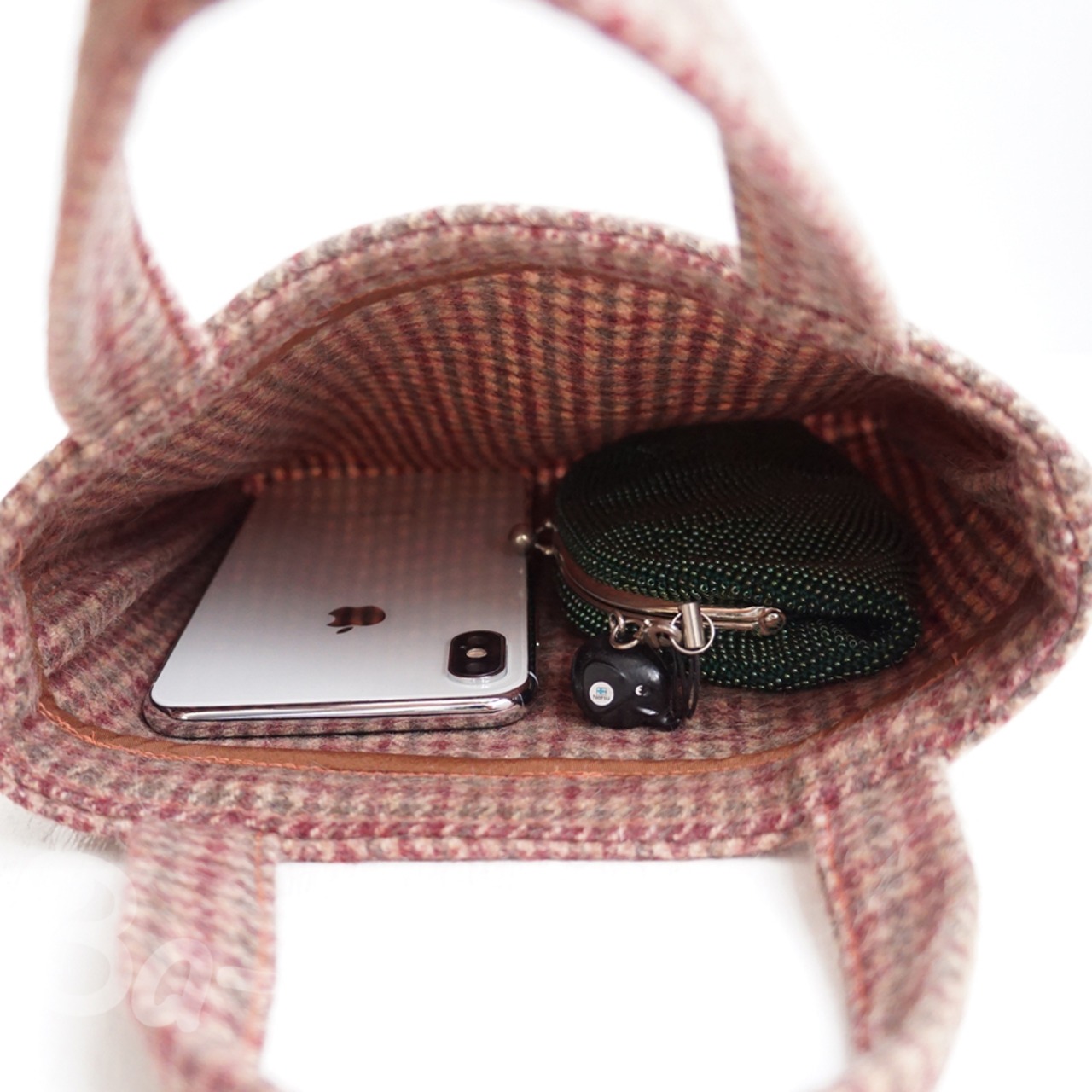 送料無料♪ ばあば作、レトロな手さげバッグ(burgandy・RB51)