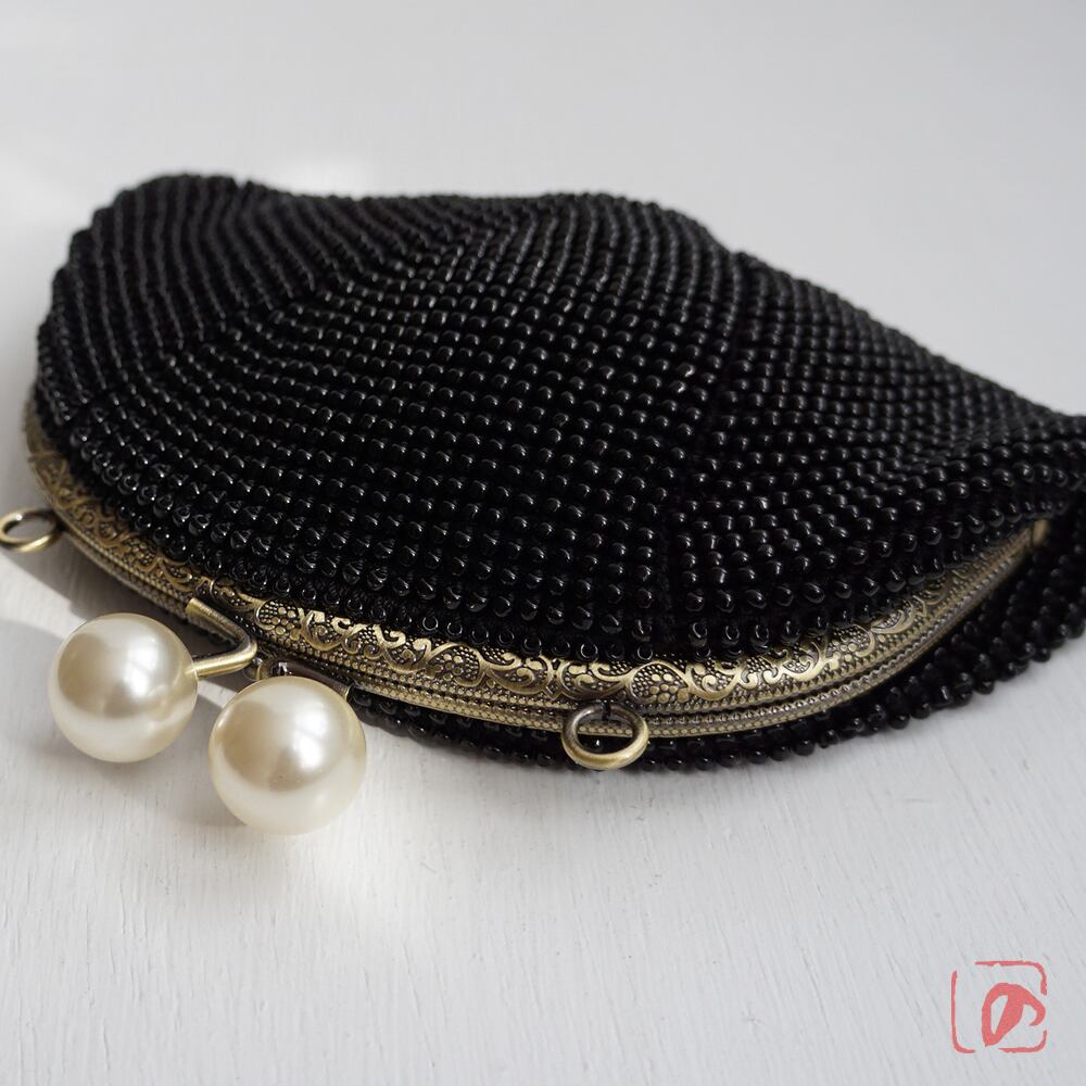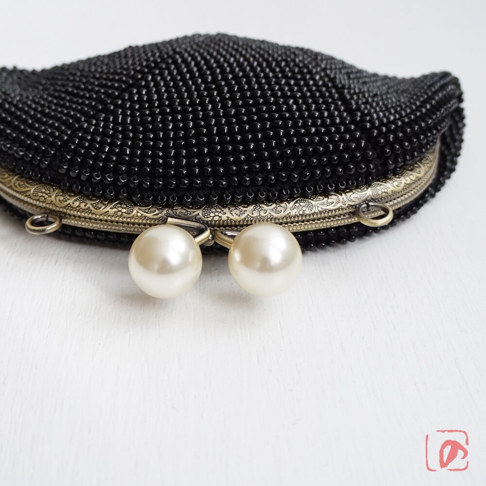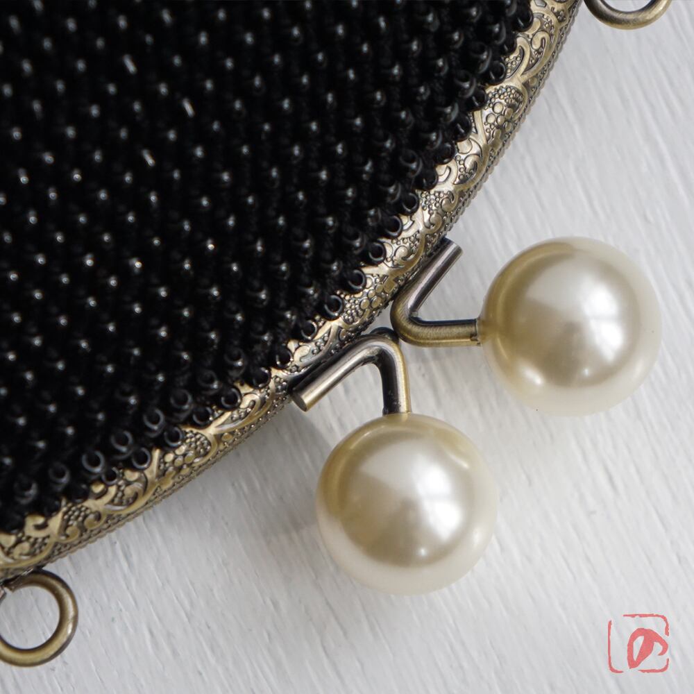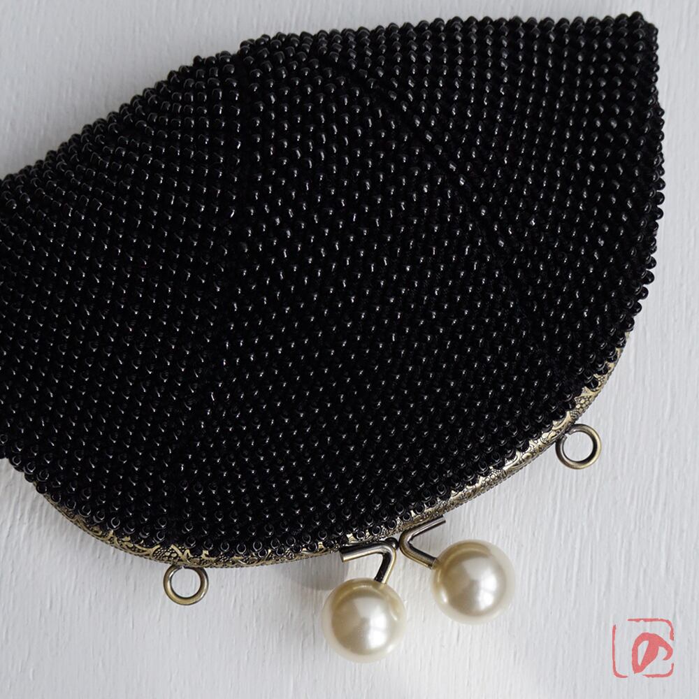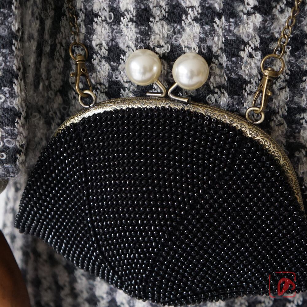 ばあば作☆パールつまみのキラキラプチバッグ(noble black・1620)