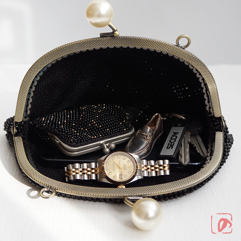 全面に3mmガラスビーズを編み込んでプチバッグを制作しました。