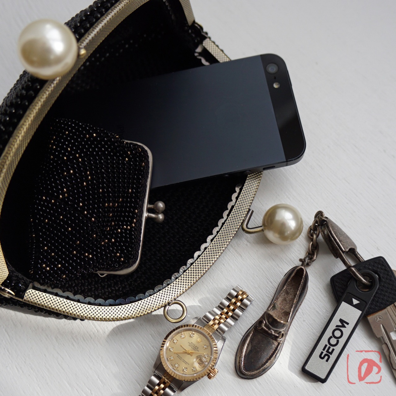 つまみは直径2cmの大パール、華やかかつ開閉しやすい実用性もそなえています。