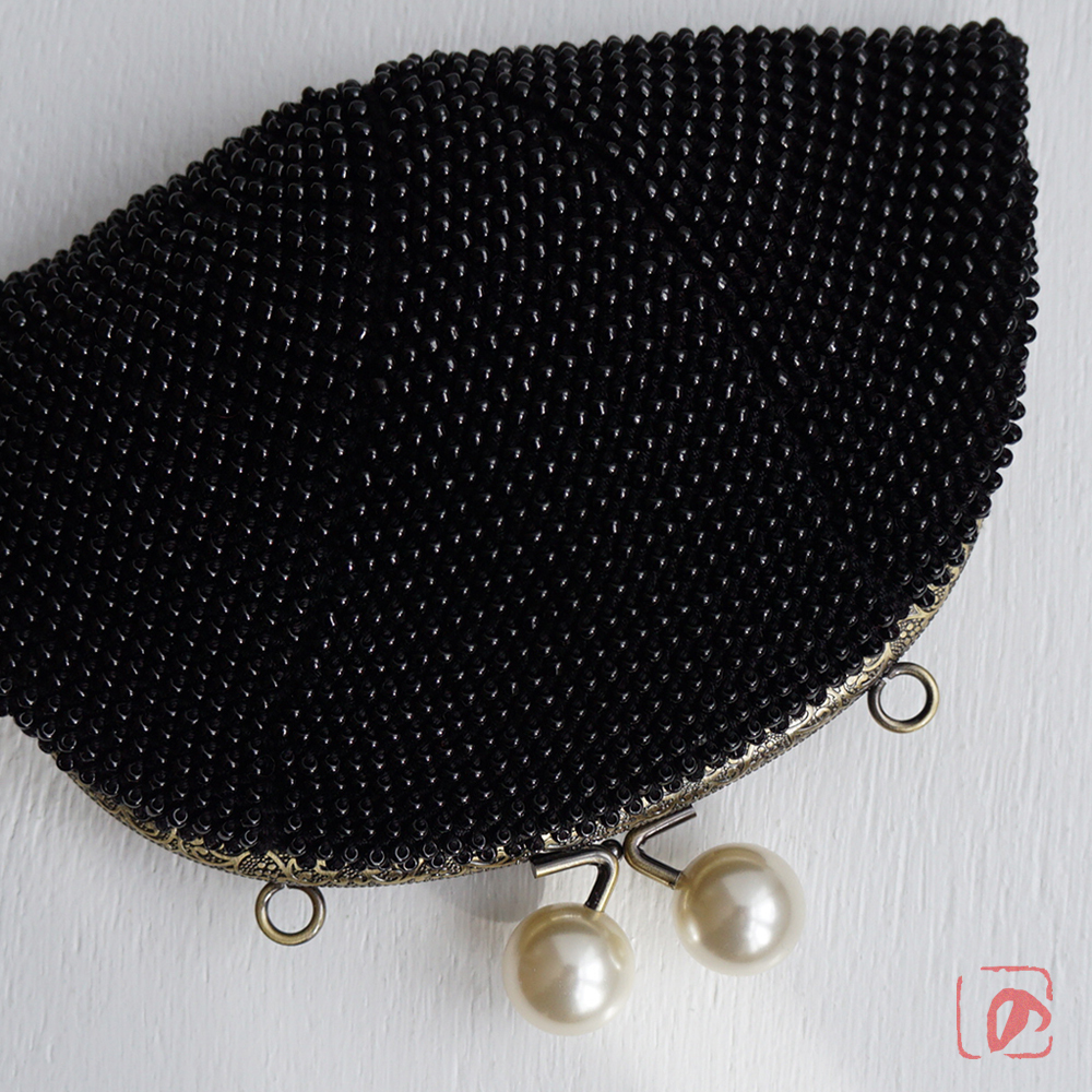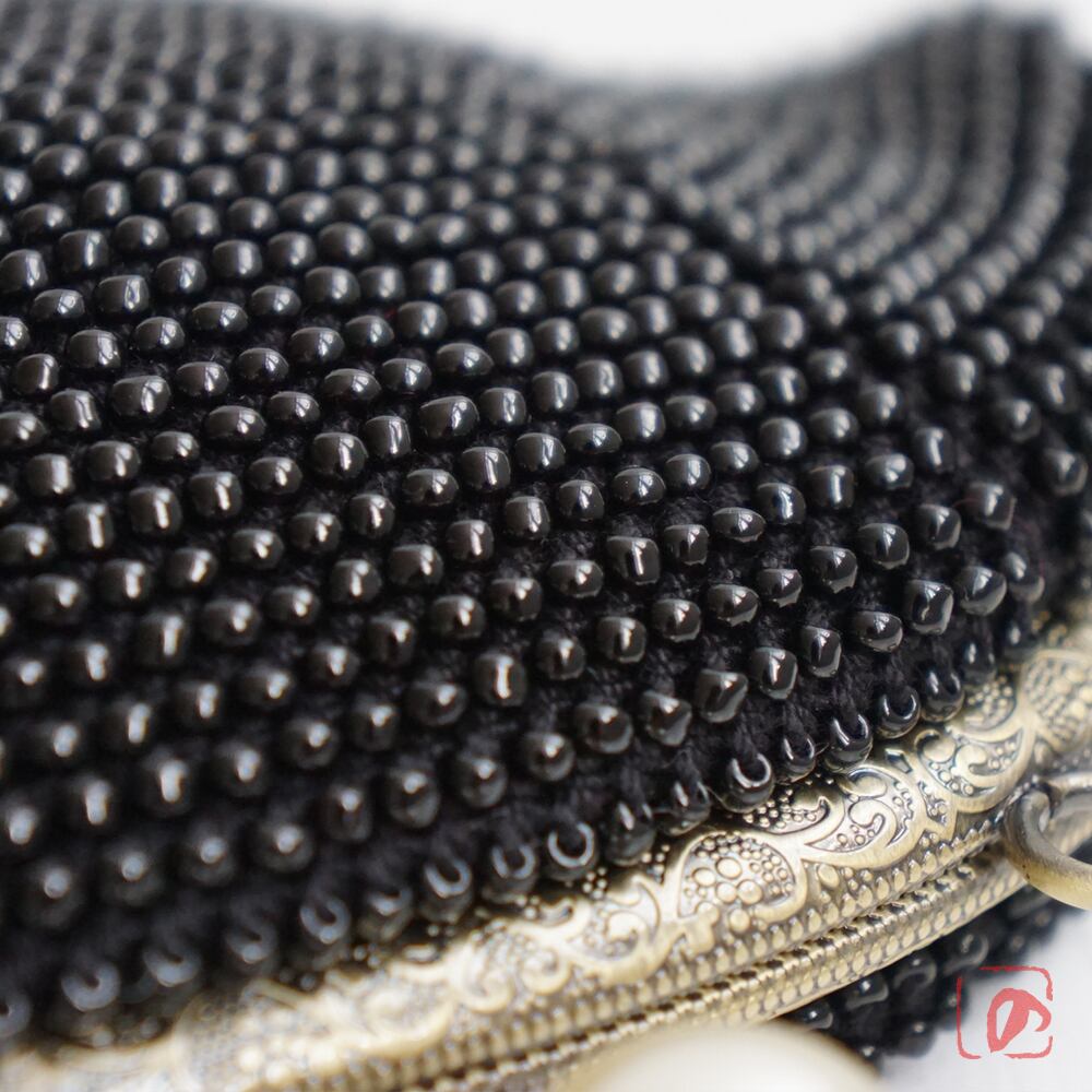 ツヤ黒のビーズを使用した、重厚感のある編み地です。
