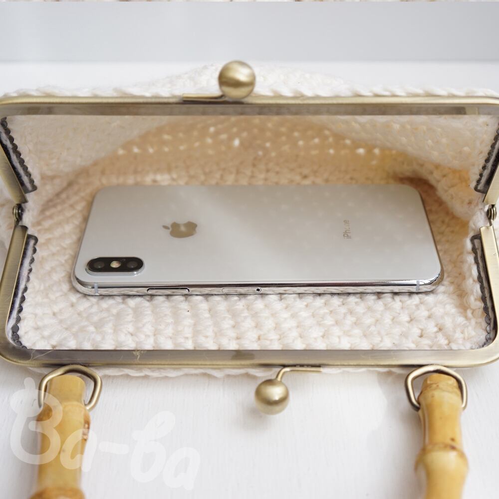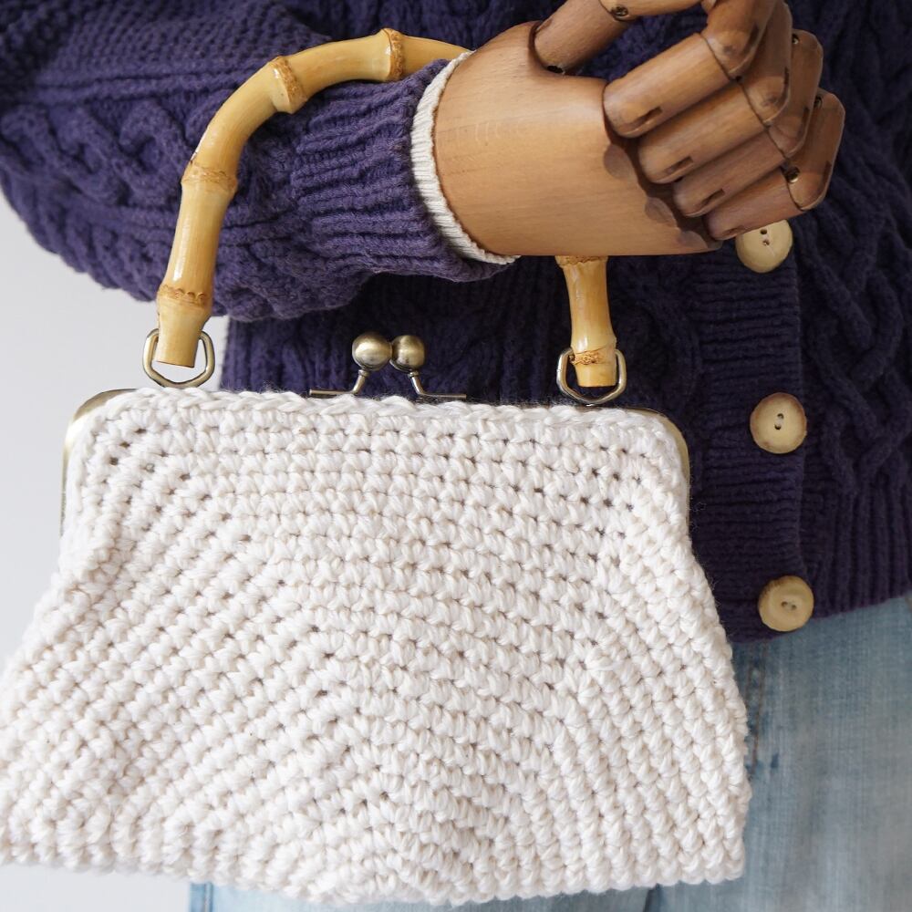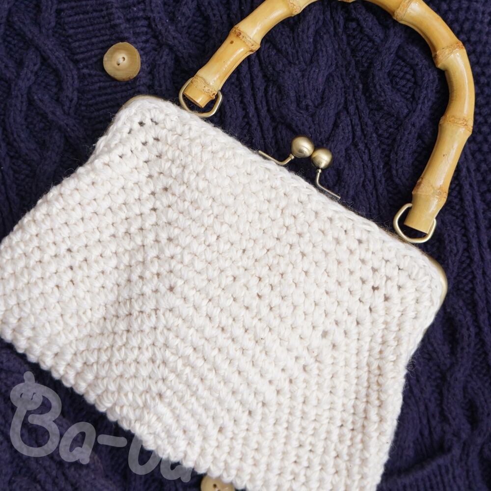 ばあば作♪バンブーハンドルのスクエアバッグ(milky white・C1548)