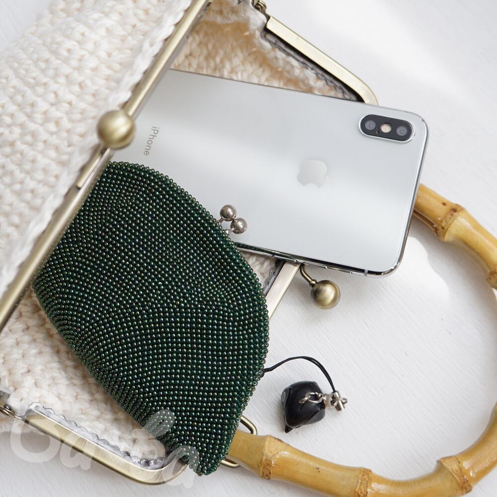 口金 : アンティークゴールド、バンブーハンドル、20cm、角型