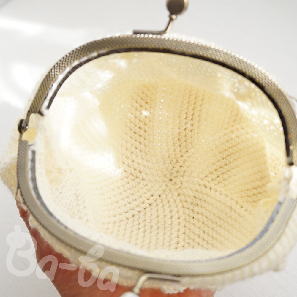 ばあば作、さらに大きめ・透かし編みのたっぷりがま口(leche・C1543)