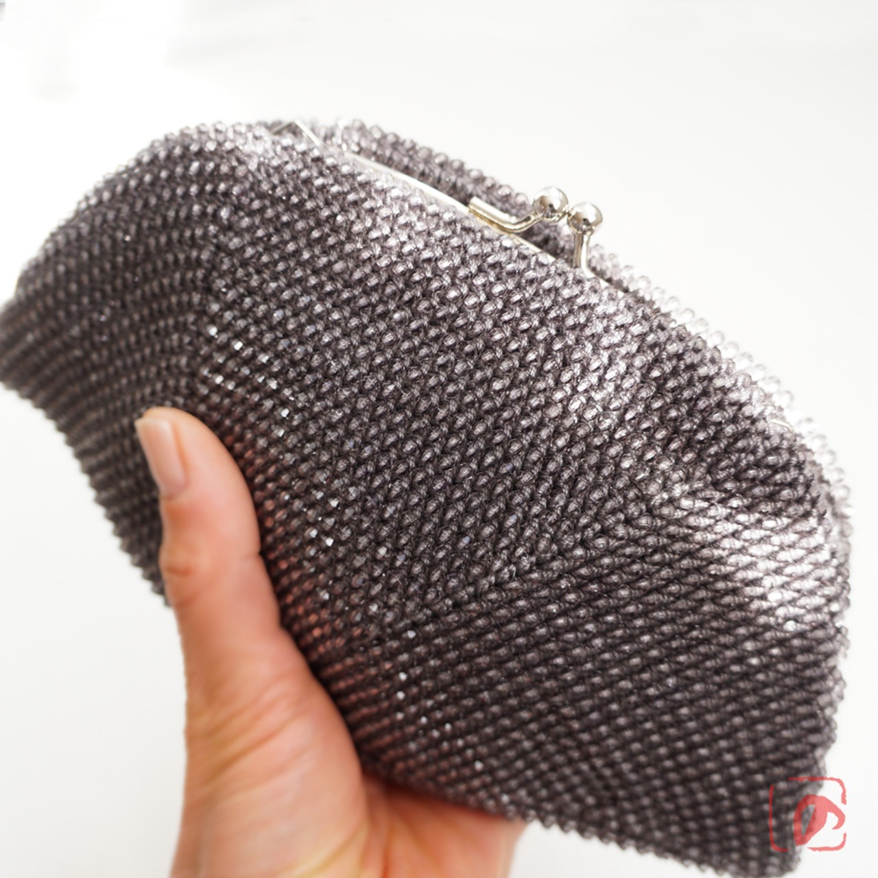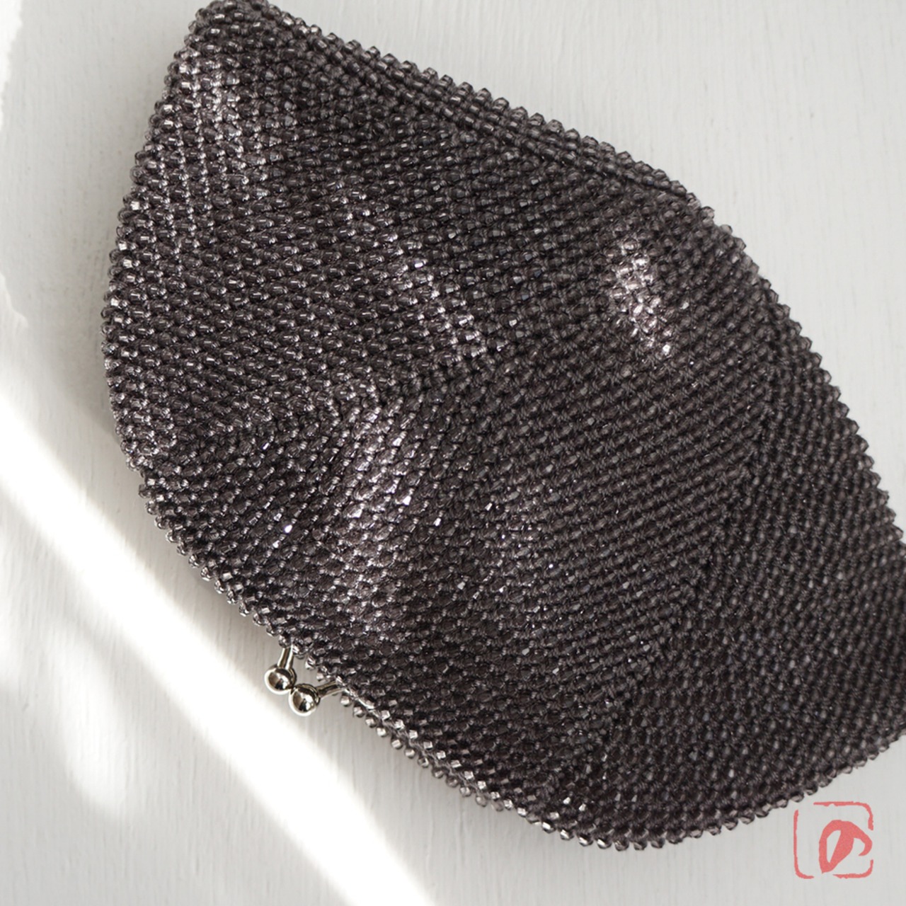 全面にアクリルビーズを編み込んでプチバッグを制作しました。