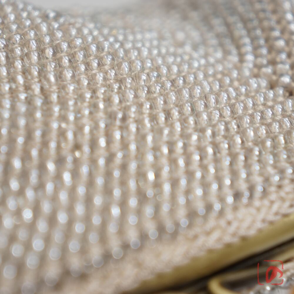 つやのある3mmビーズを、ひとつぶづつ全面に編み込みました。