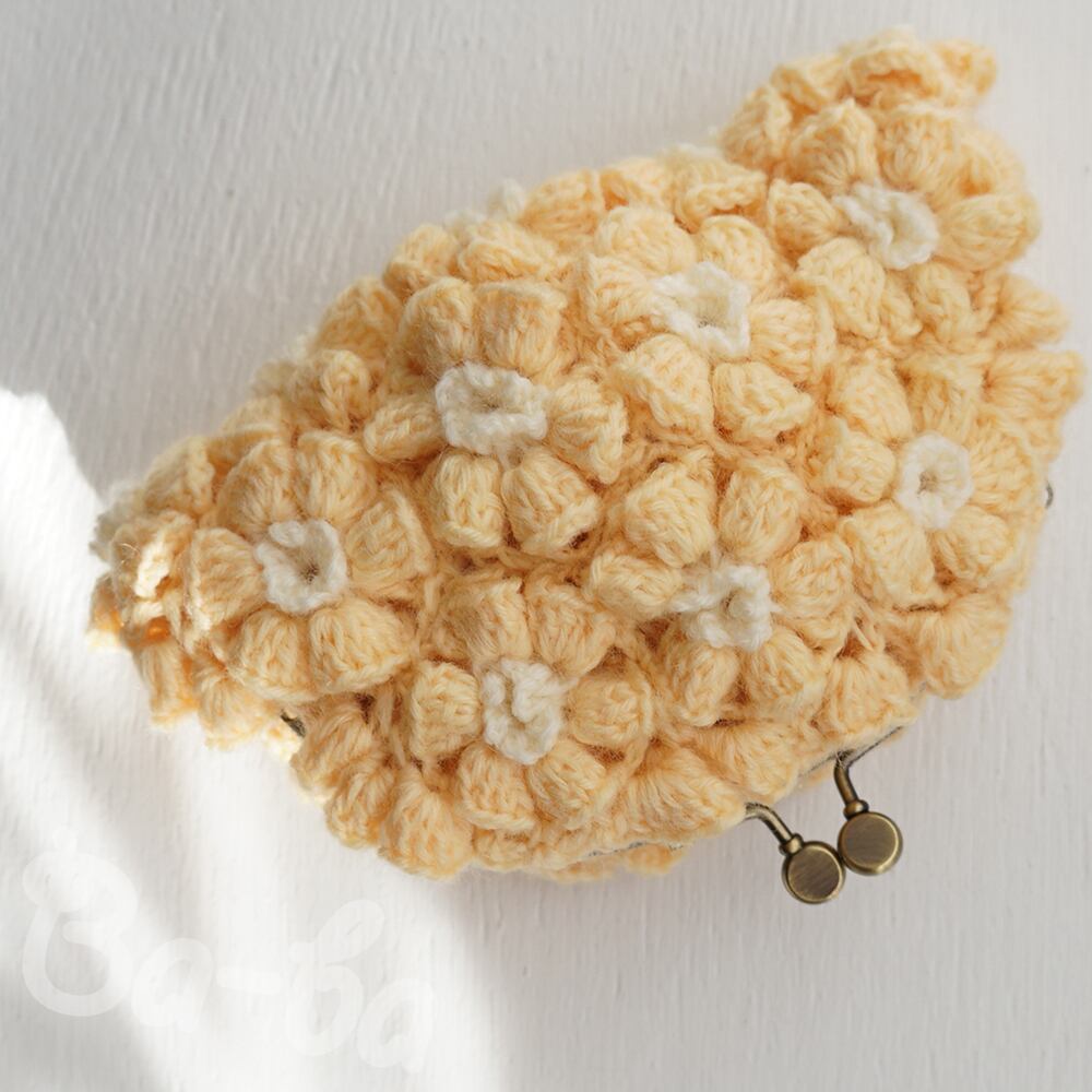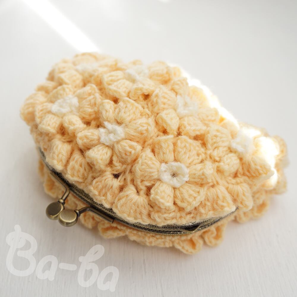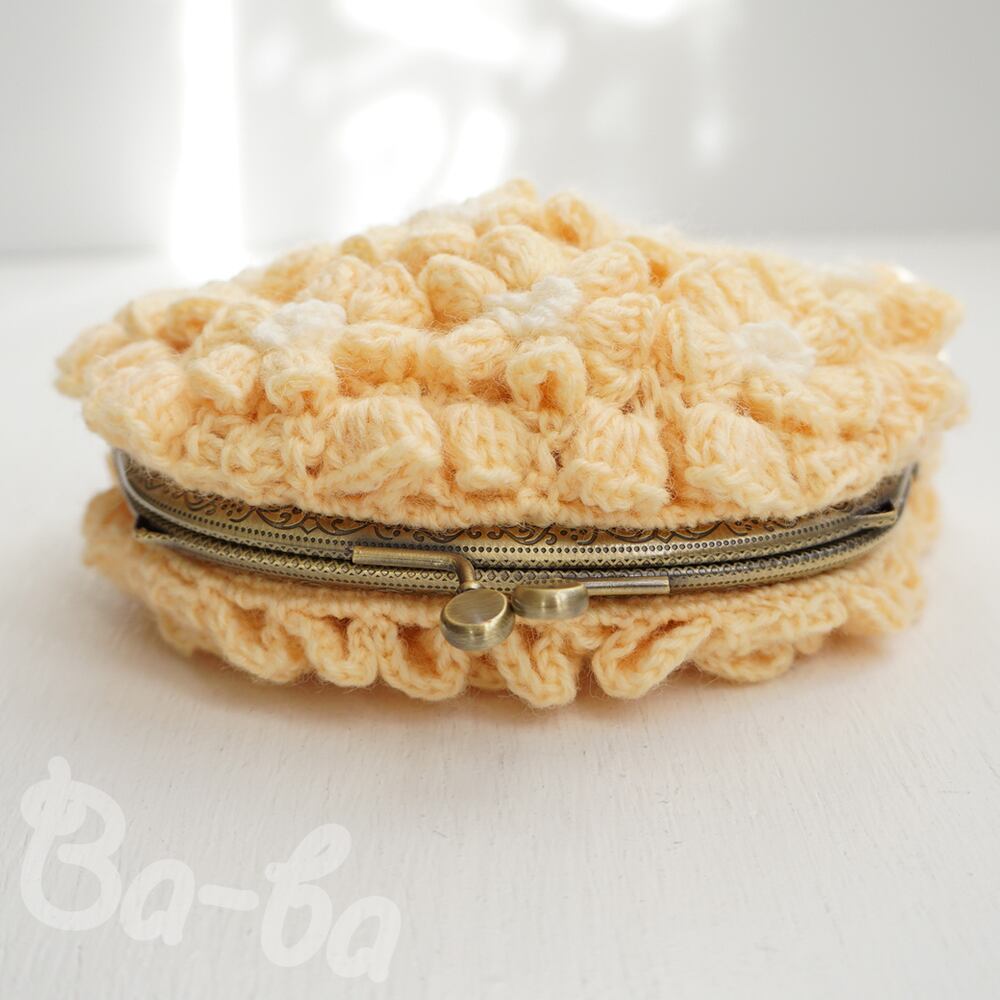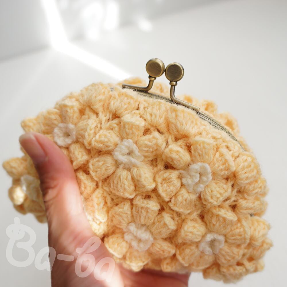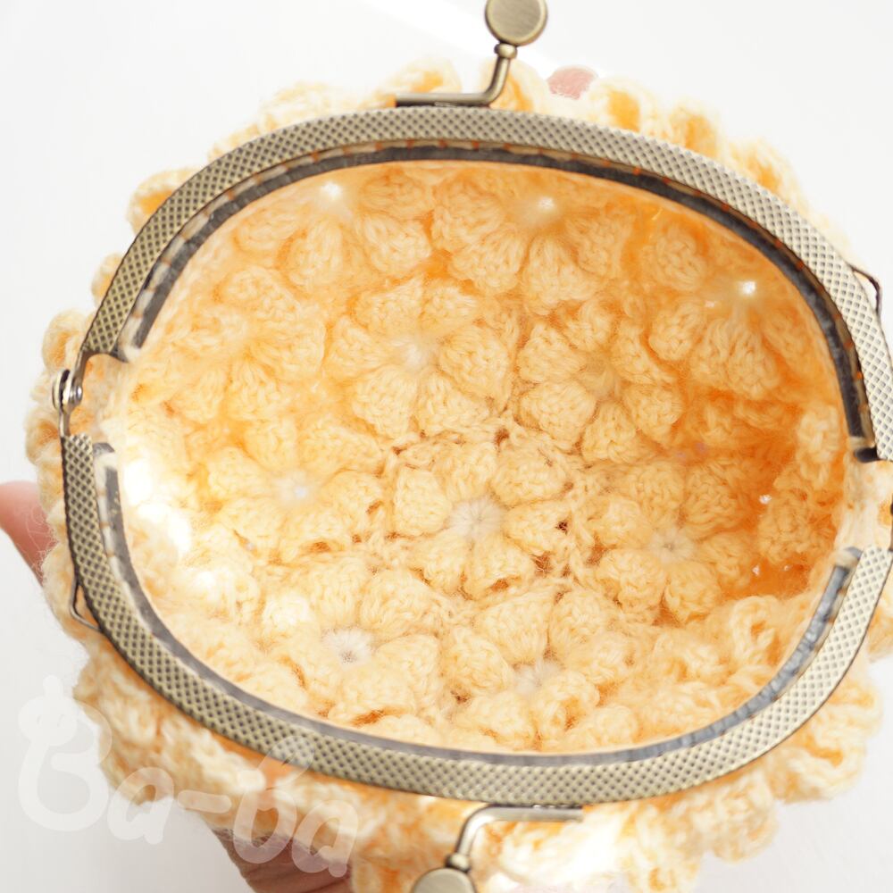 ばあば作、ポピーパフ編みのがま口(pale orange・C1519)