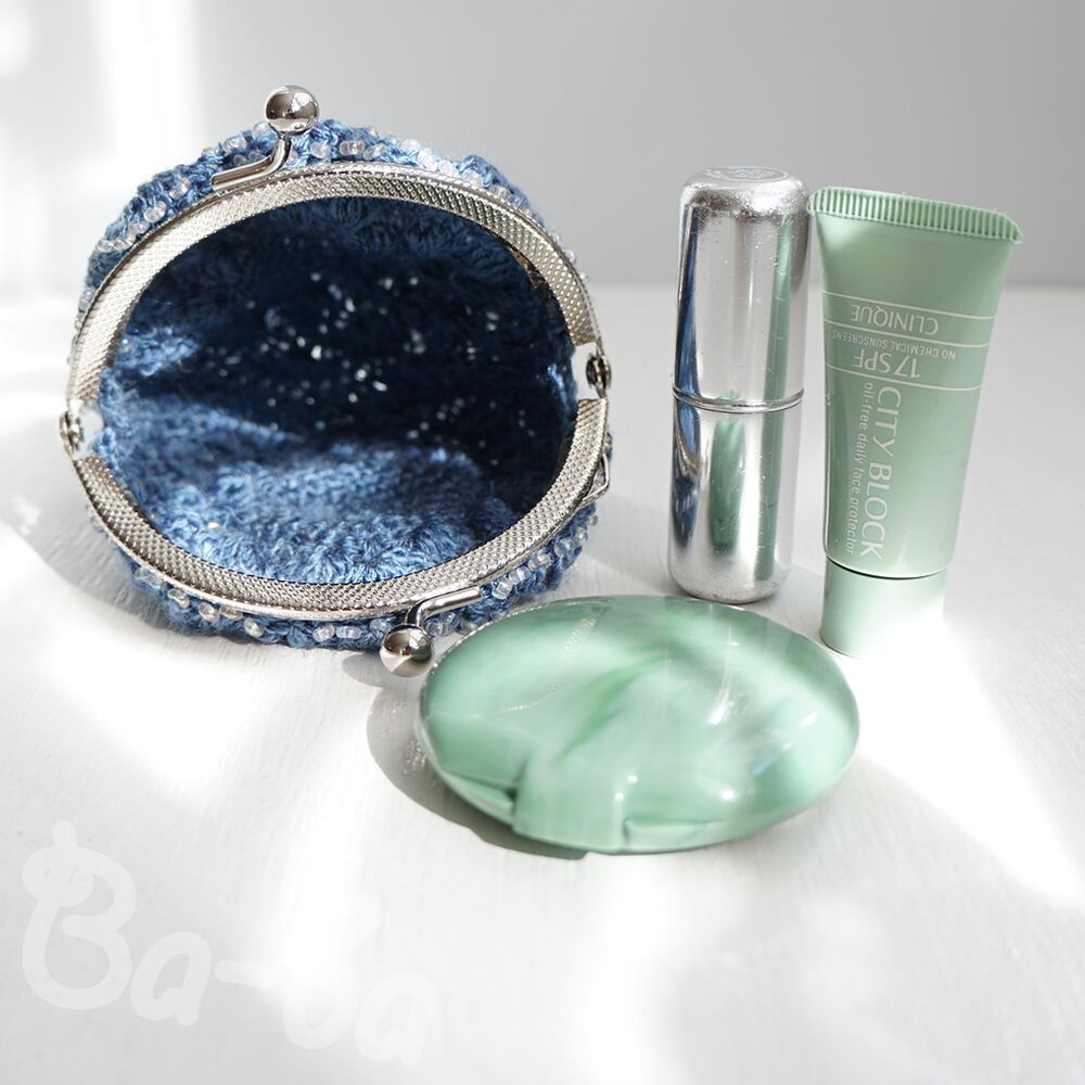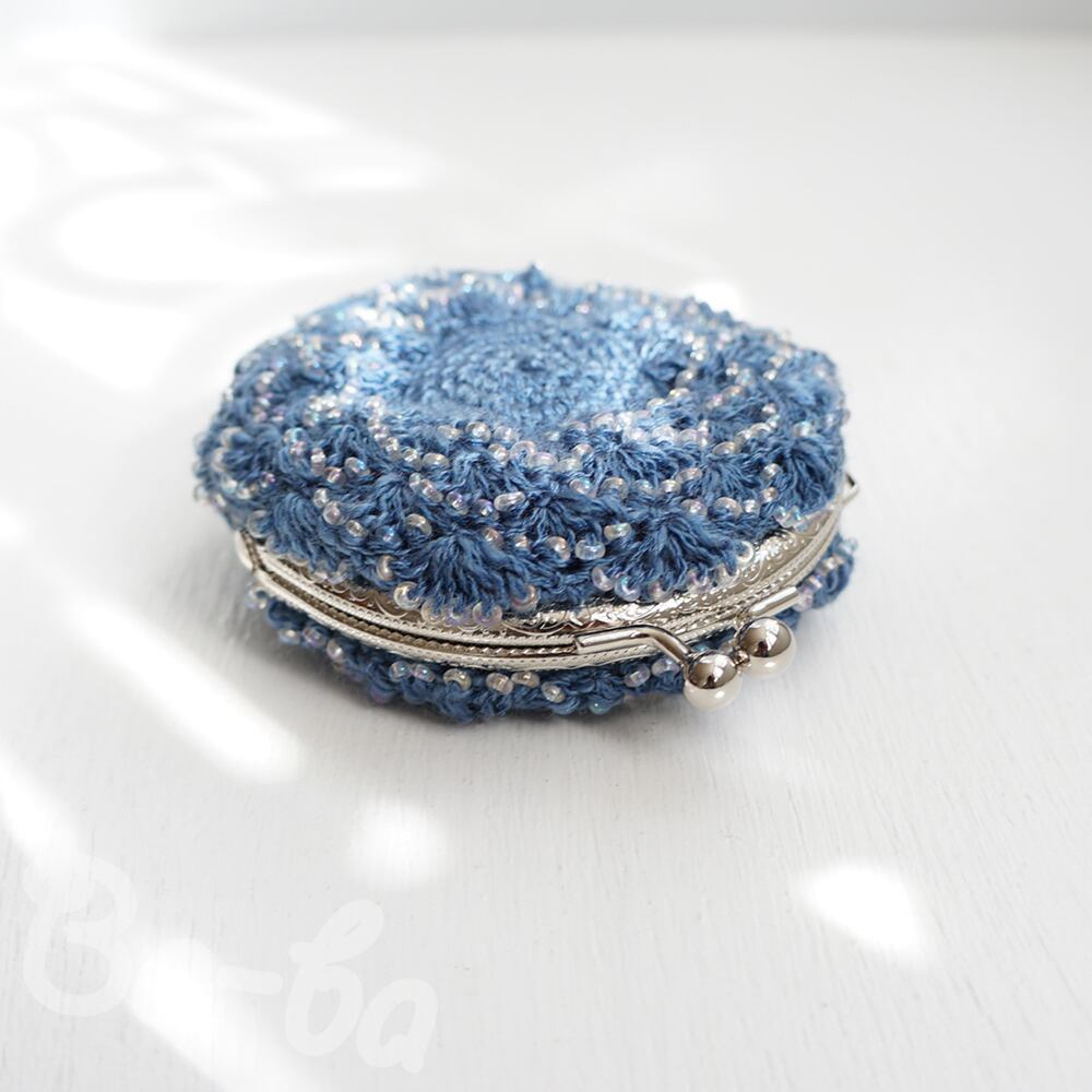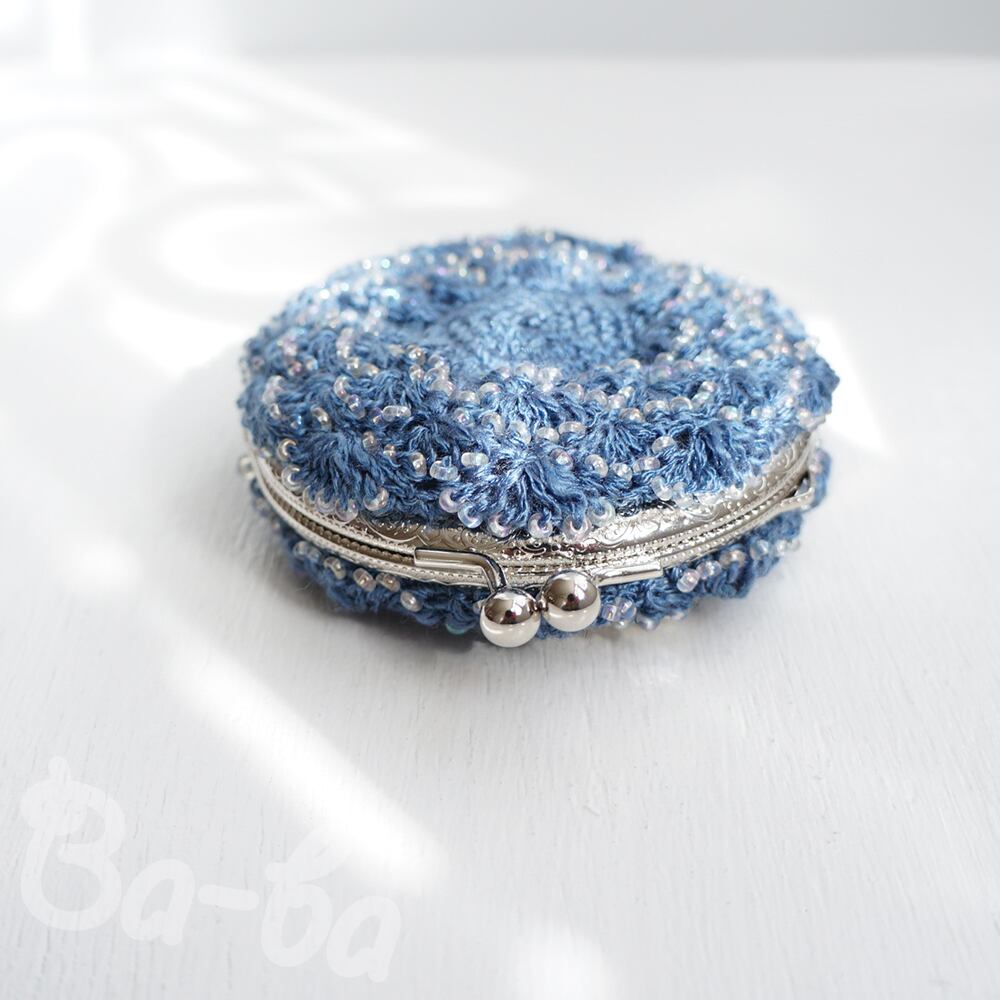 ばあば作、ビーズ入り松編み・まるまるがま口(matin・C1551)