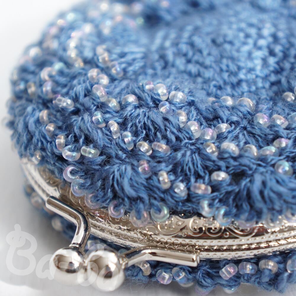 編みがま口の軽量さと、ビーズの輝きを両方取り入れた作品です。