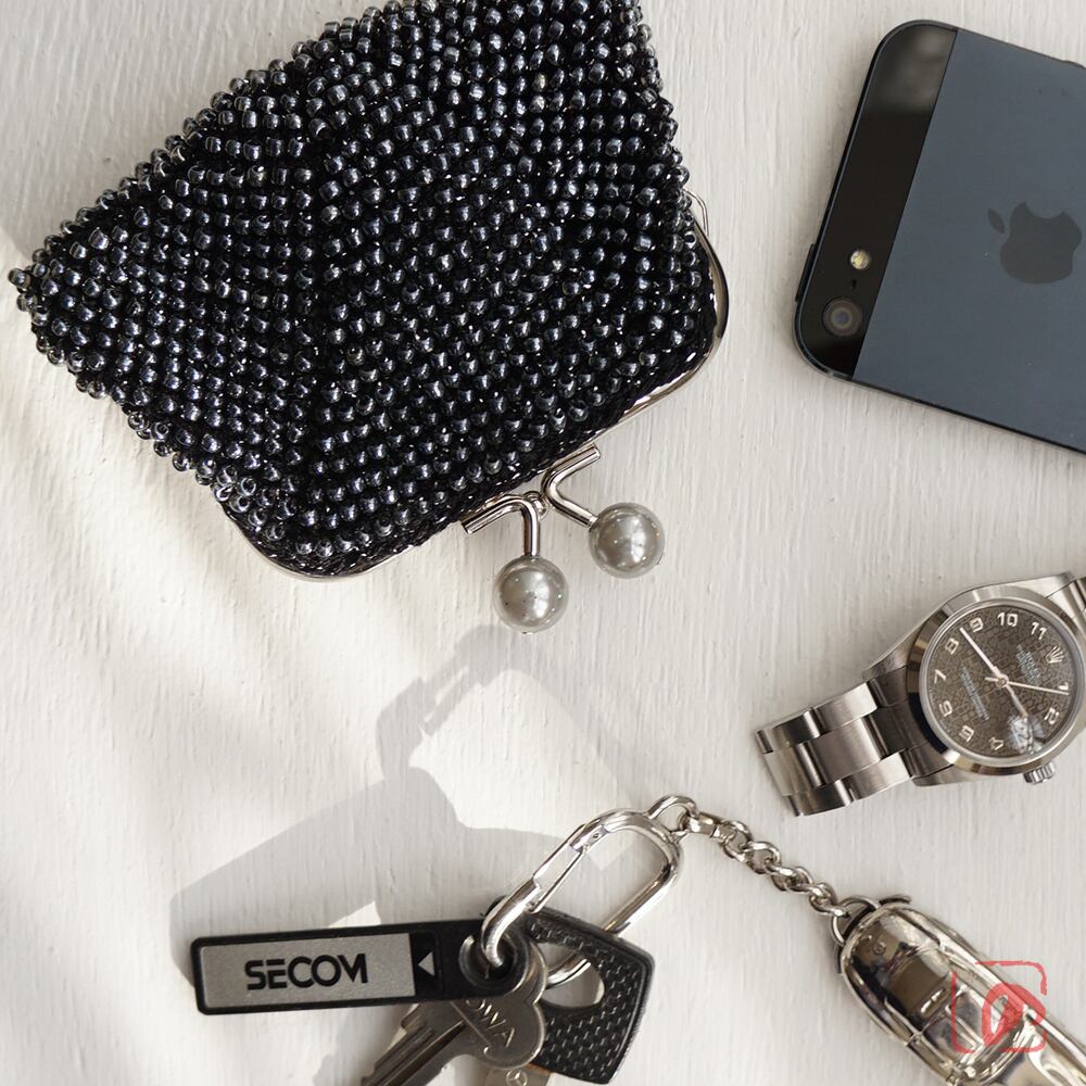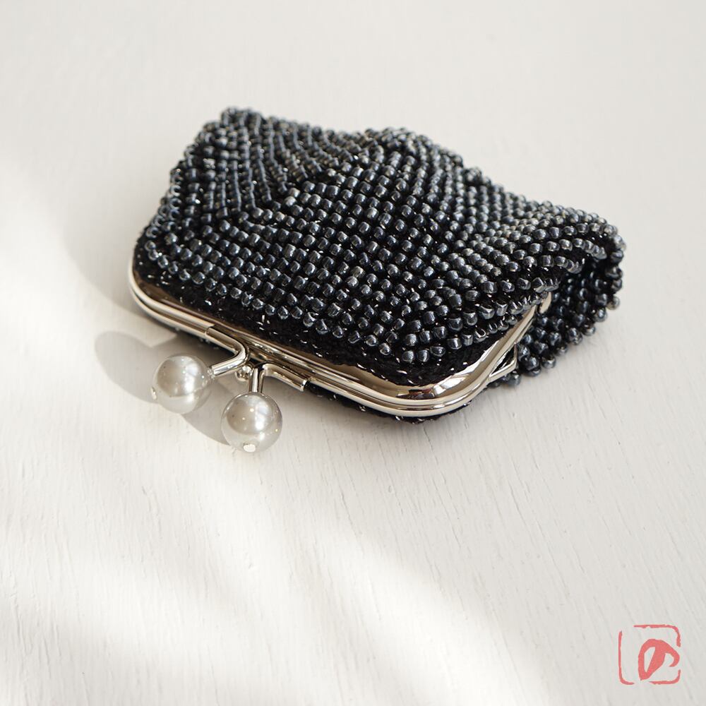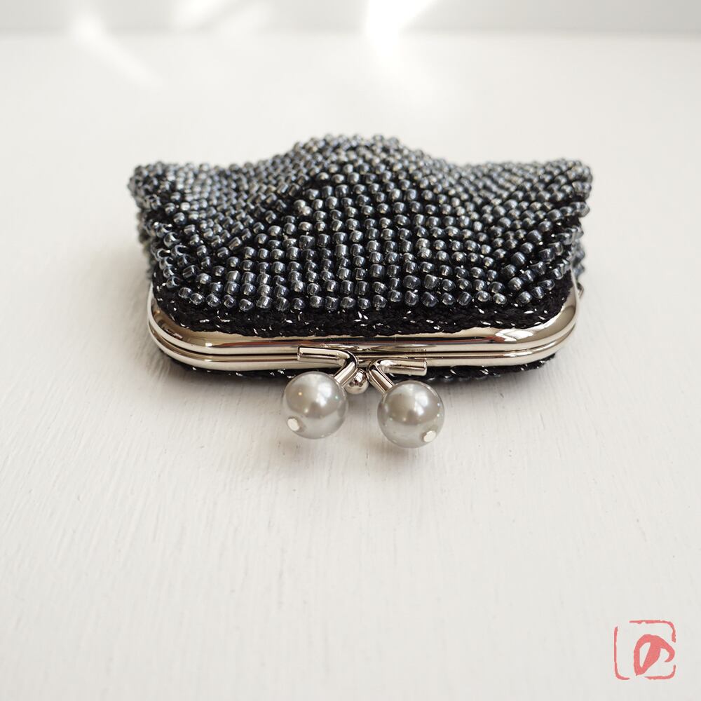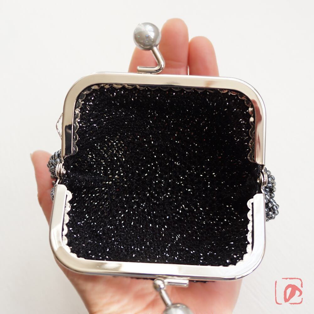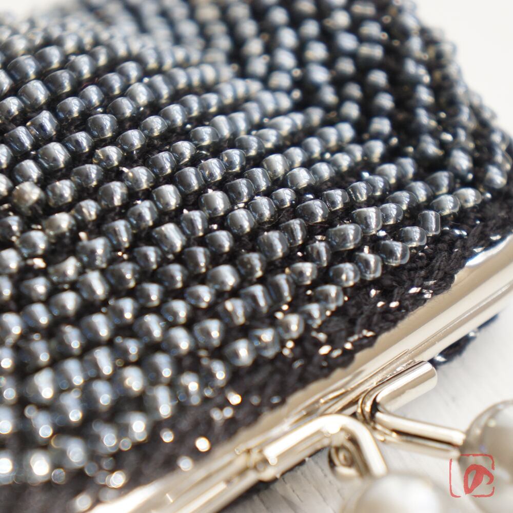 ばあば作☆☆総ガラスビーズのスクエアがま口 (prière・1593)