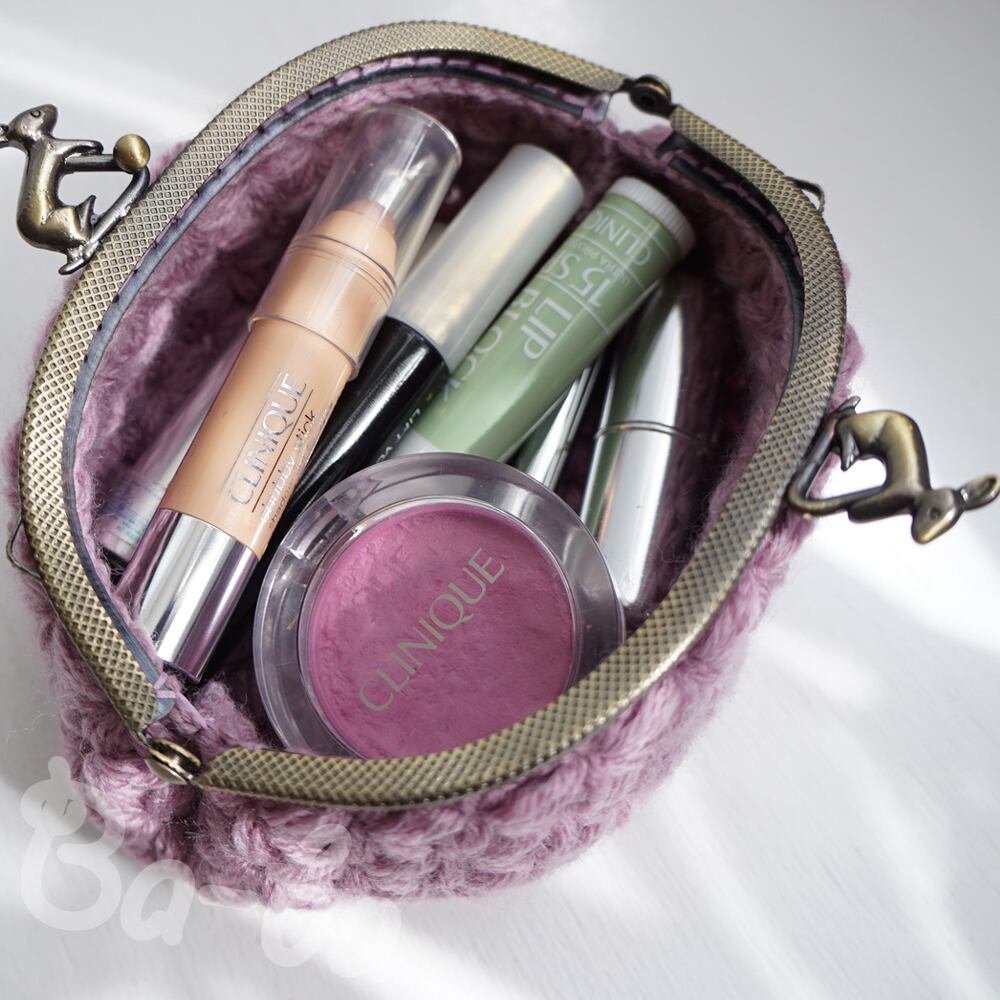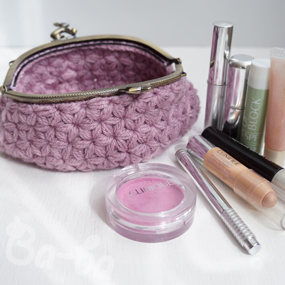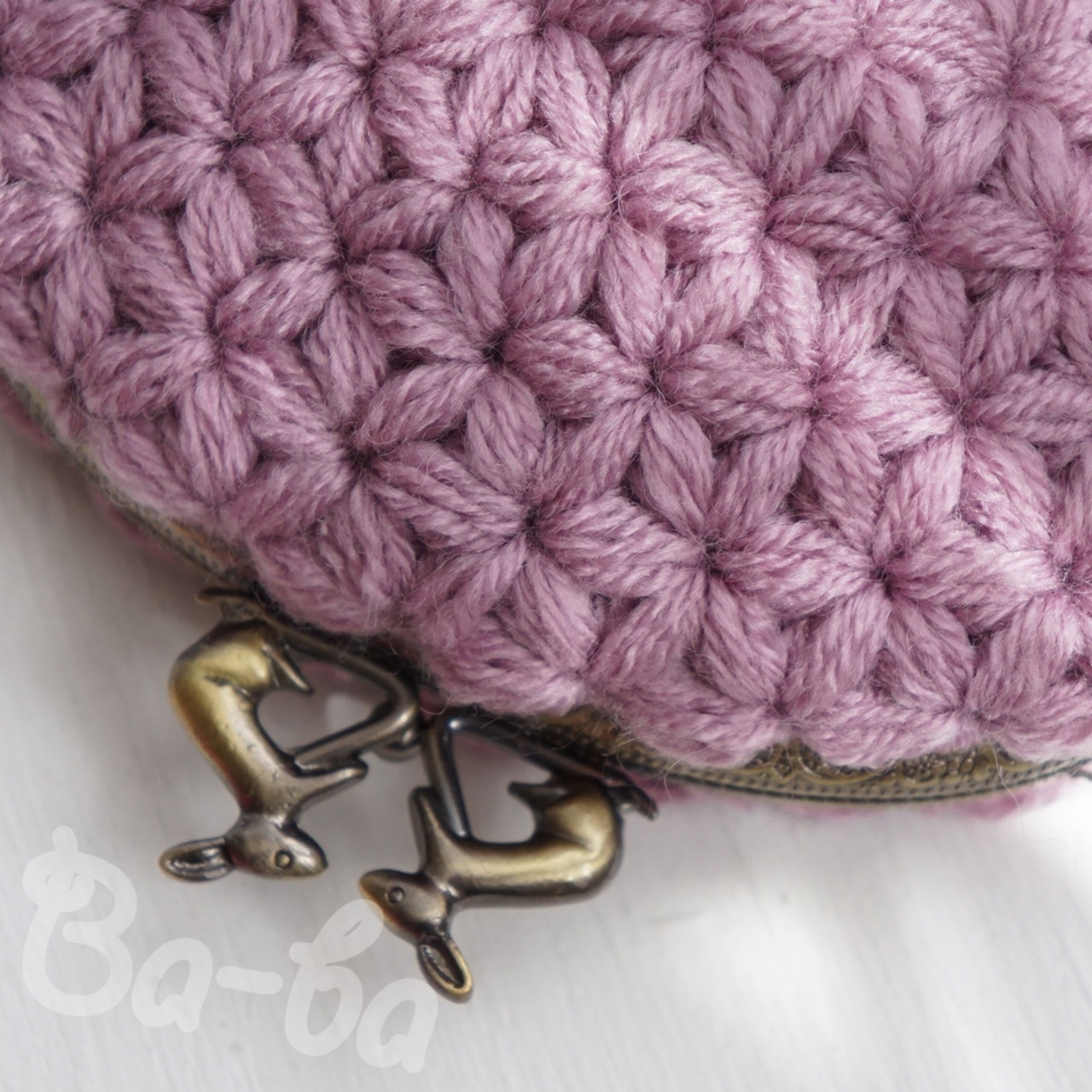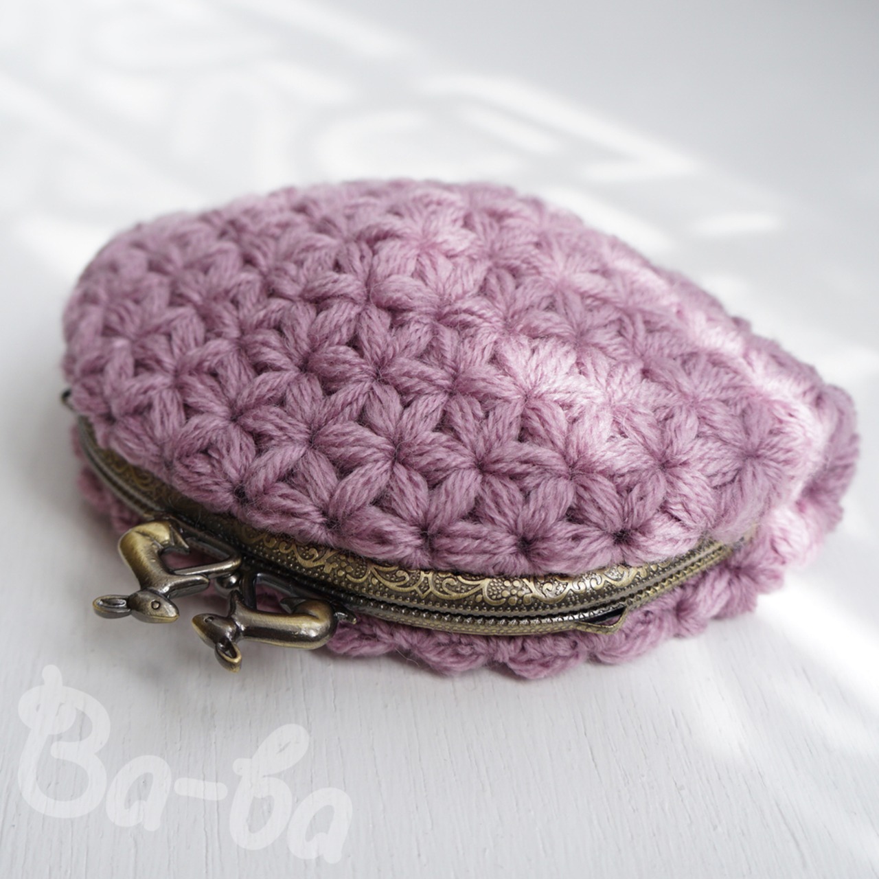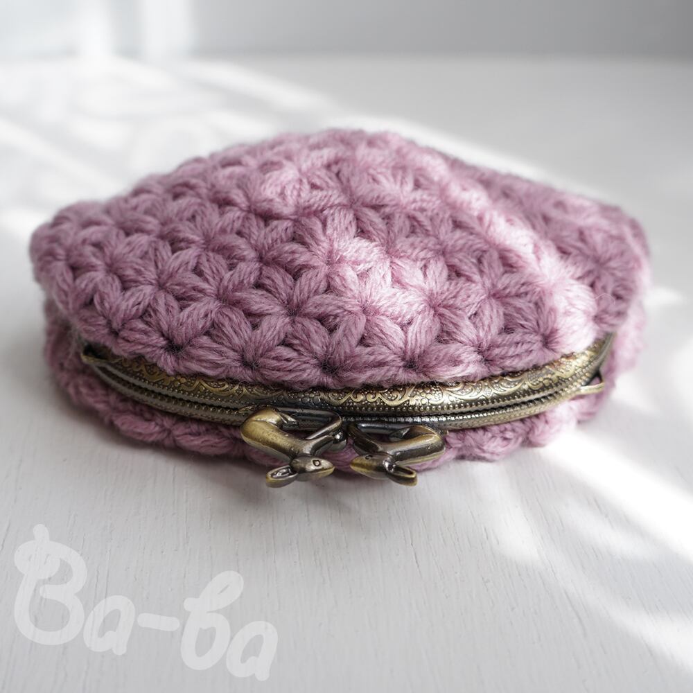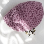 ばあば作・リフ編みのがま口ポーチ(らべんだー・C1563)
