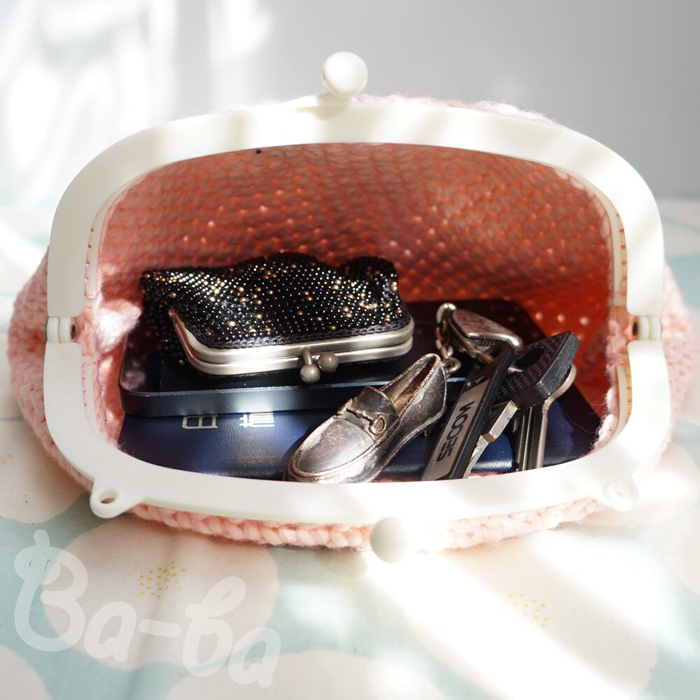 プラ口金使用で軽量、縫い付け口金で丈夫に仕上げています。