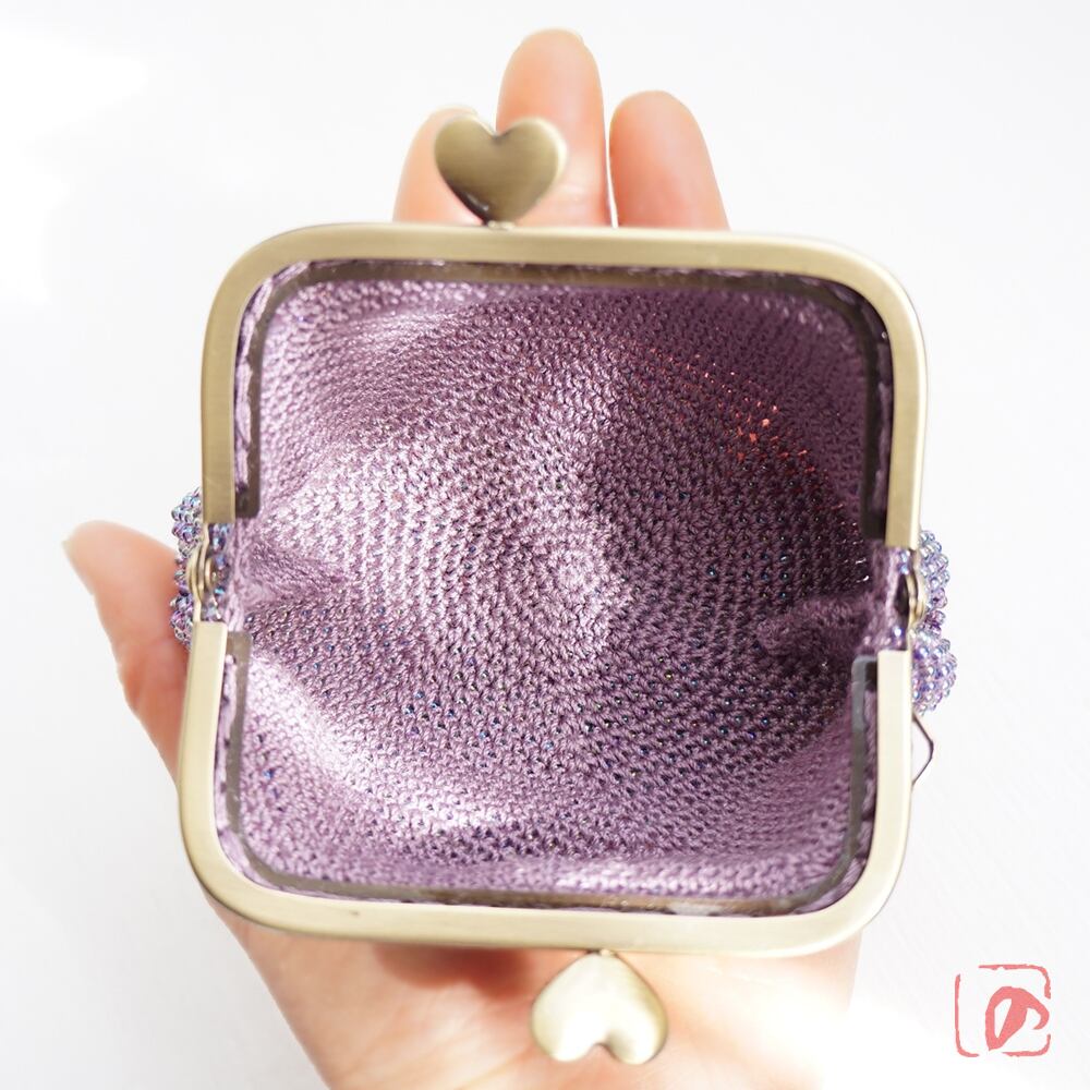 ばあば作 ♡ シードビーズのスクエアがま口(violet・1627)