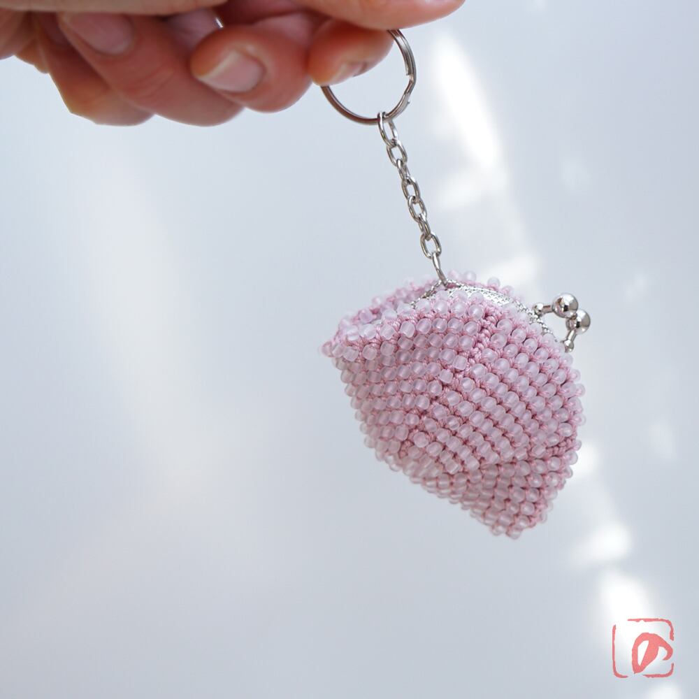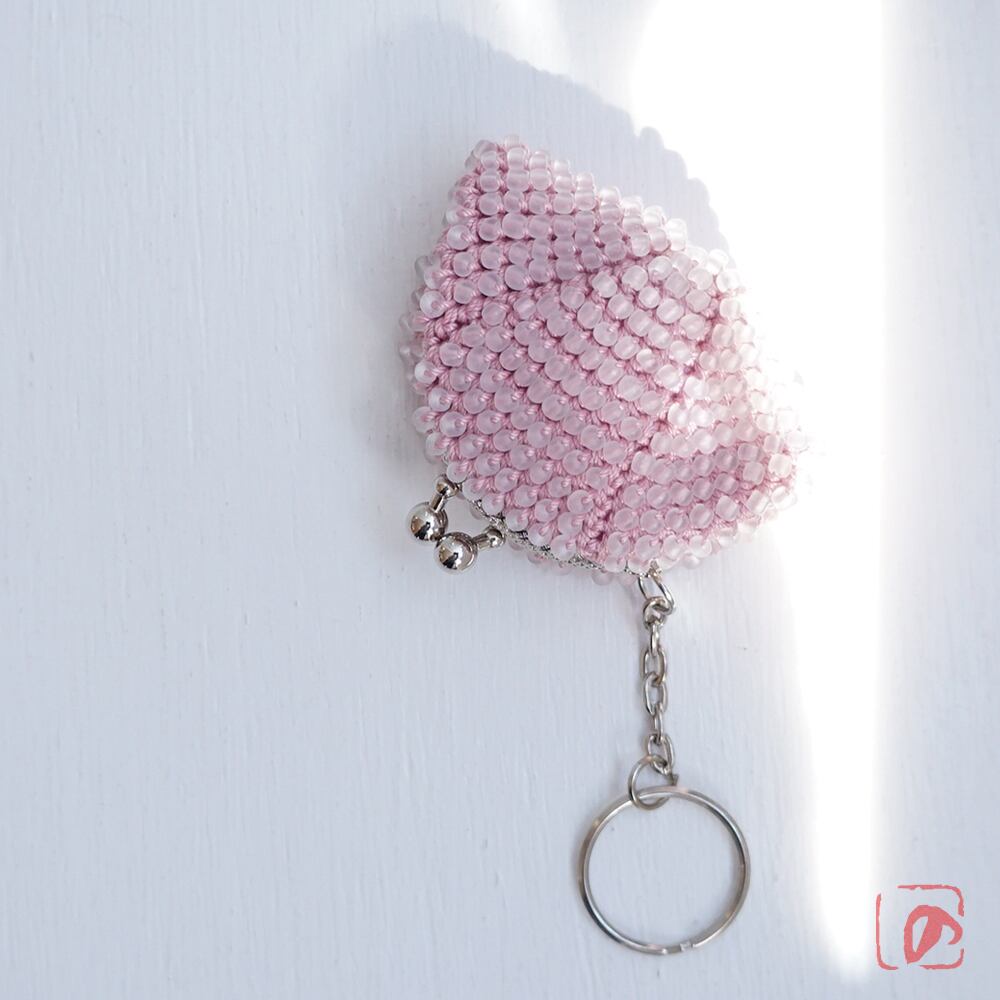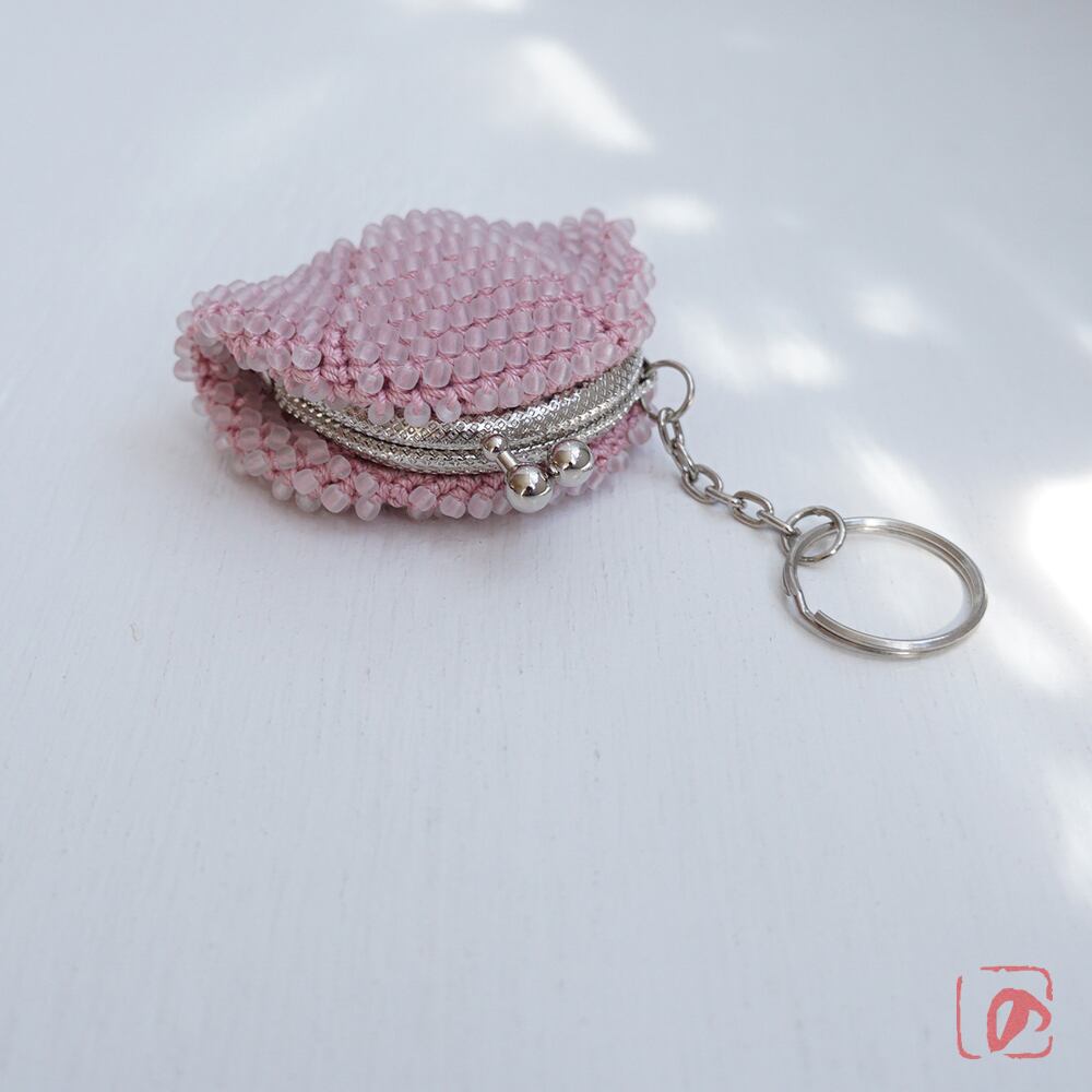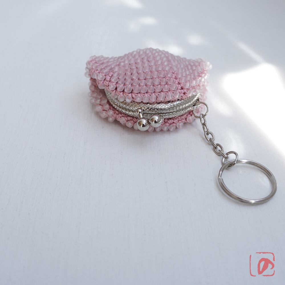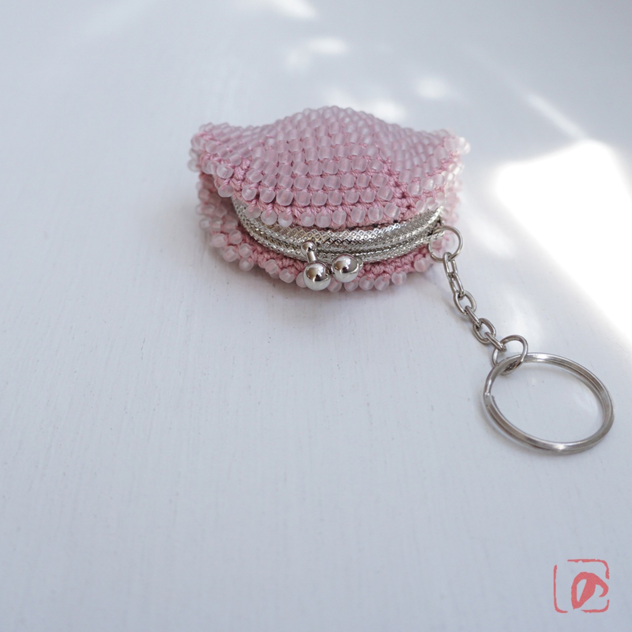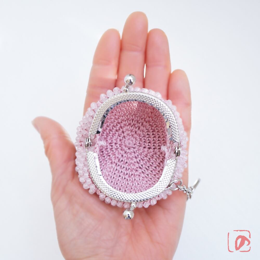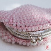 3mmのガラスビーズをひとつぶづつ編み込んだがま口です。