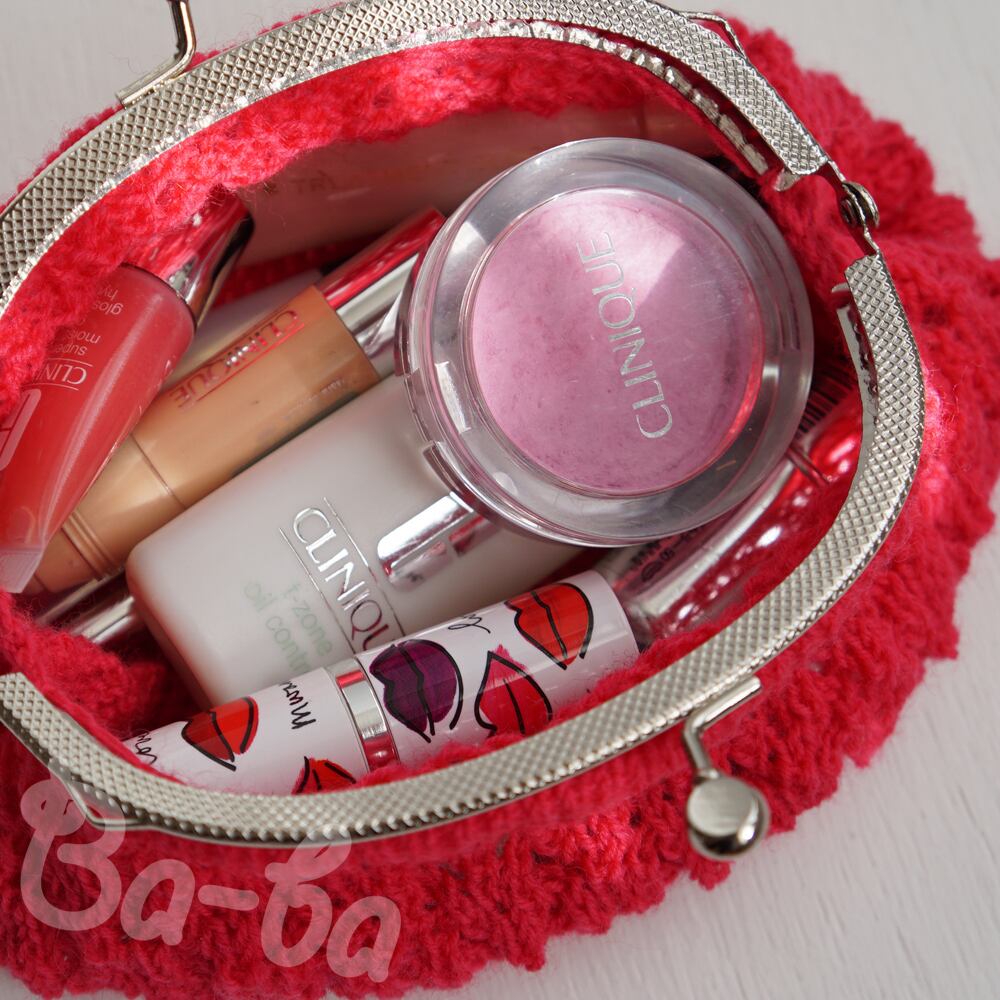 底部分を大きく編み、たっぷり入る大きめポーチになりました。