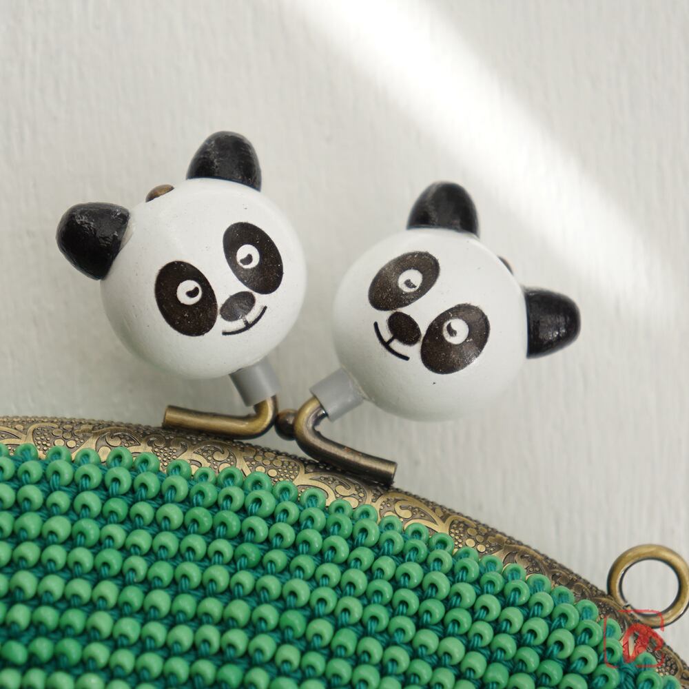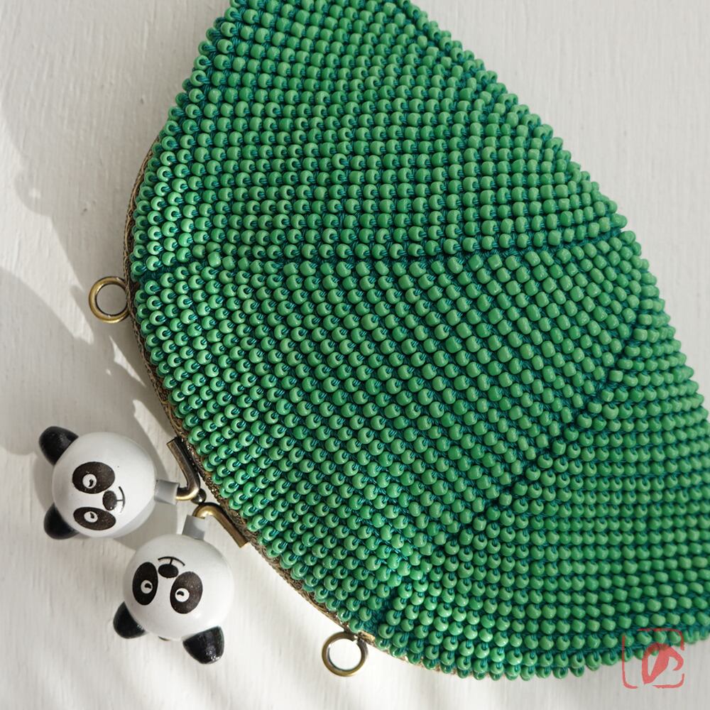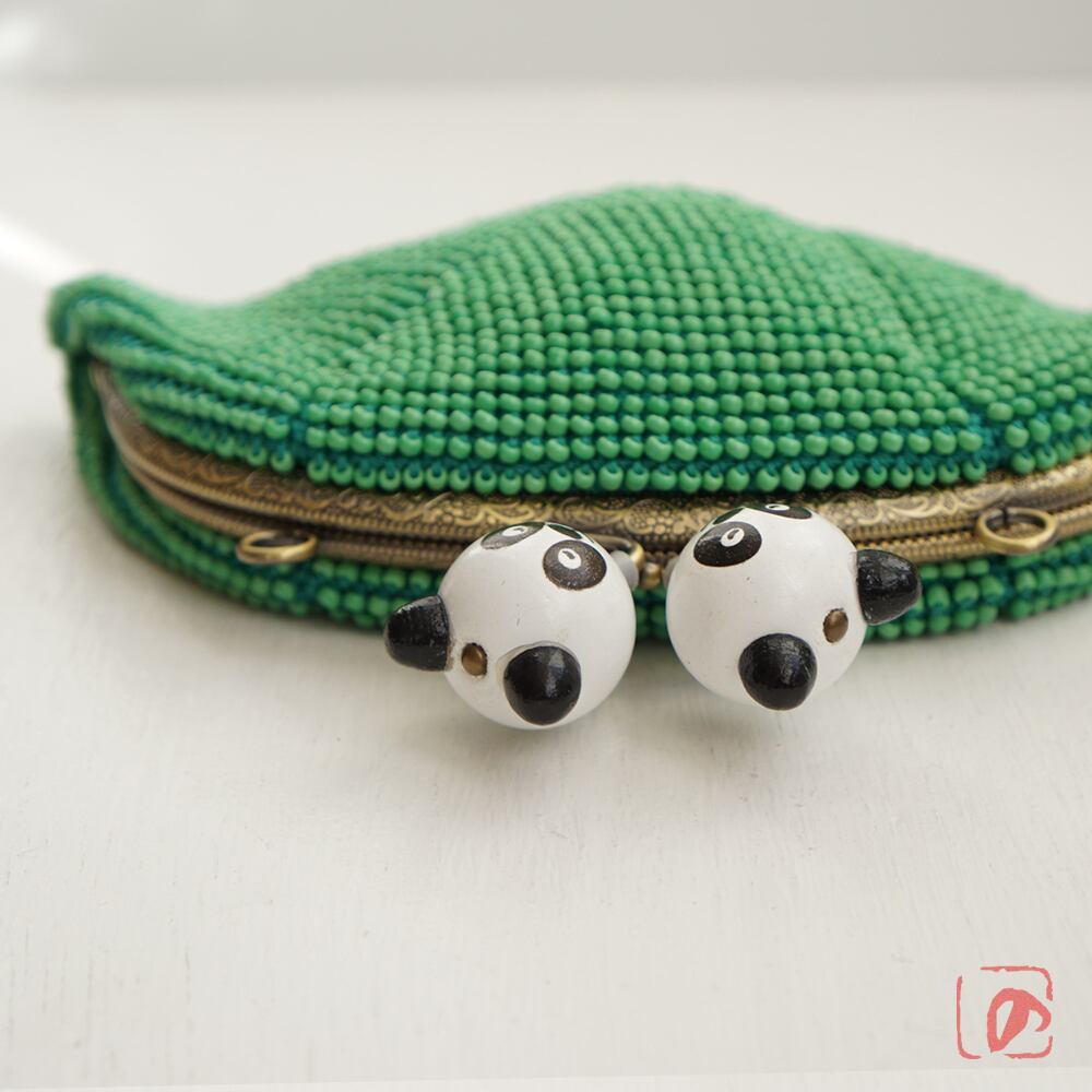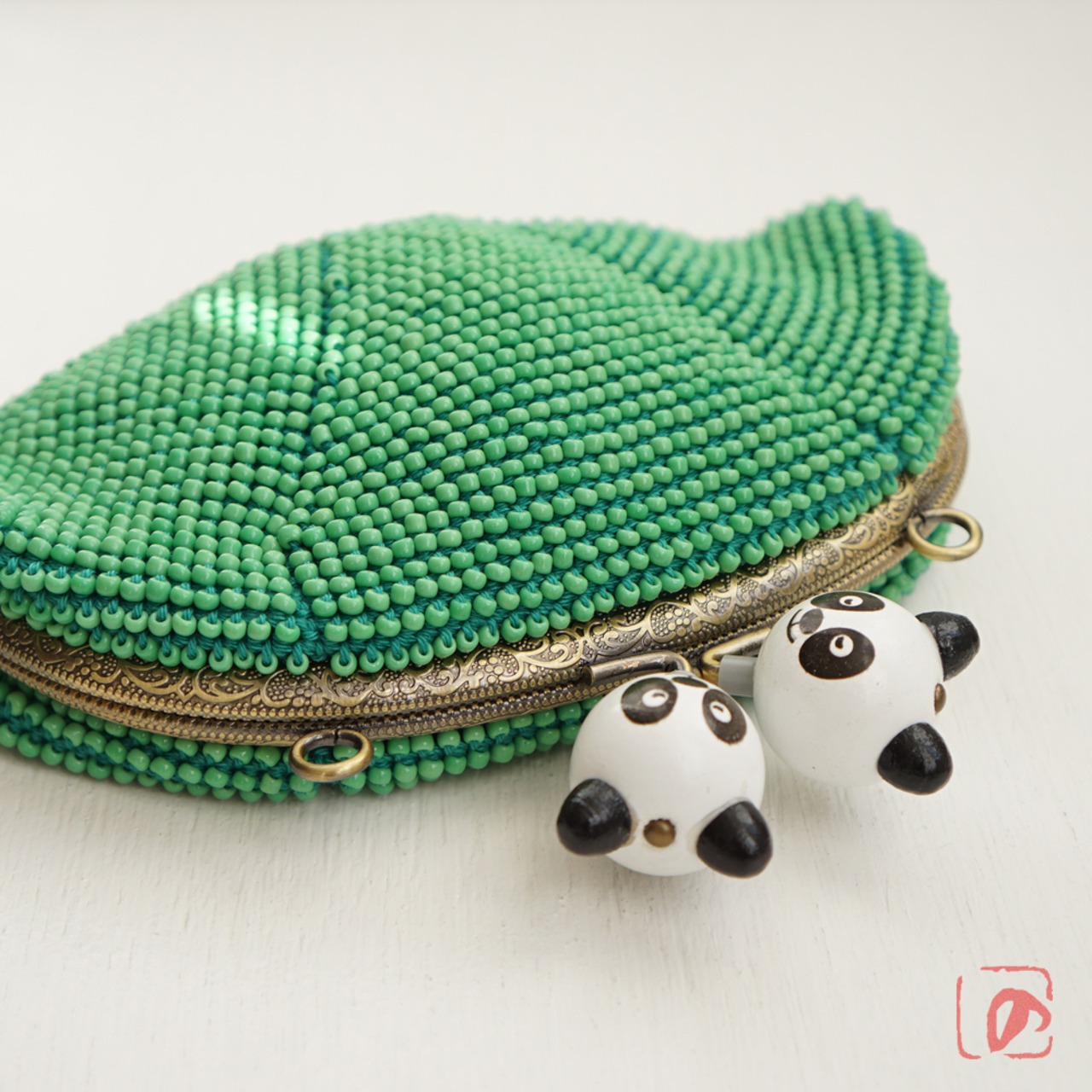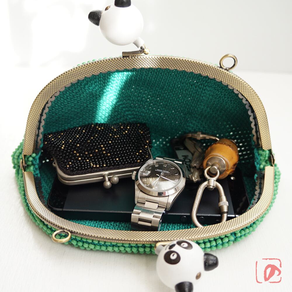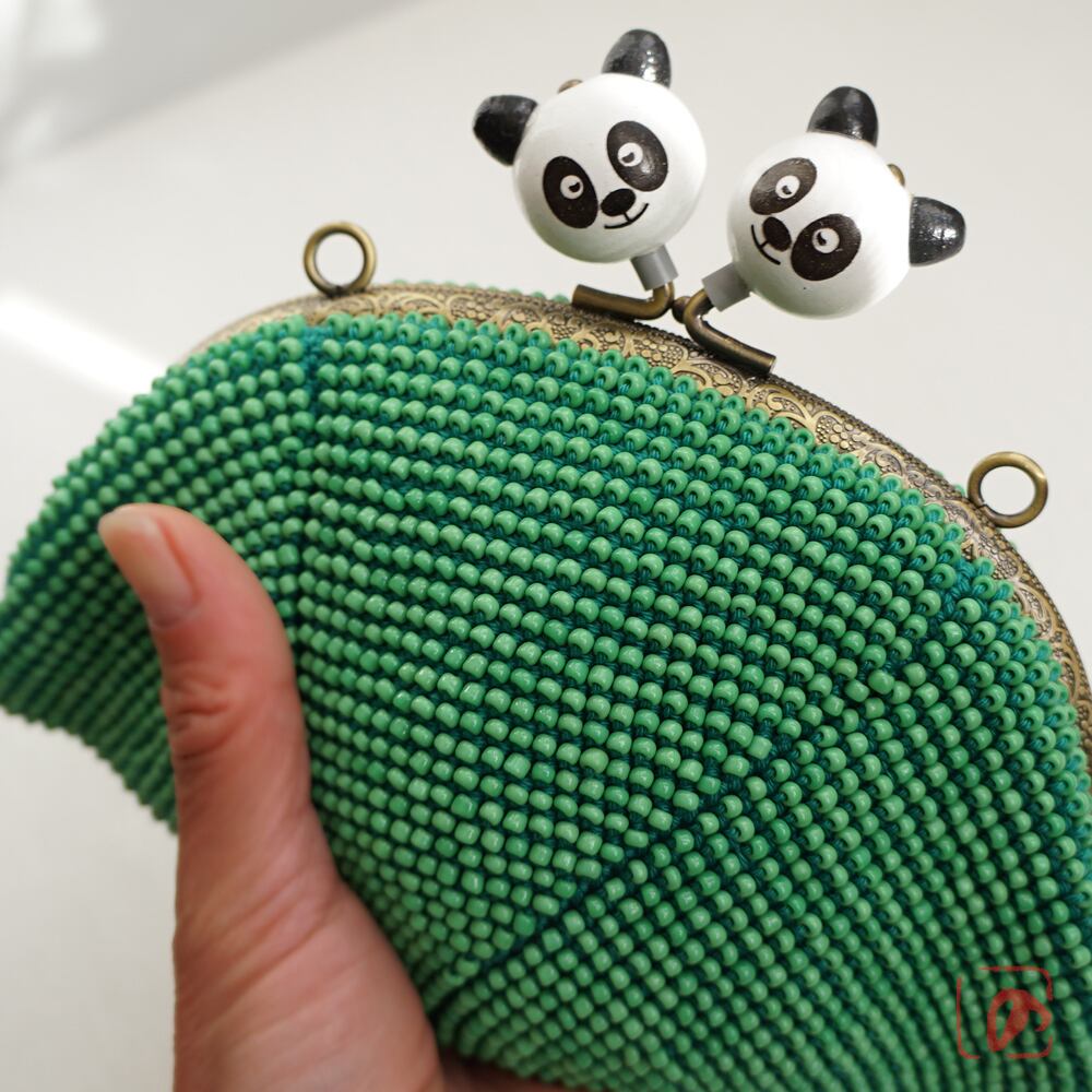 ばあば作♬ 仲良しパンダのガラスビーズプチバッグ(panda gentile・1592)