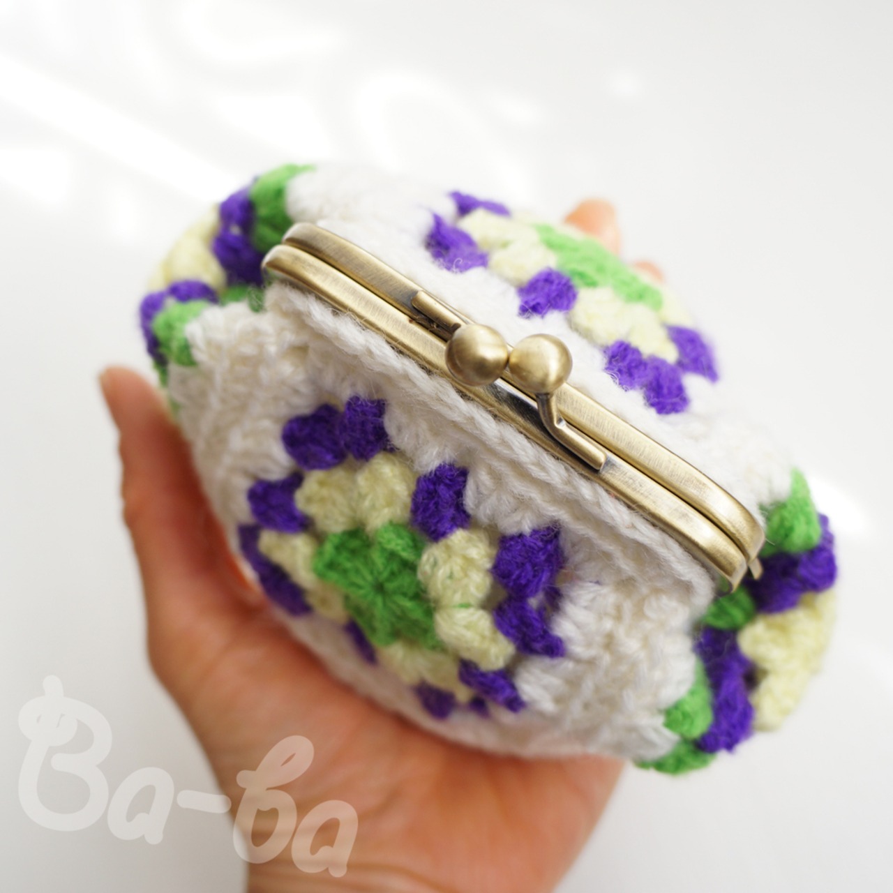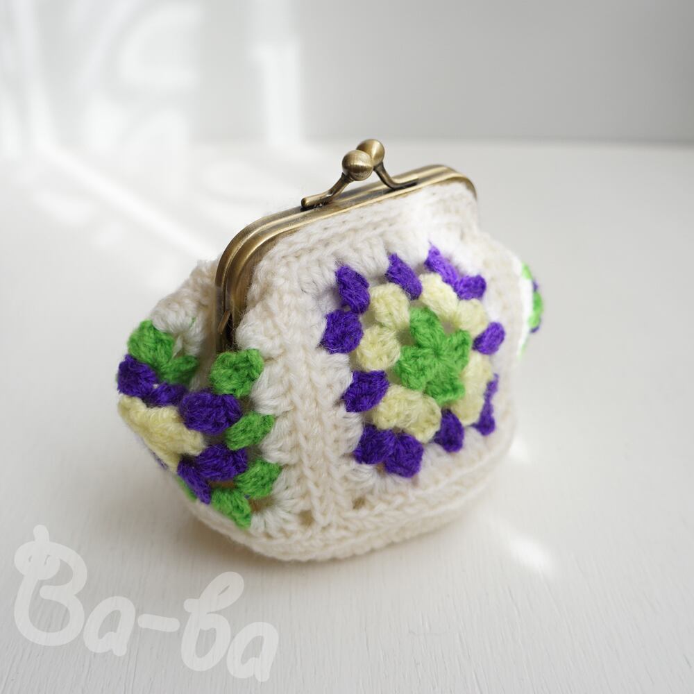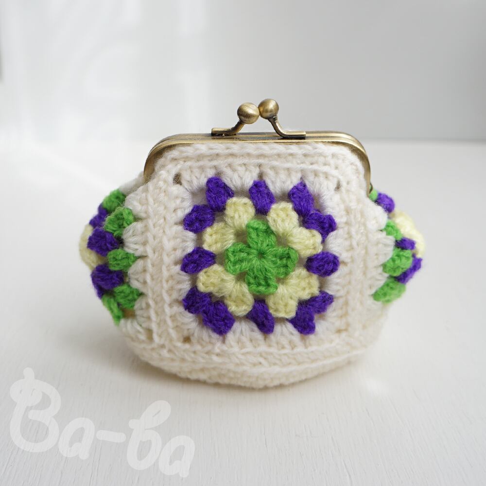 ばあば作、グラニースクエアのがま口(granny square・C1542)