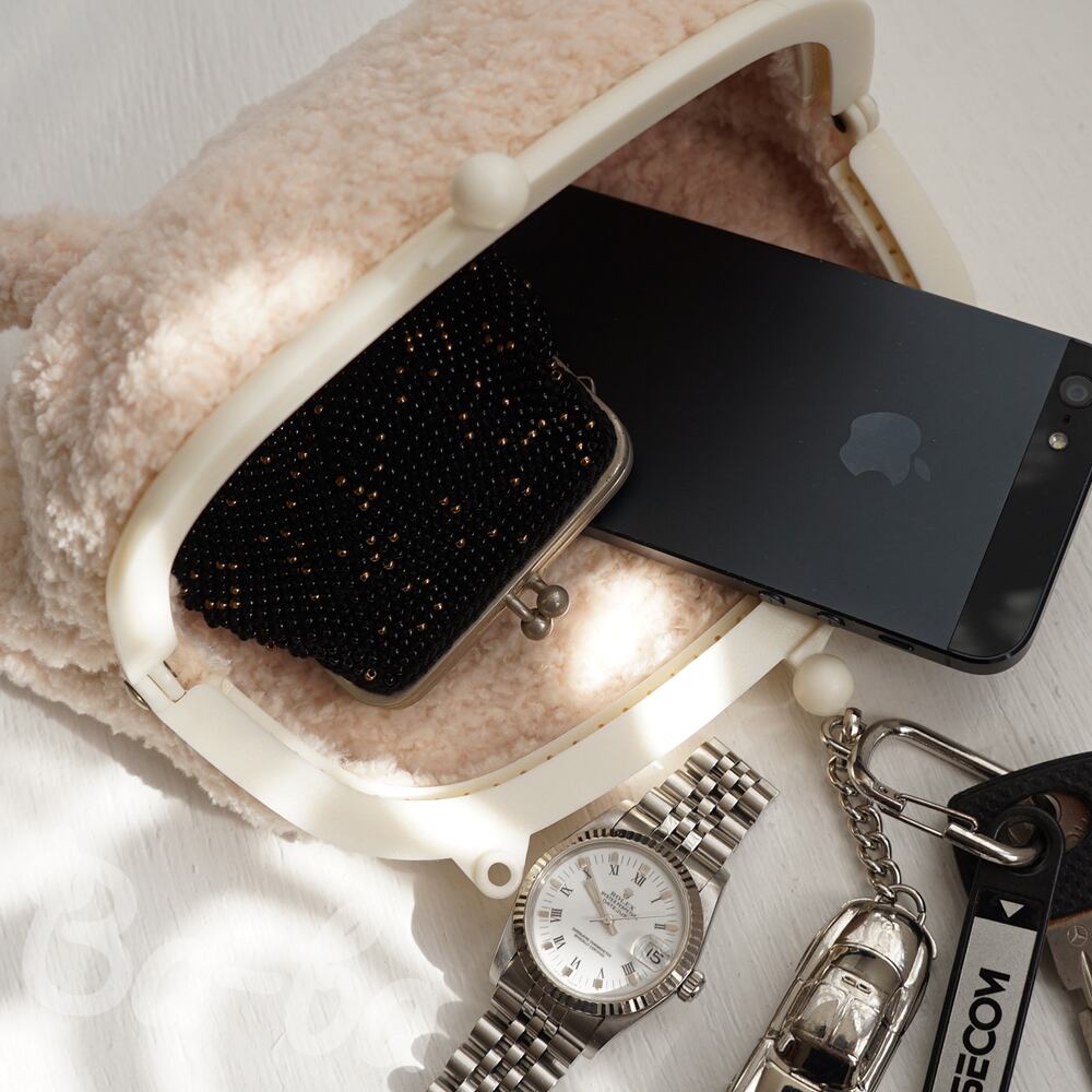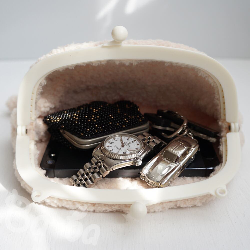 ふわっふわ~ボアがま口、ふんわりやわらかな手触りです。