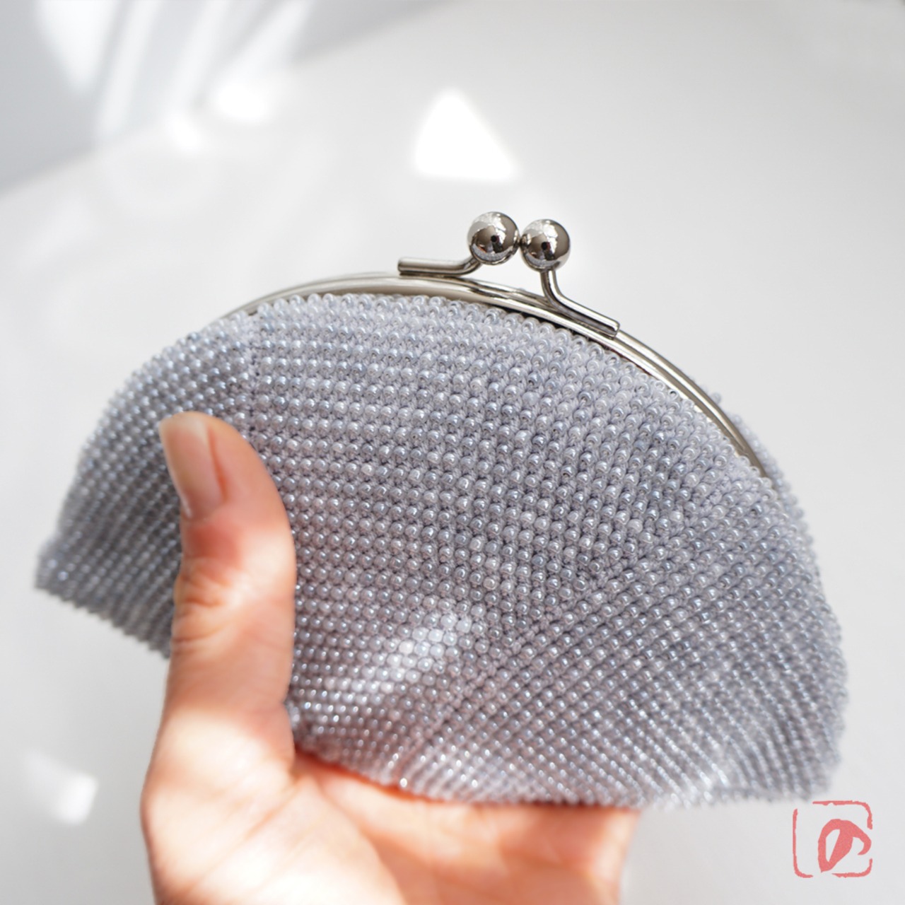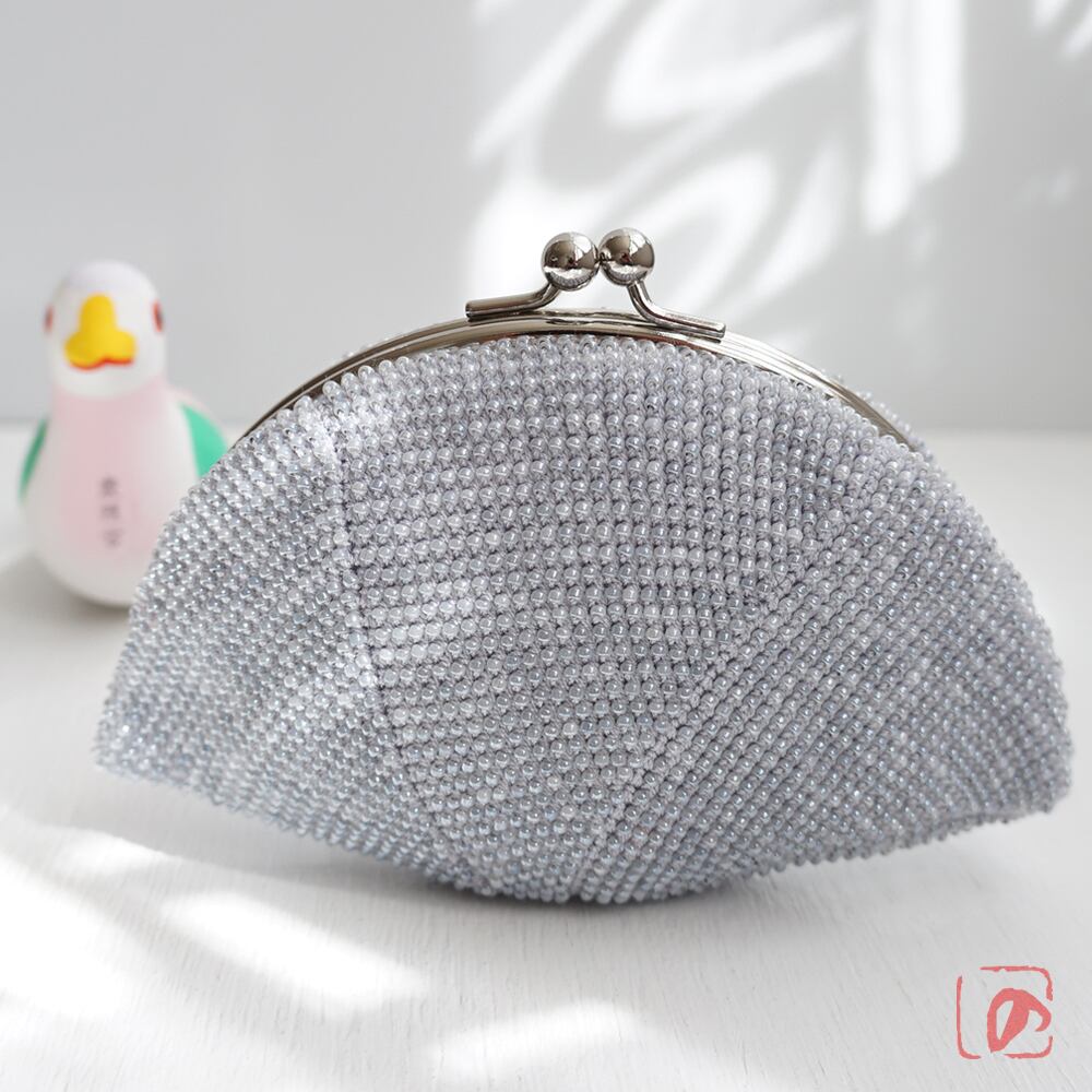 2mmの日本製シードビーズをひとつぶづつ全面に編み込んだ、上質ながま口です。