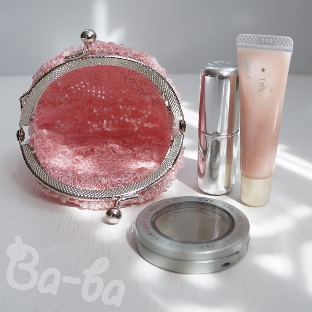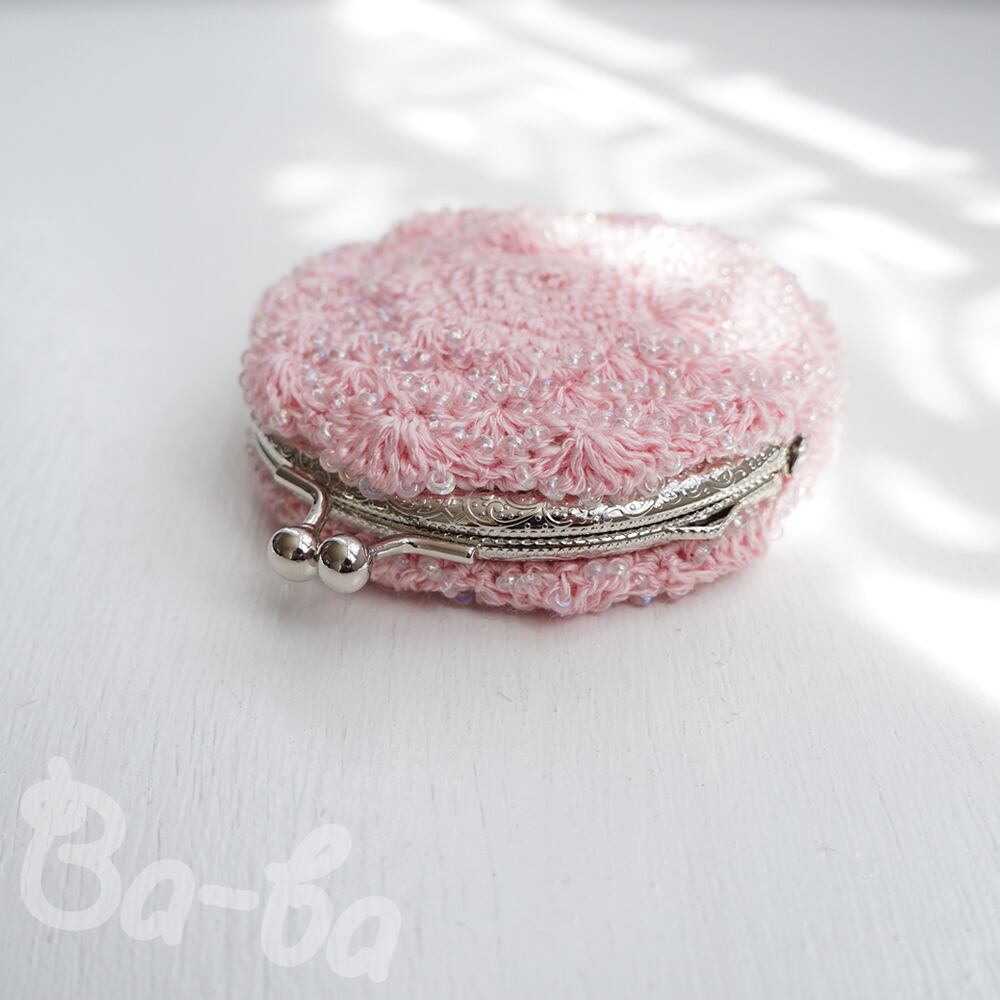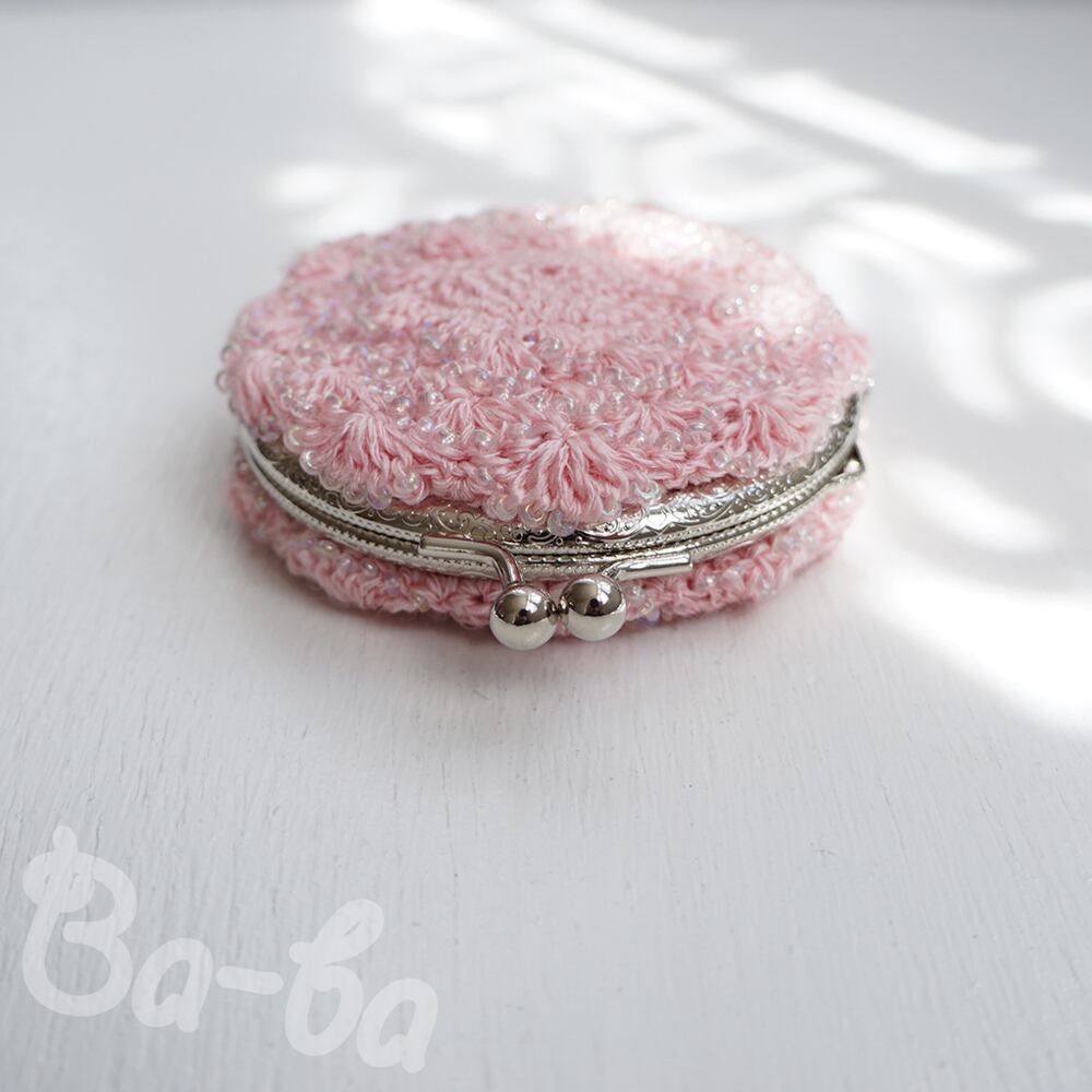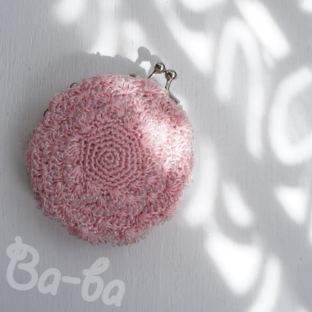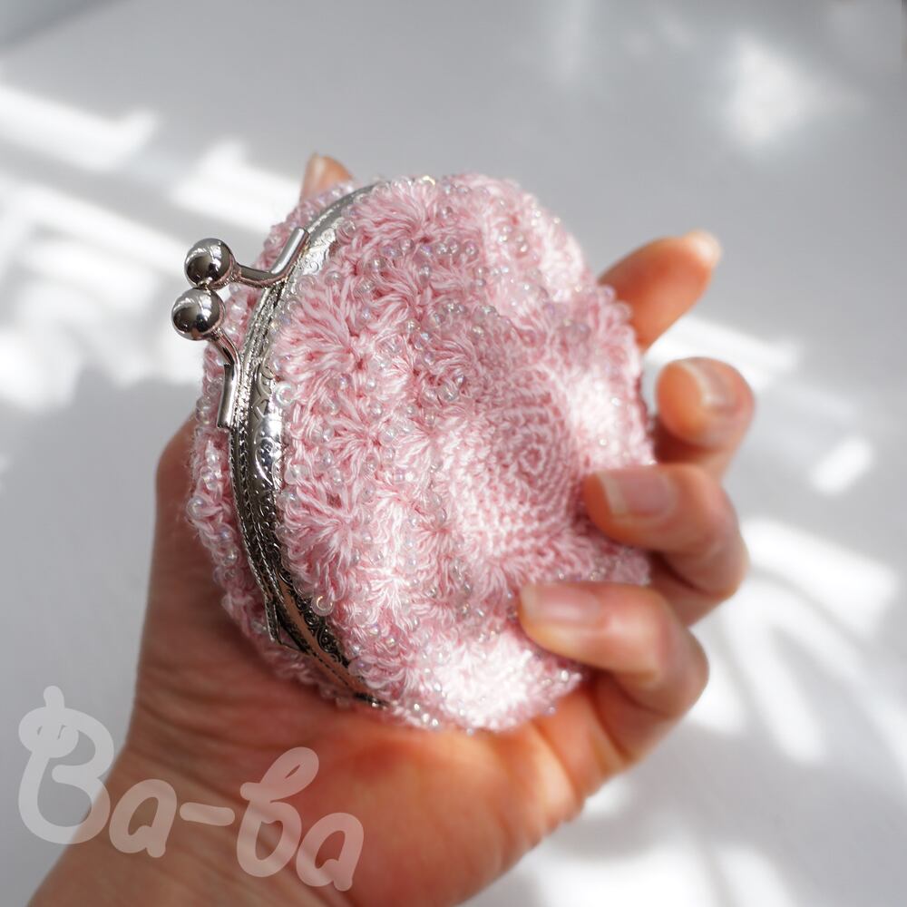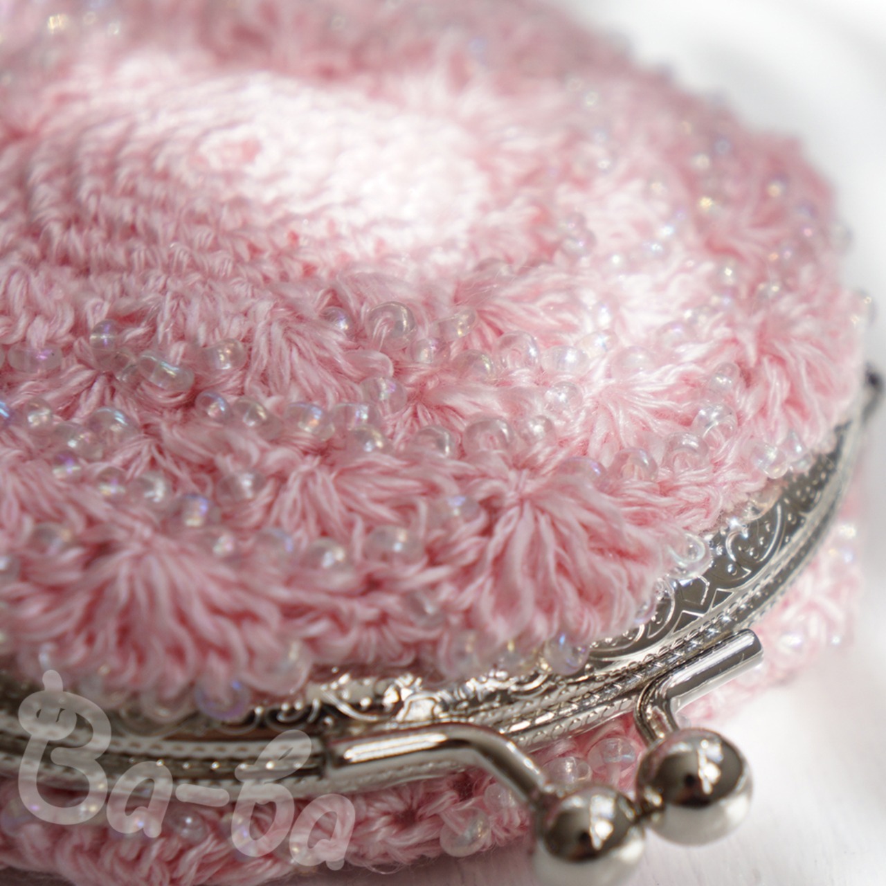 ばあば作、ビーズ入り松編み・まるまるがま口(fioli・C1572)
