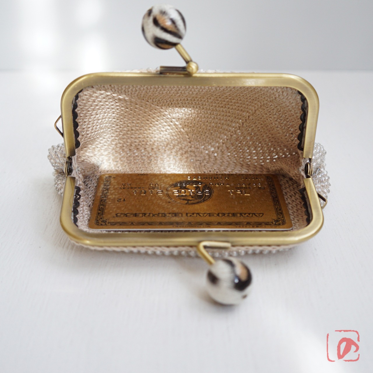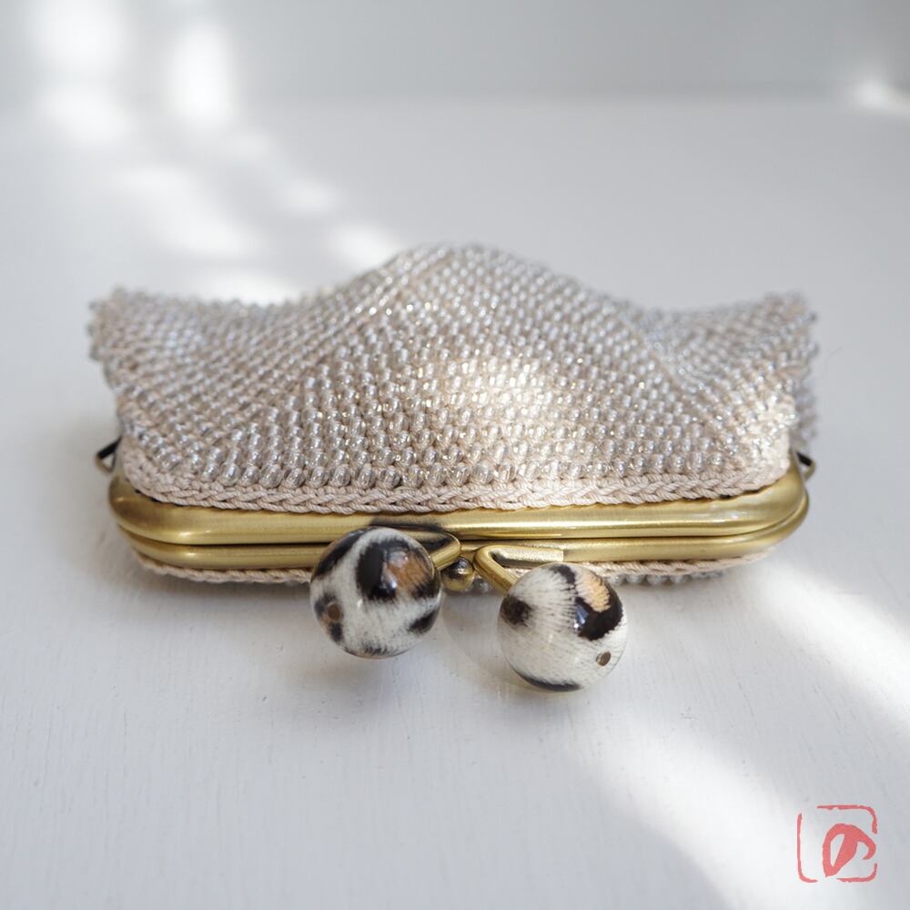 ばあば作、大きめ・総ガラスビーズのスクエアがま口(レオパード・1587)