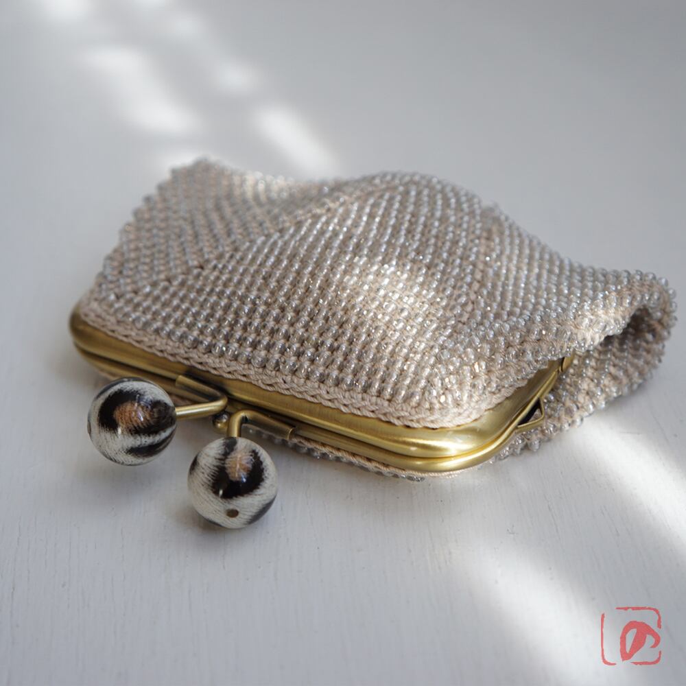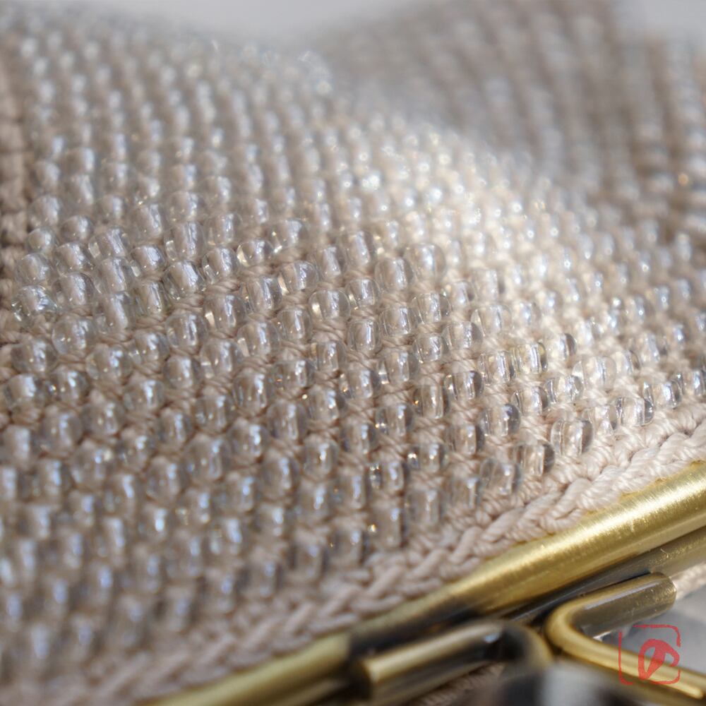 3mmのガラスビーズをひとつぶづつ、全面に編み込みました。