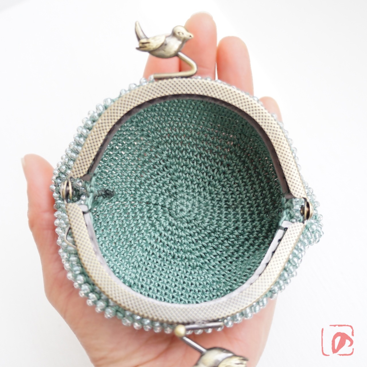 口金 : アンティークゴールド、小鳥のつまみ、8.5cm、丸型、片カン