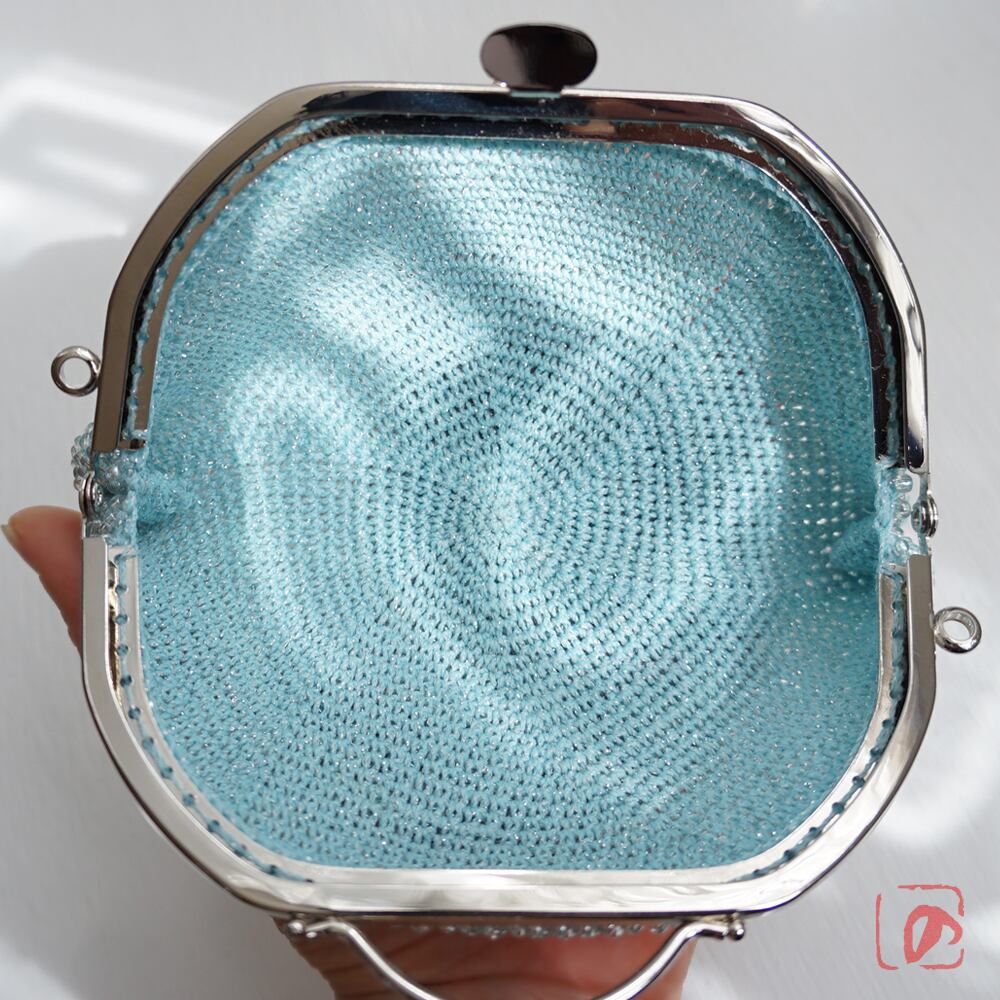 糸 : 混紡サマーヤーン(銀ラメ入り水色)