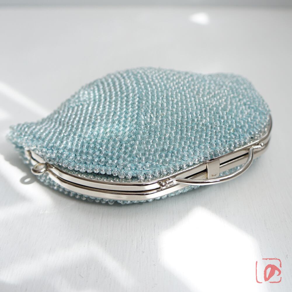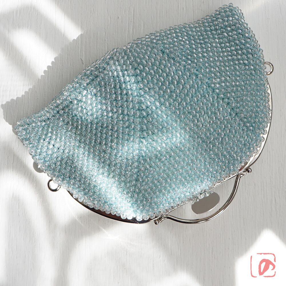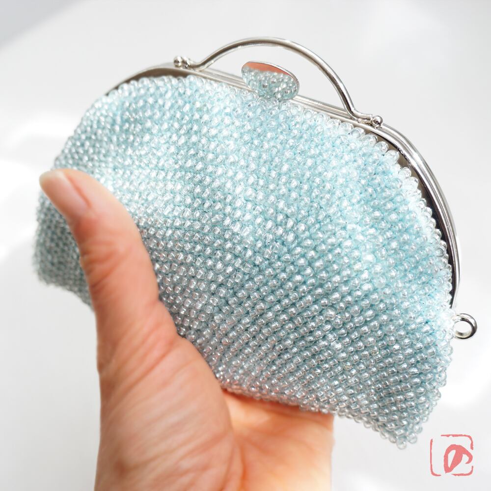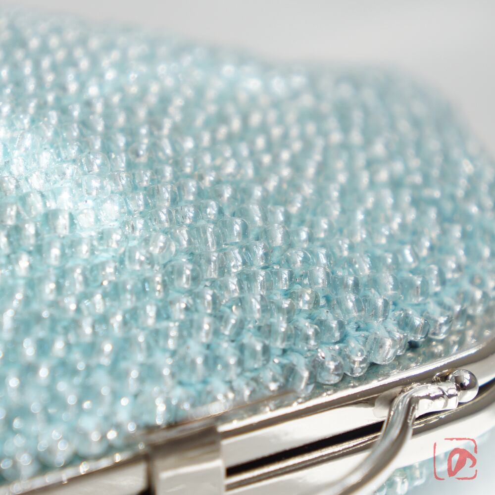 3mmのガラスビーズをひとつぶづつ、全面に編み込んでポーチに仕上げました。