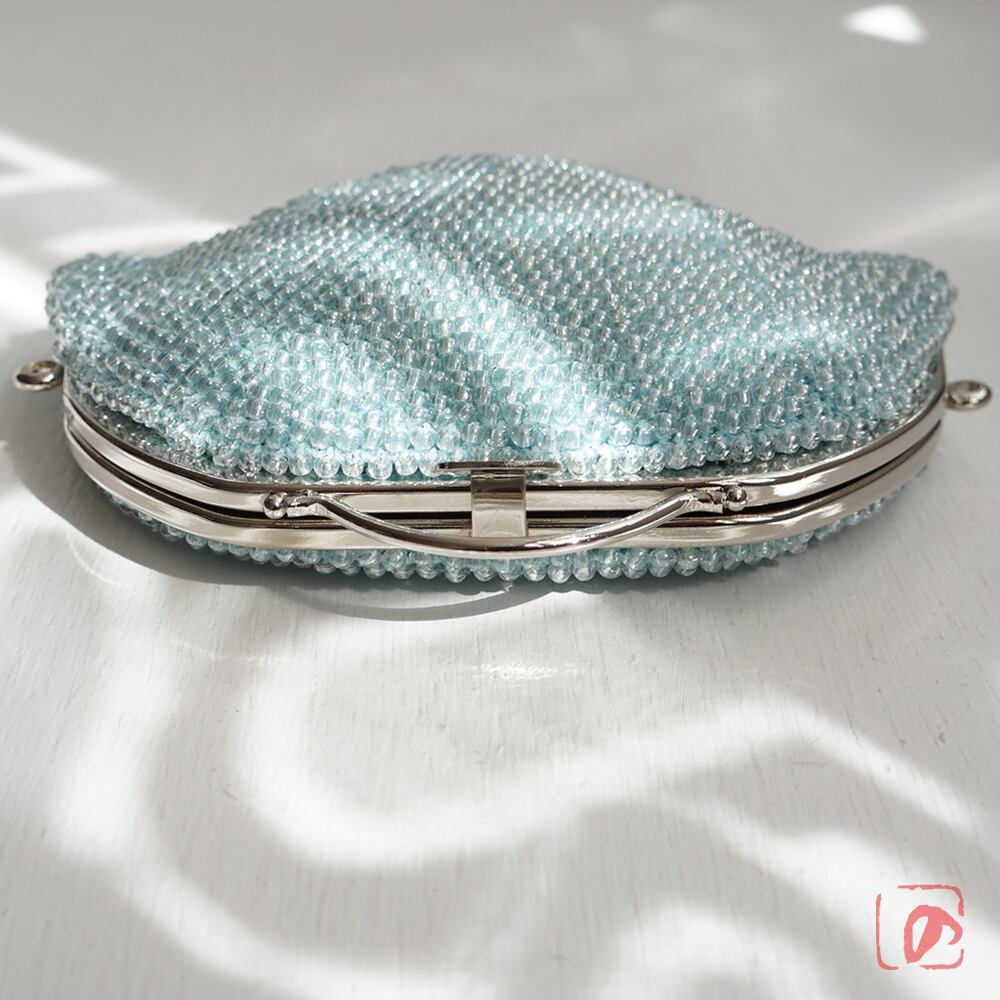ばあば作☆ガラスビーズのレトロポーチ(l’eau・1649)