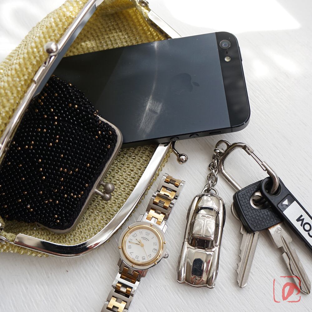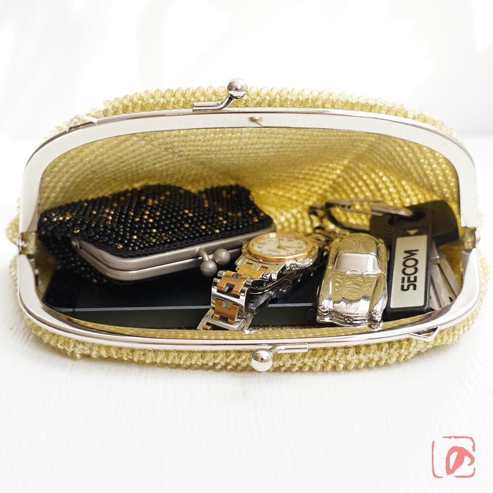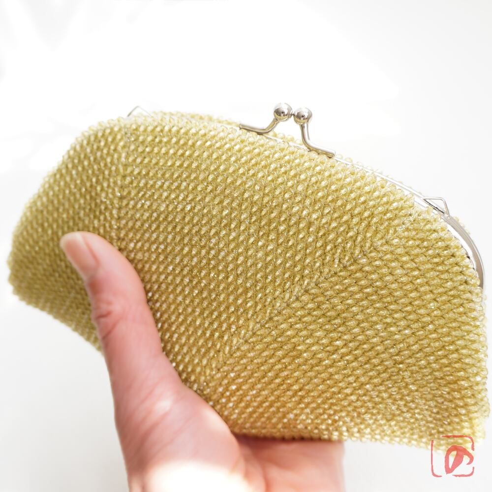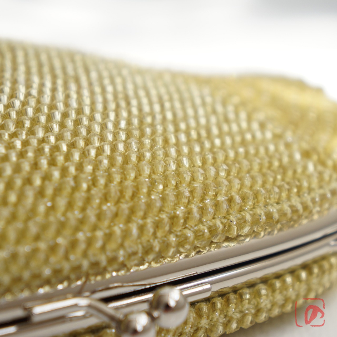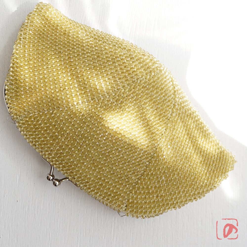 全面にアクリルビーズを編み込んでプチバッグを制作しました。