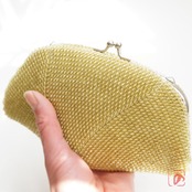 幅15cmくし型の口金を使用、ポーチとして、またオプションのチェーン等でアレンジ