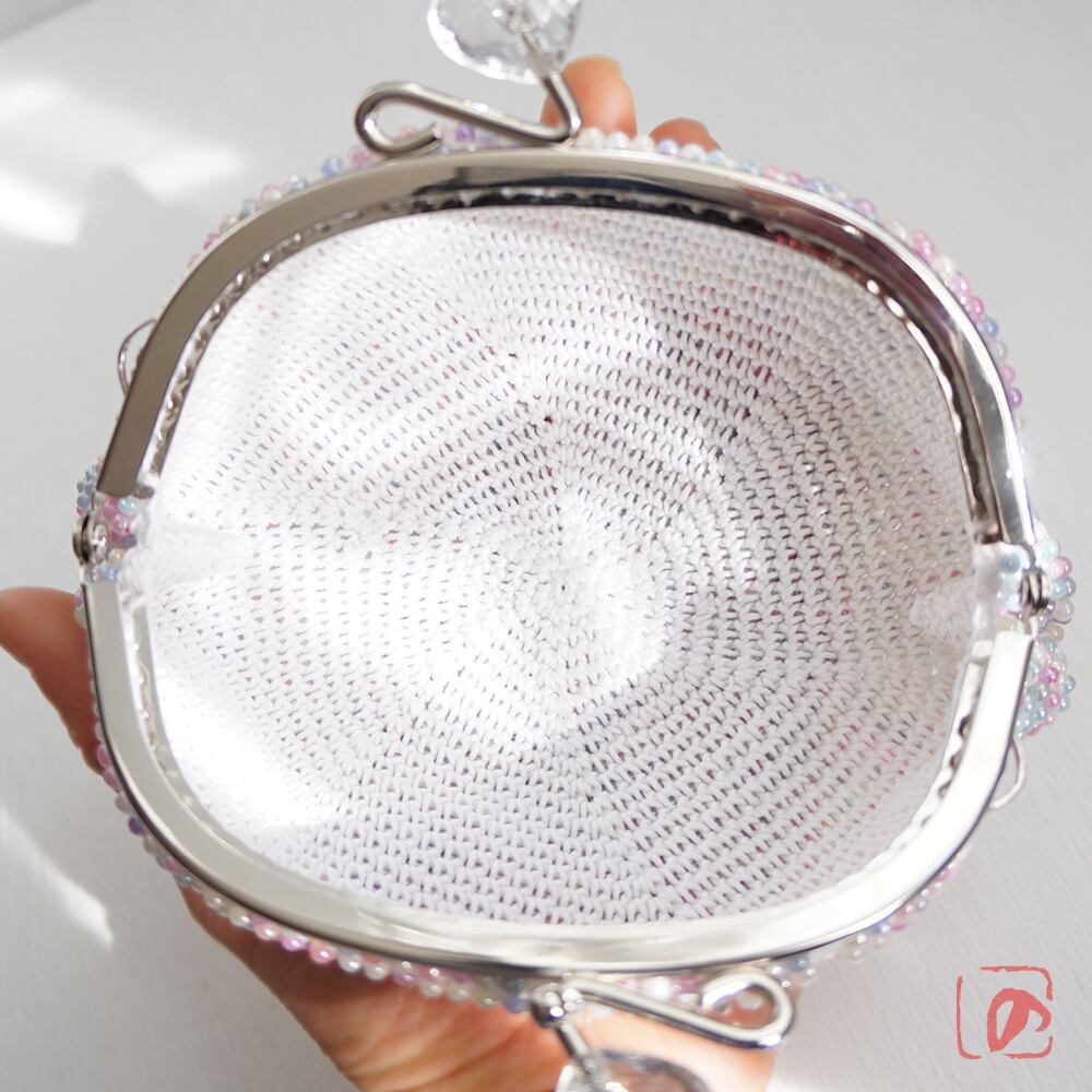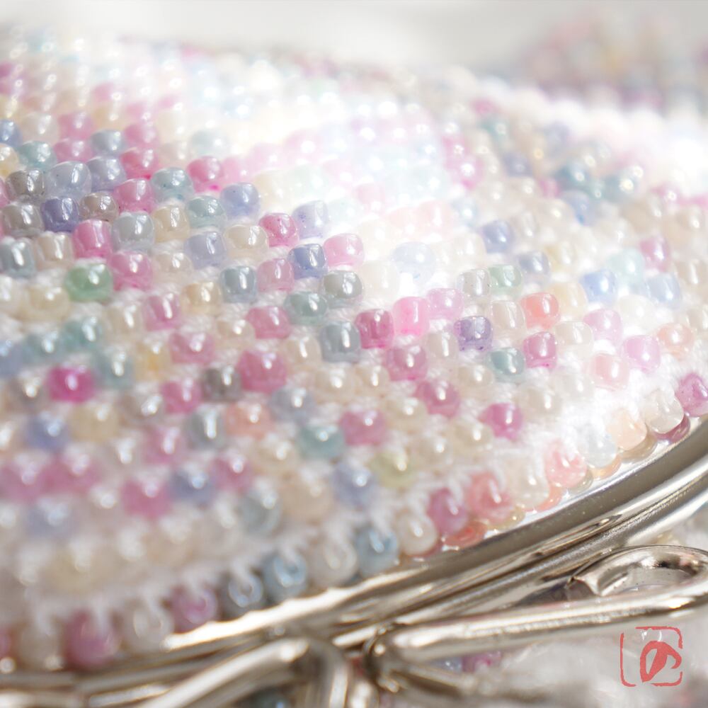 3mmのビーズをひとつぶづつ、全面に編み込みました。