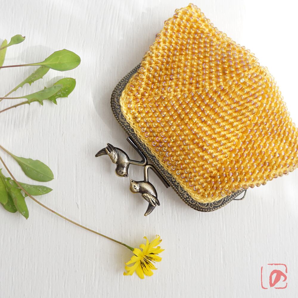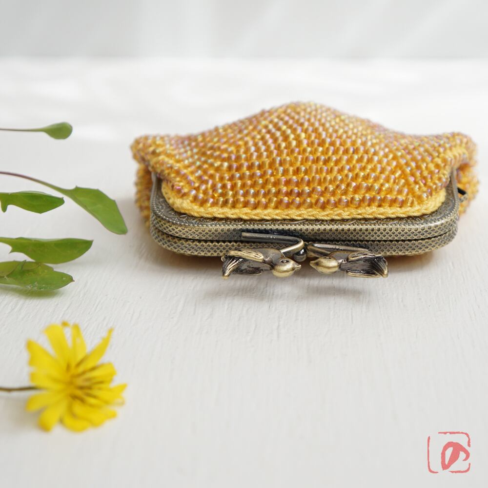 ばあば作♡総ガラスビーズのスクエアがま口(arancia・1667)