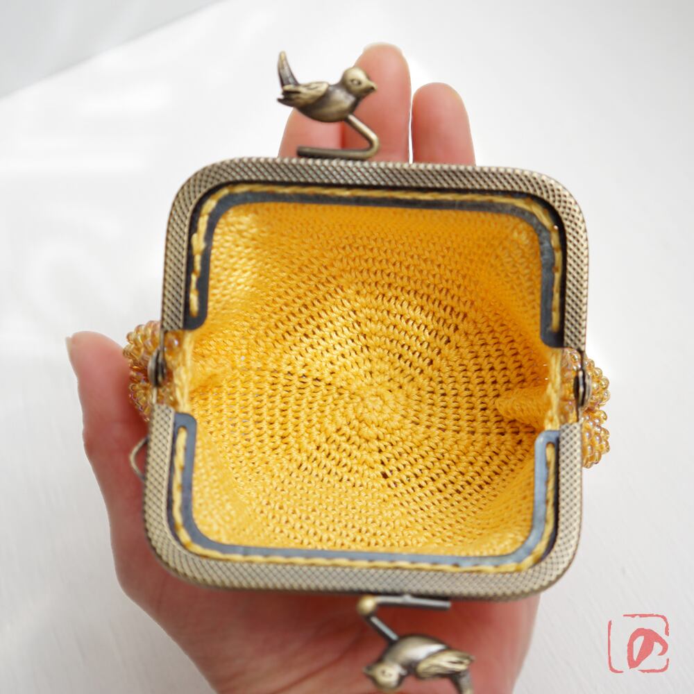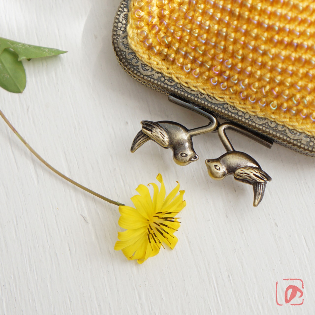 口金 : アンティークゴールド、小鳥のつまみ、8.5cm、角型、片カン