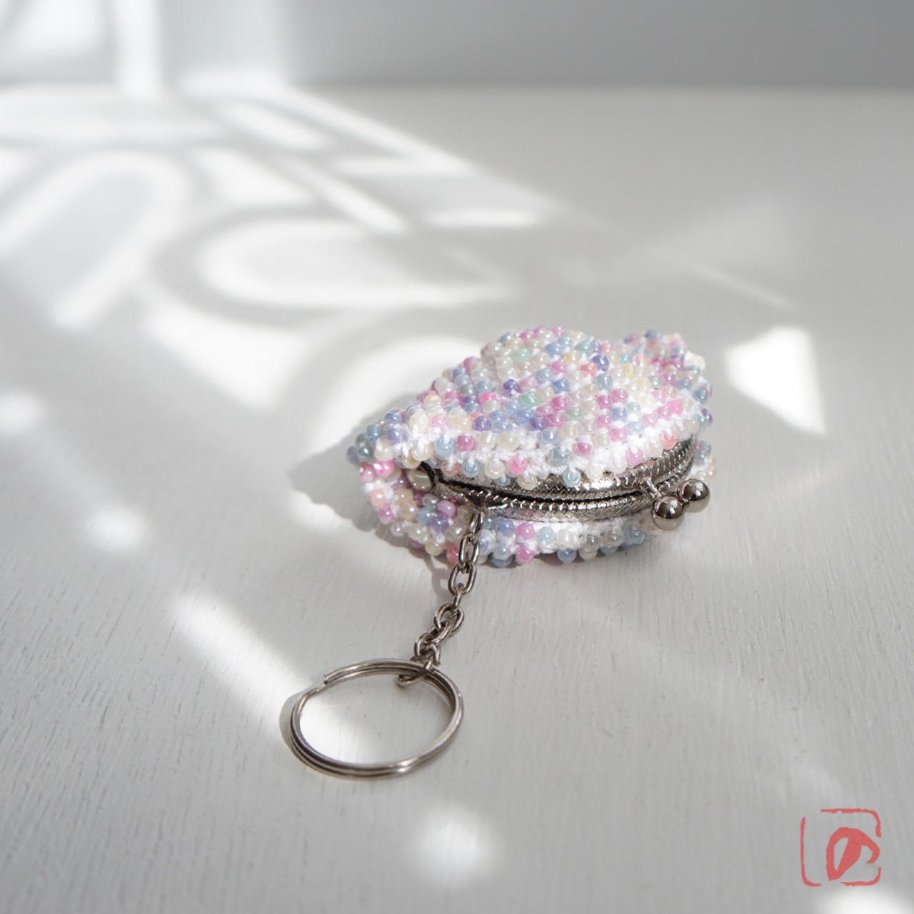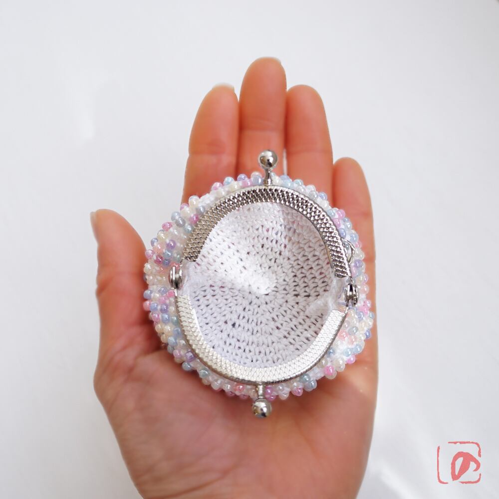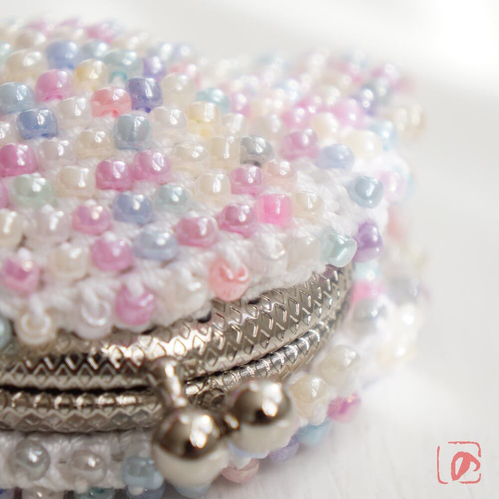 3mmのガラスビーズをひとつぶづつ編み込んだがま口です。