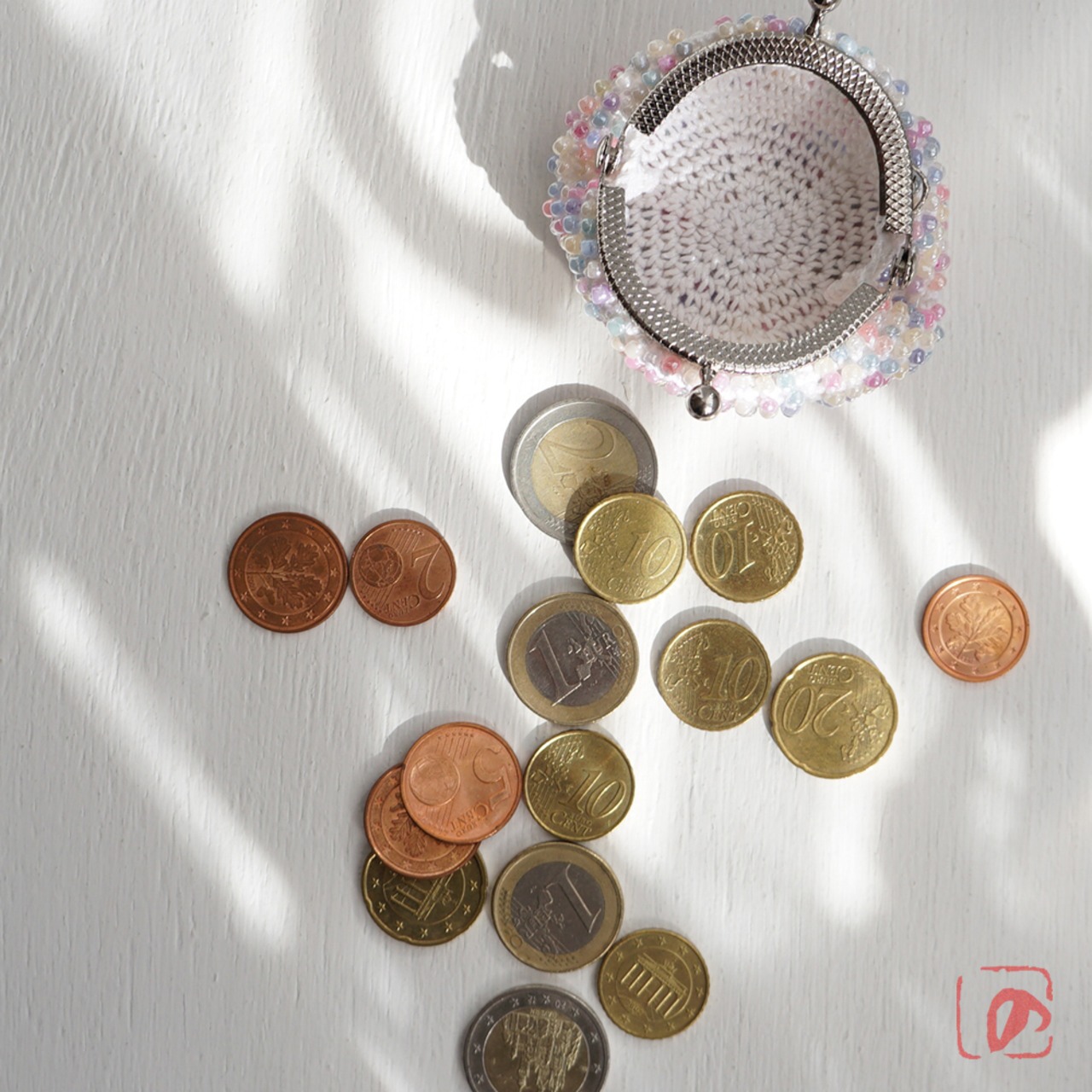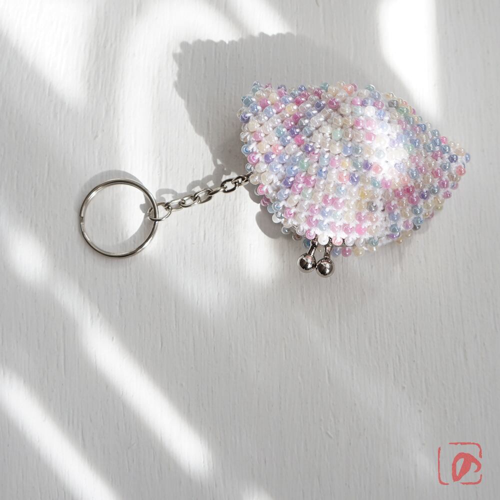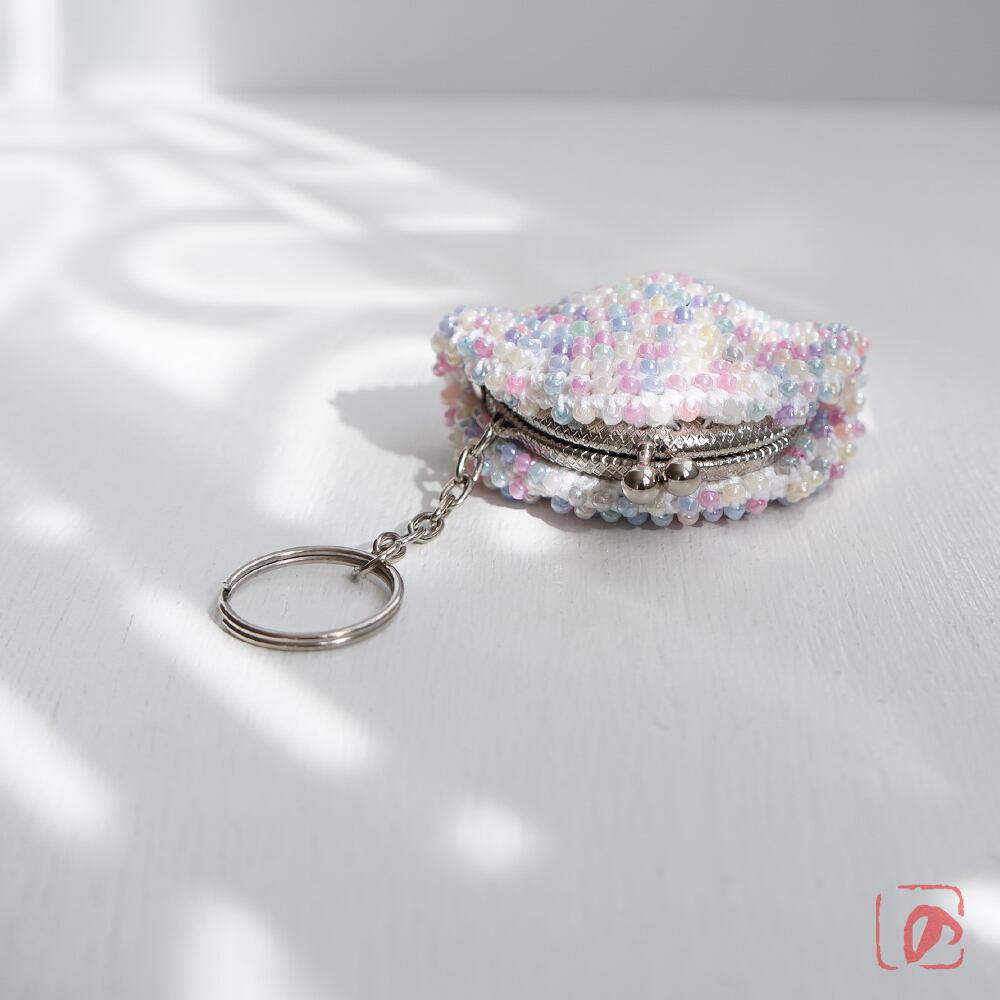 3mmのガラスビーズをひとつぶづつ編み込んだがま口です。