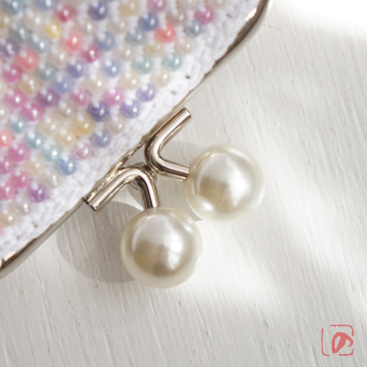 口金 : シルバー、プチパールのつまみ、8.5cm、角型、片カン