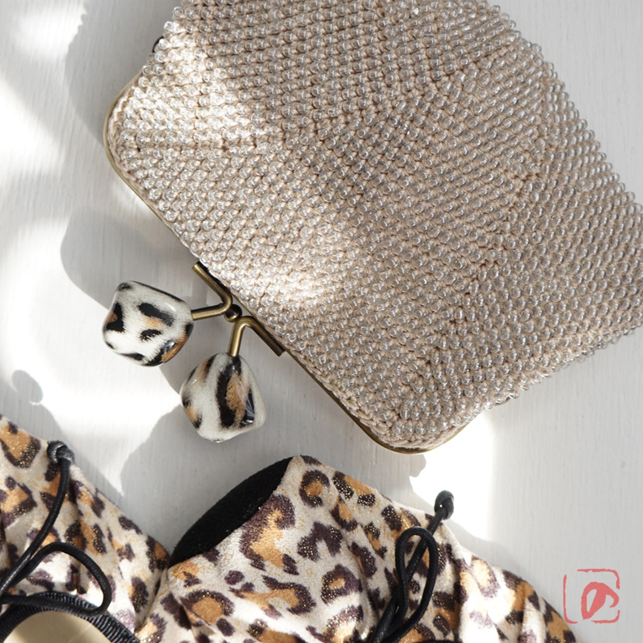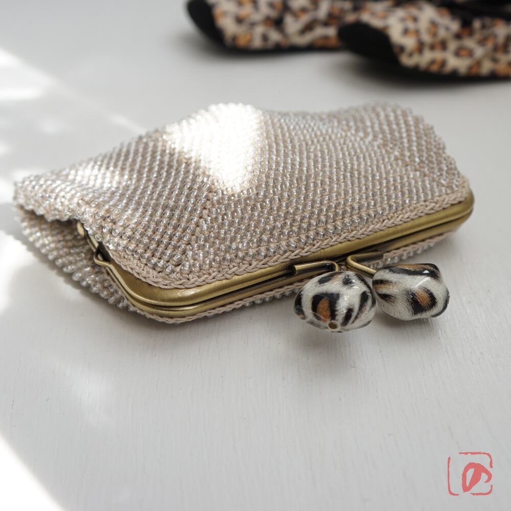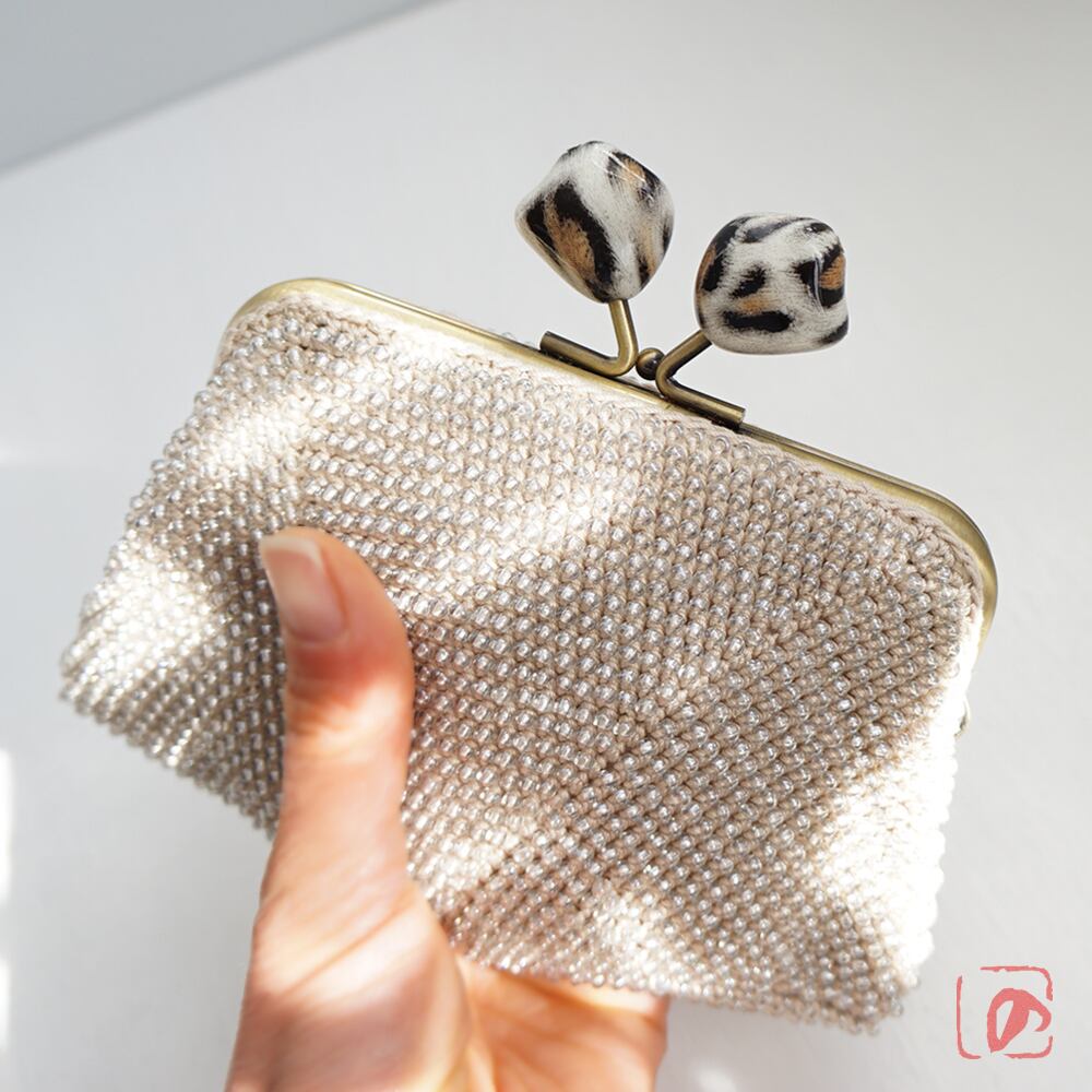 ばあば作☆☆さらに大きめ・ガラスビーズのがま口(Léopard・1644)